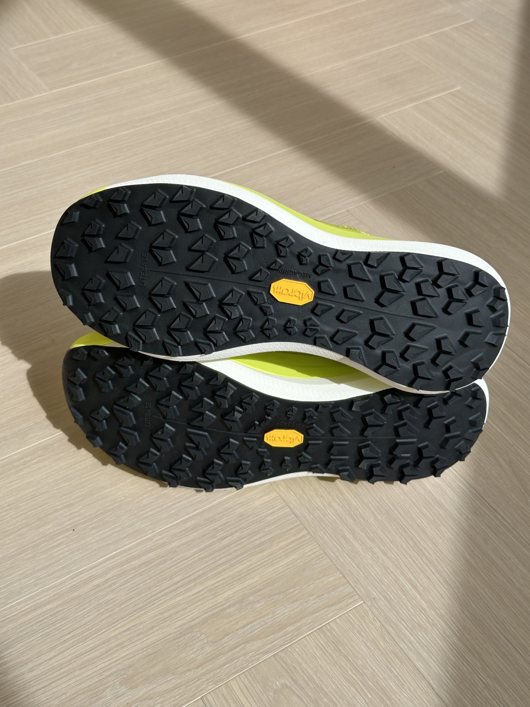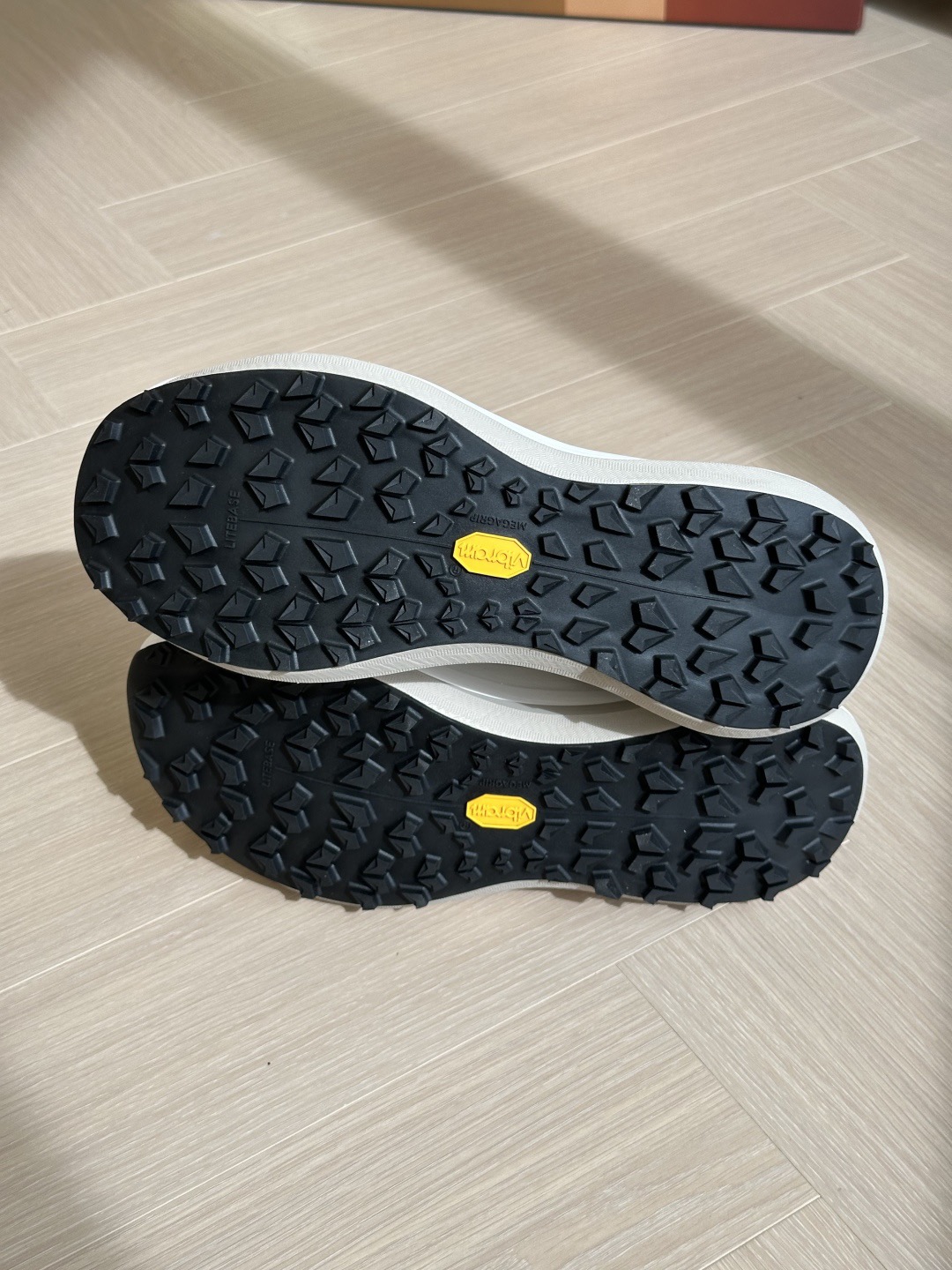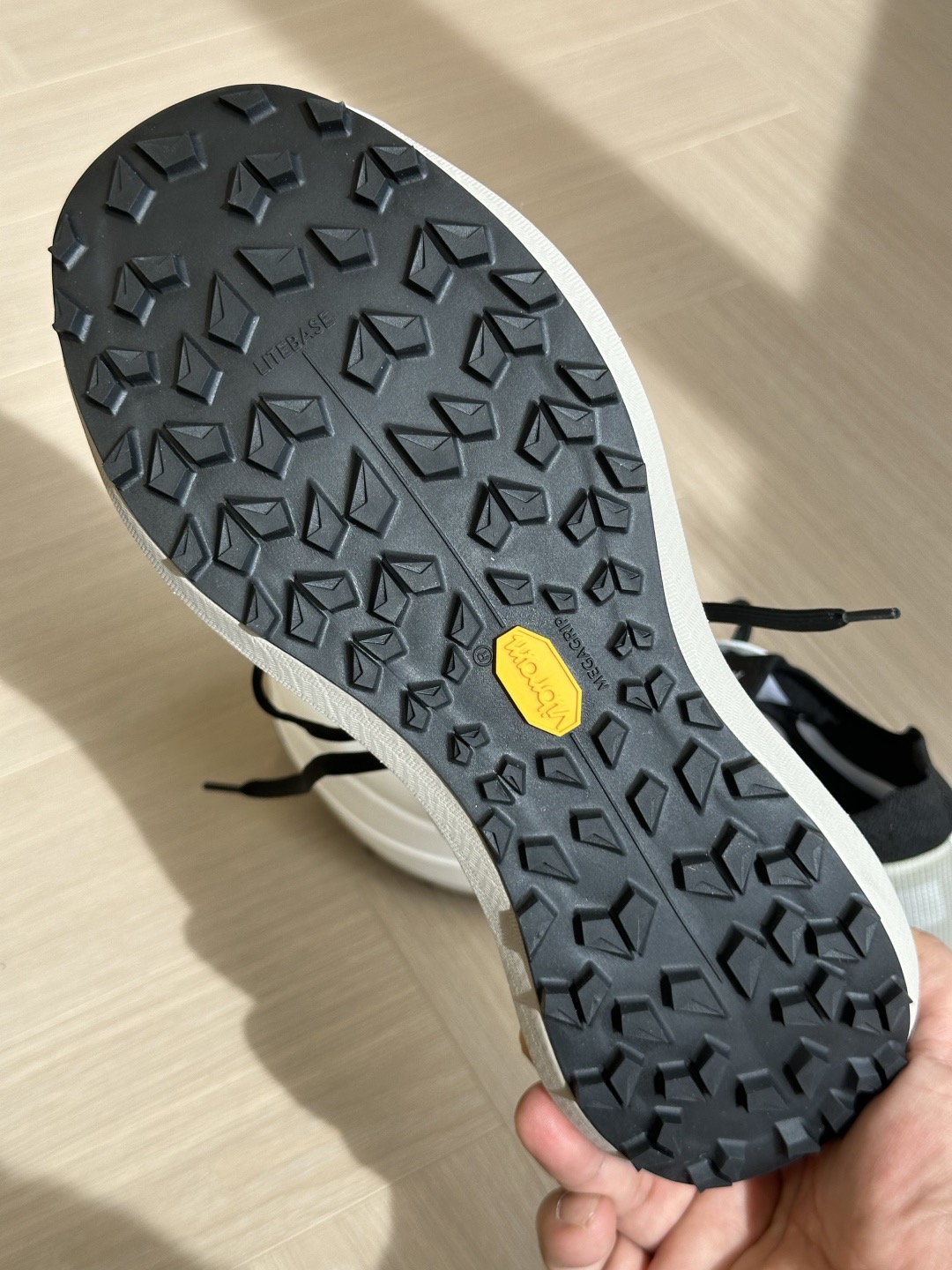 鞋底 Vibram Megegrip 橡胶底,防滑耐磨,而且鞋底的齿轮做的很nice,防滑效果很好!