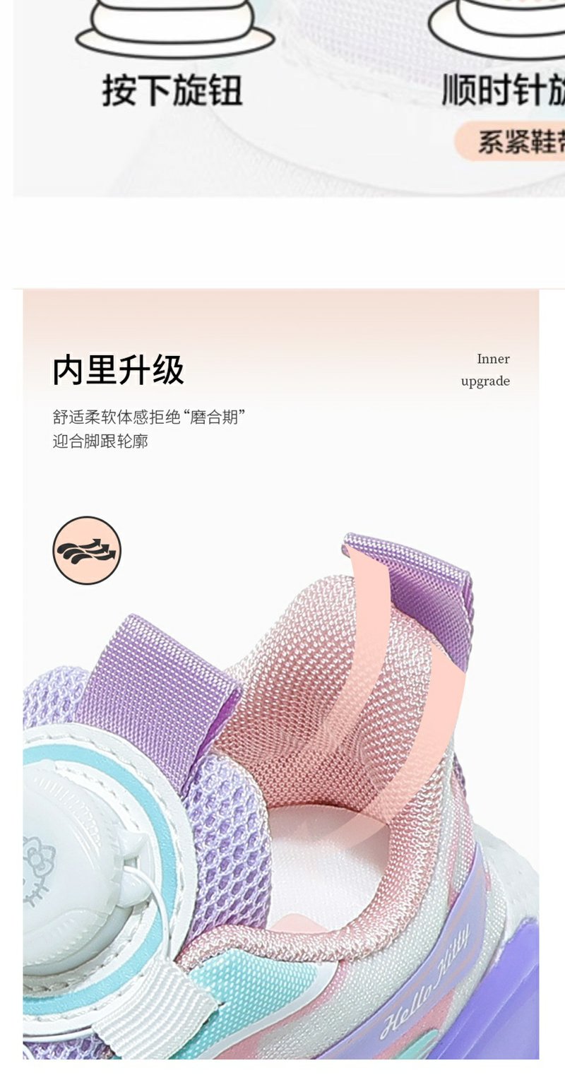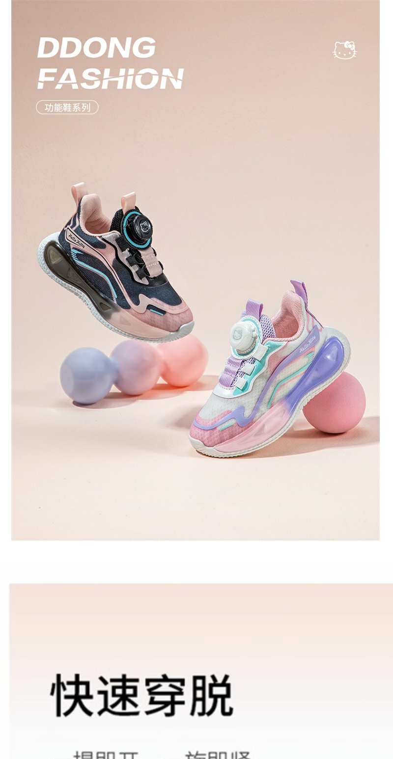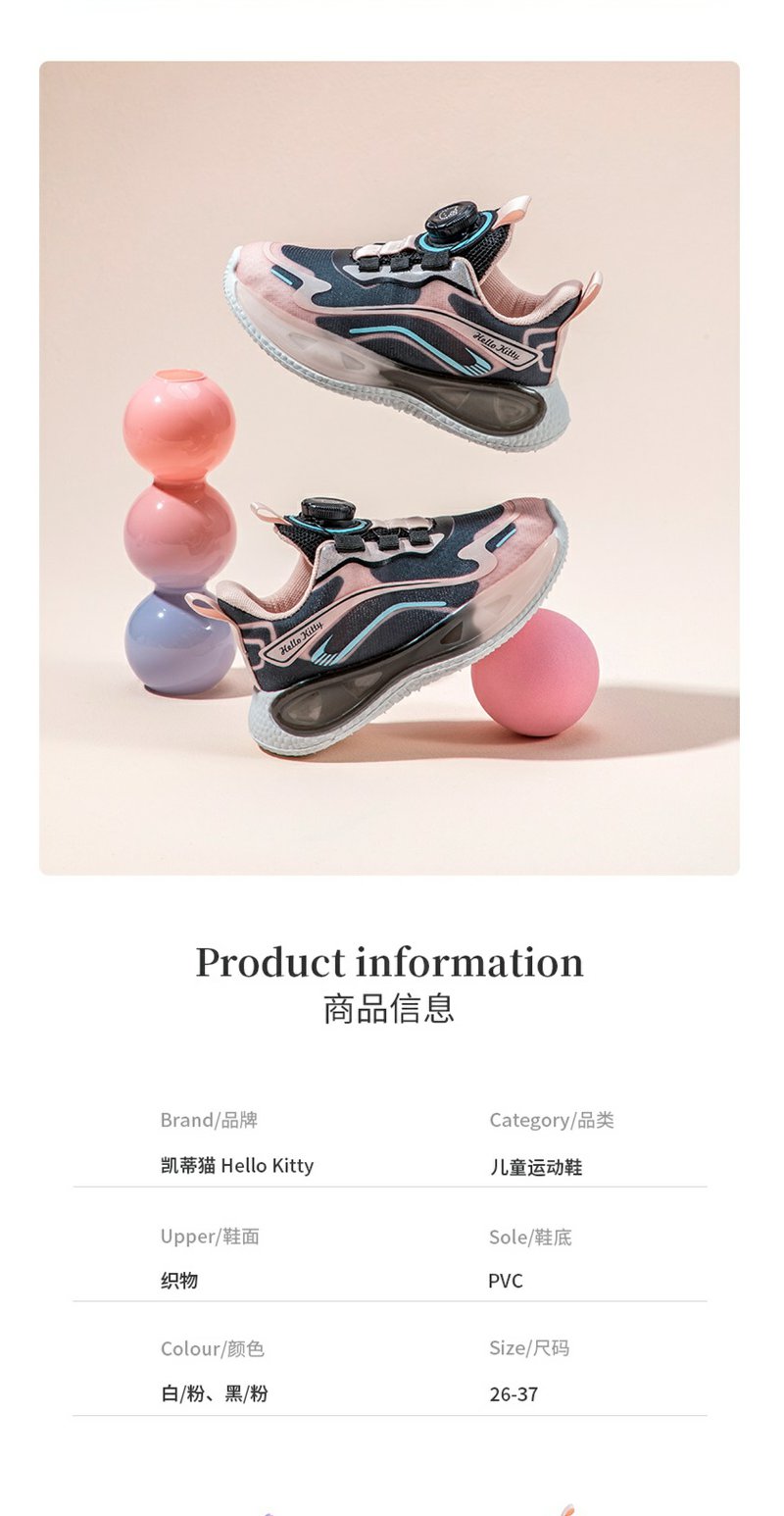 HelloKitty童鞋女童运动鞋透气网面鞋2024春季新款旋转按扣跑鞋
