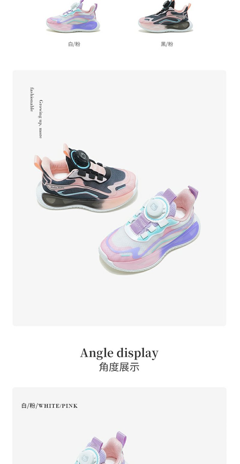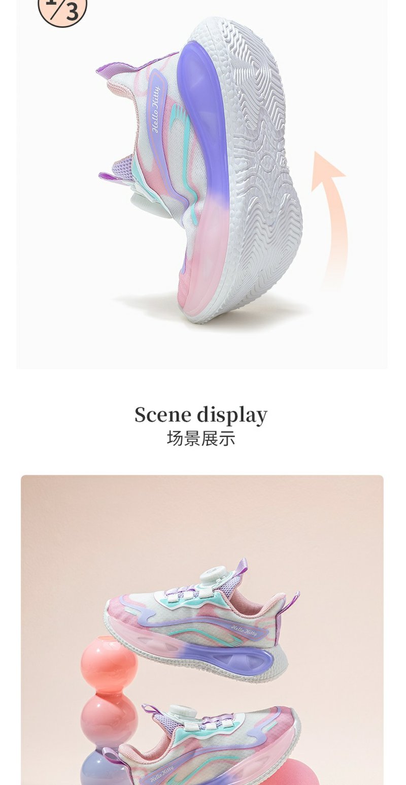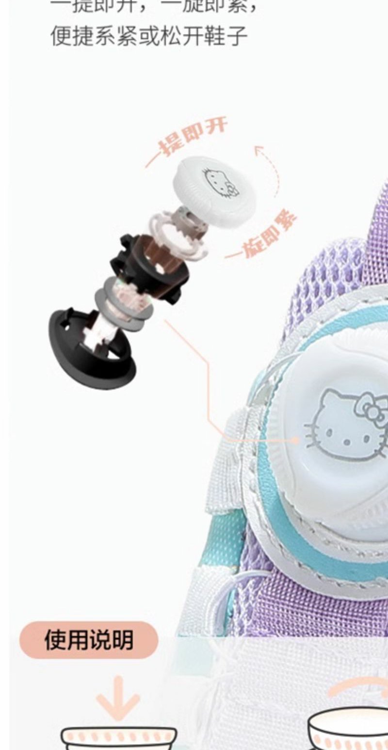 HelloKitty童鞋女童运动鞋透气网面鞋2024春季新款旋转按扣跑鞋