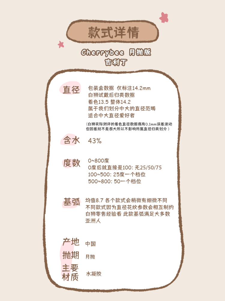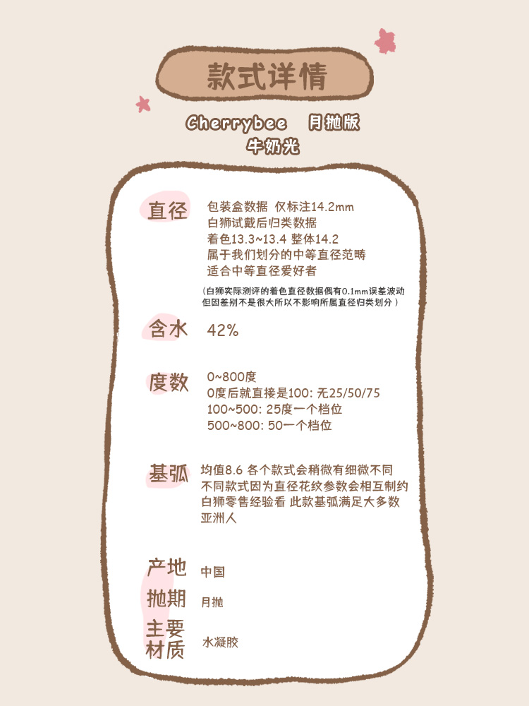 Cherrybee旗下 | 吉利丁&牛奶光 14.2mm白狮参考着色中大直径 |月抛