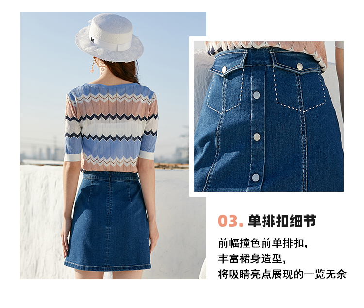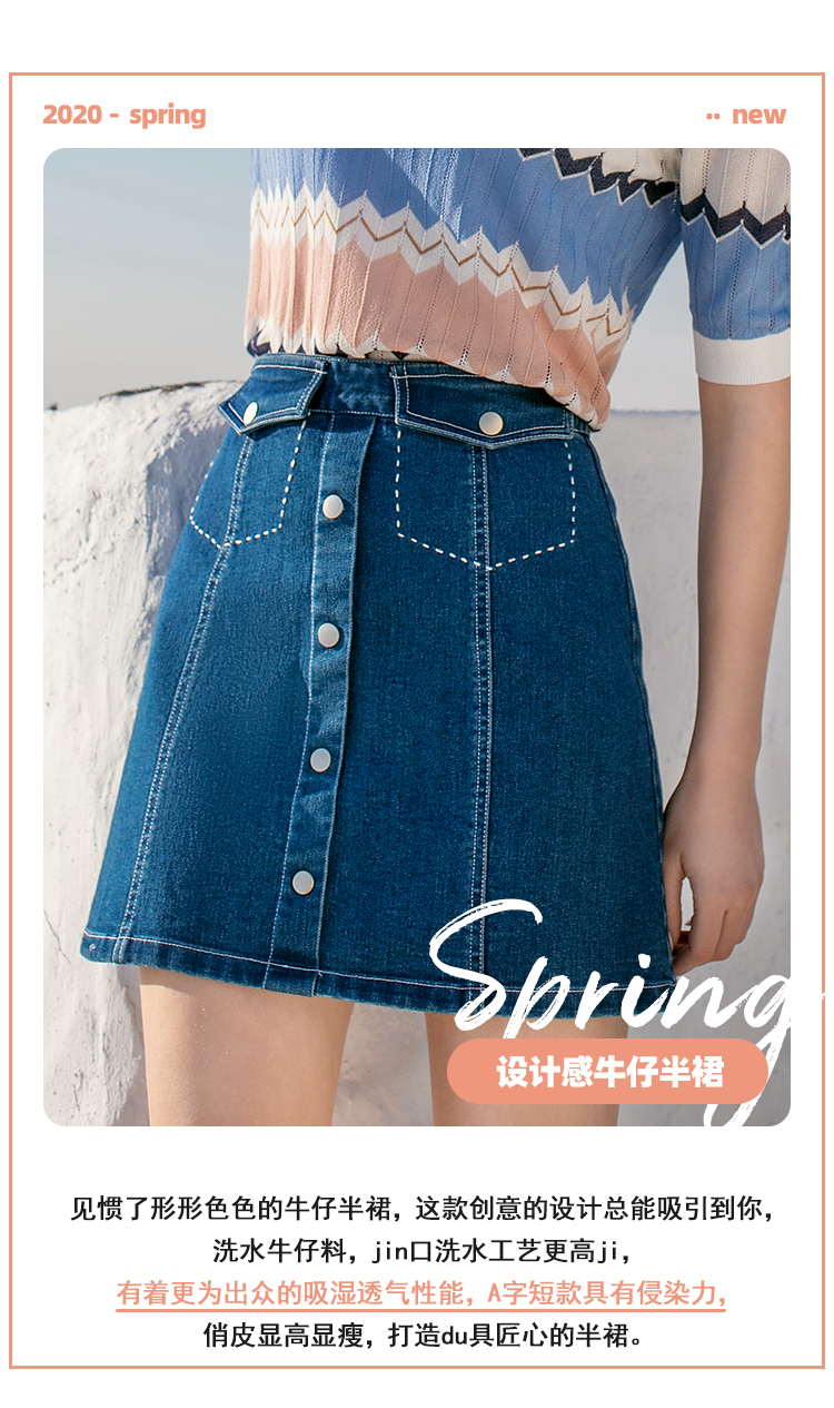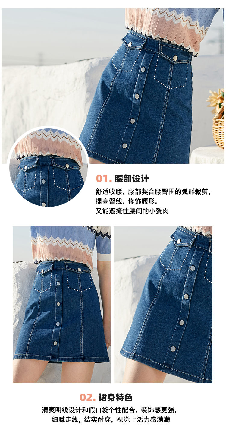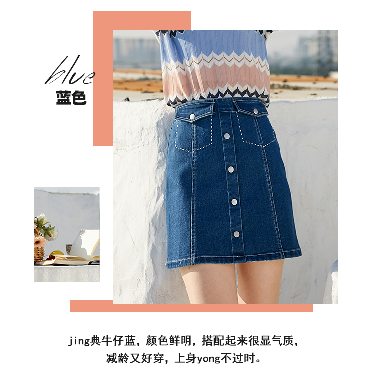欧芮儿夏新款高腰显瘦牛仔半身裙女百搭短裙洋气口袋包臀裙