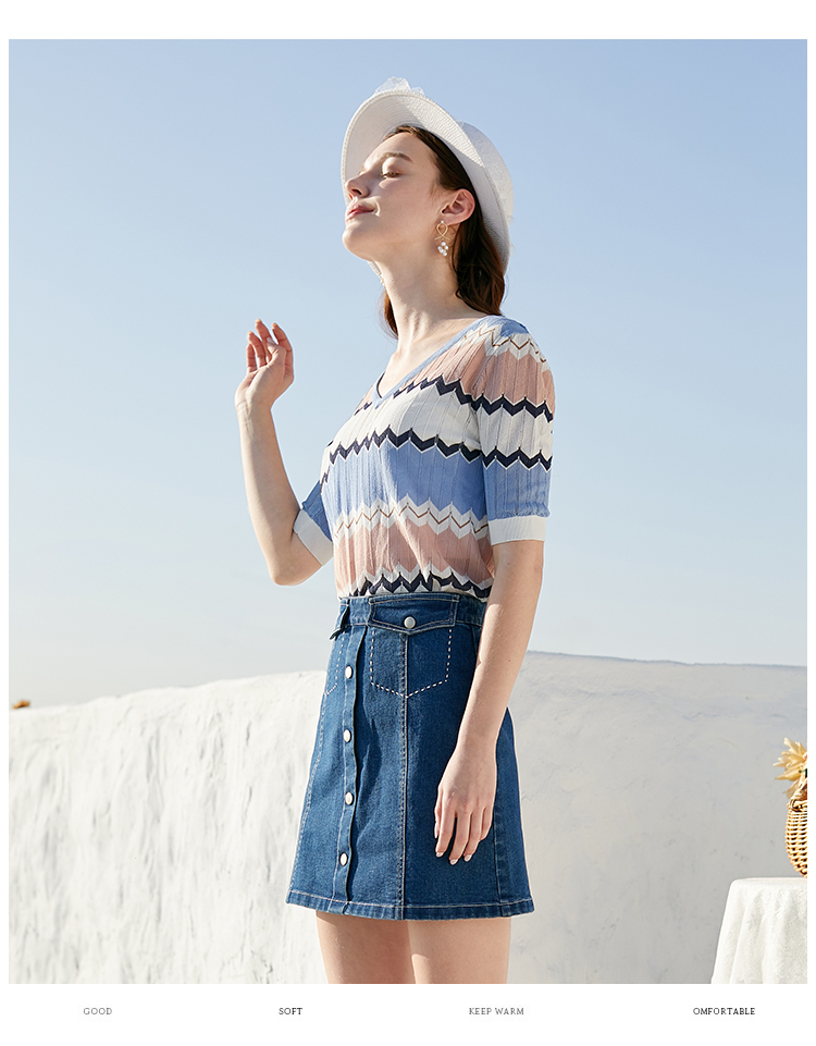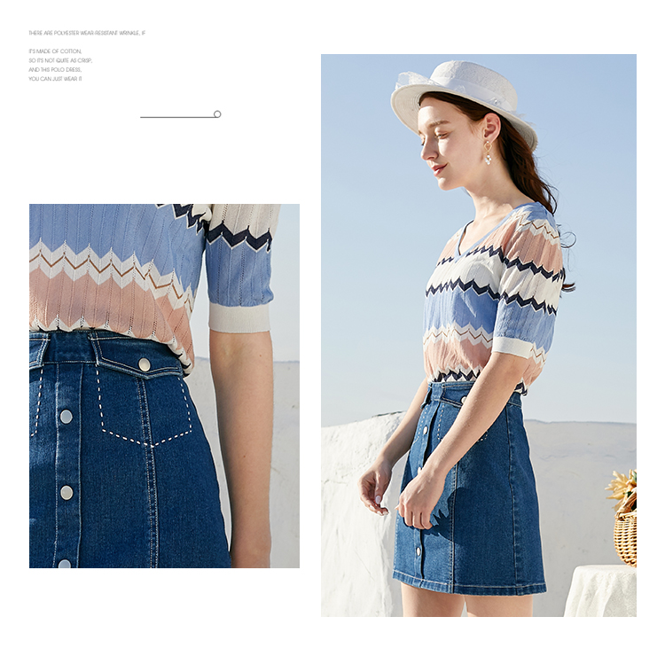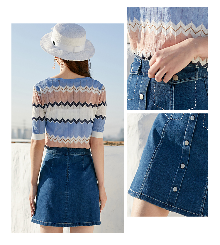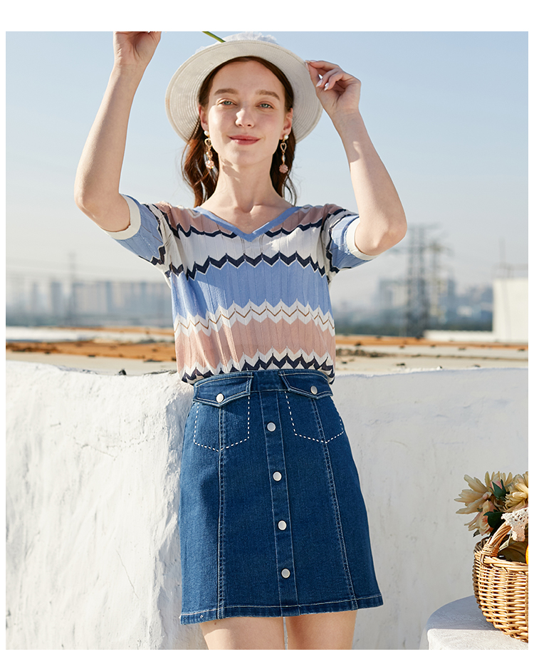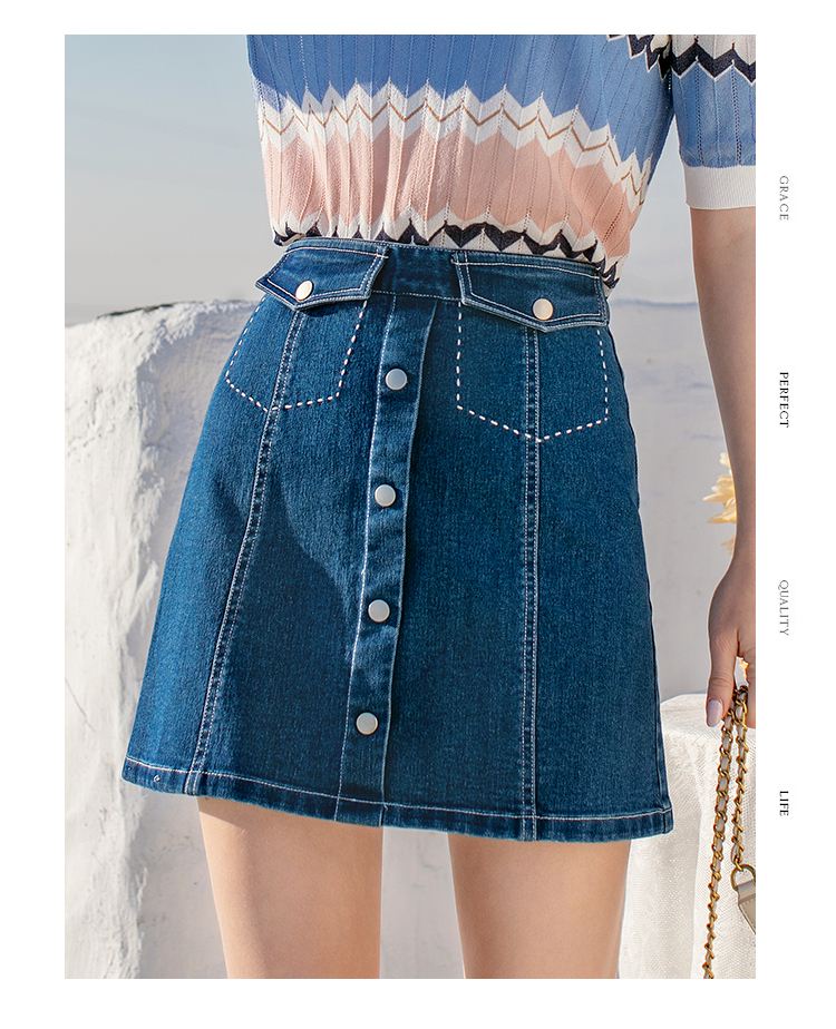 欧芮儿夏新款高腰显瘦牛仔半身裙女百搭短裙洋气口袋包臀裙