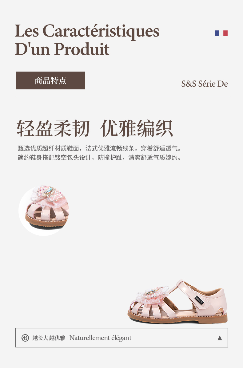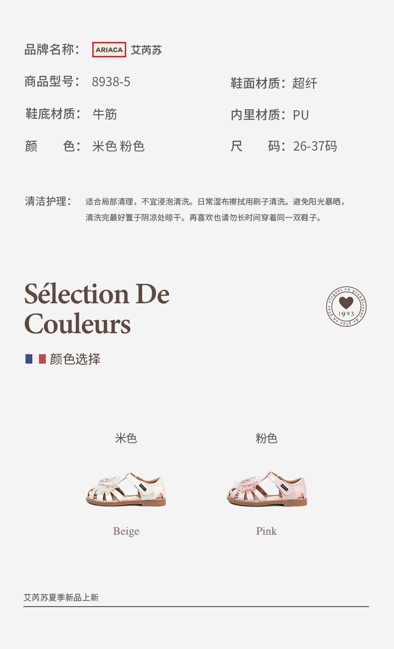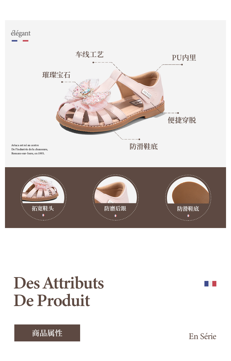 ARIACA艾芮苏女童公主鞋2025夏季新款防滑包头小女孩软底儿童凉鞋8938-5