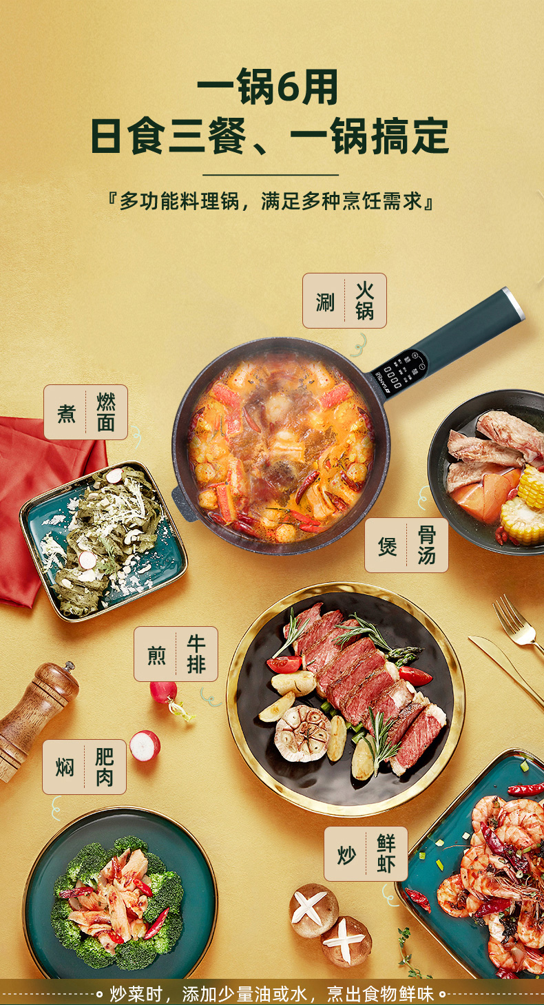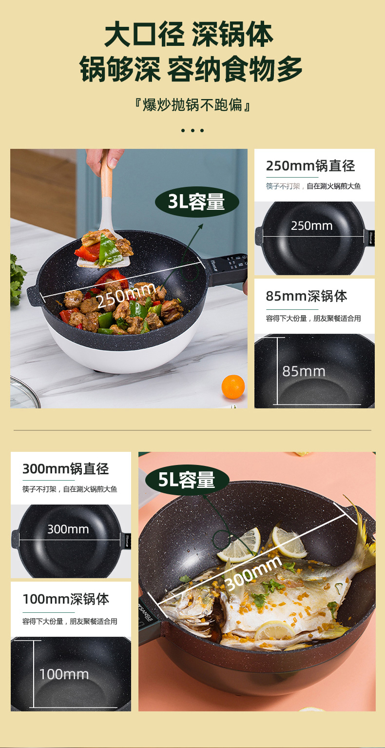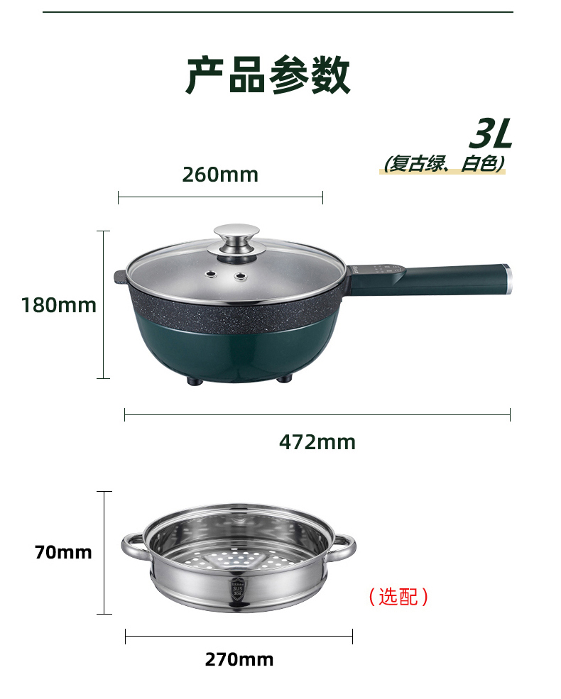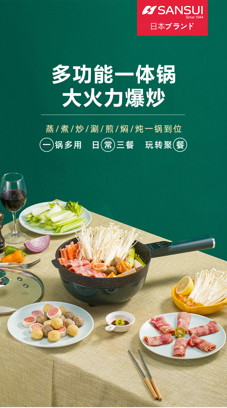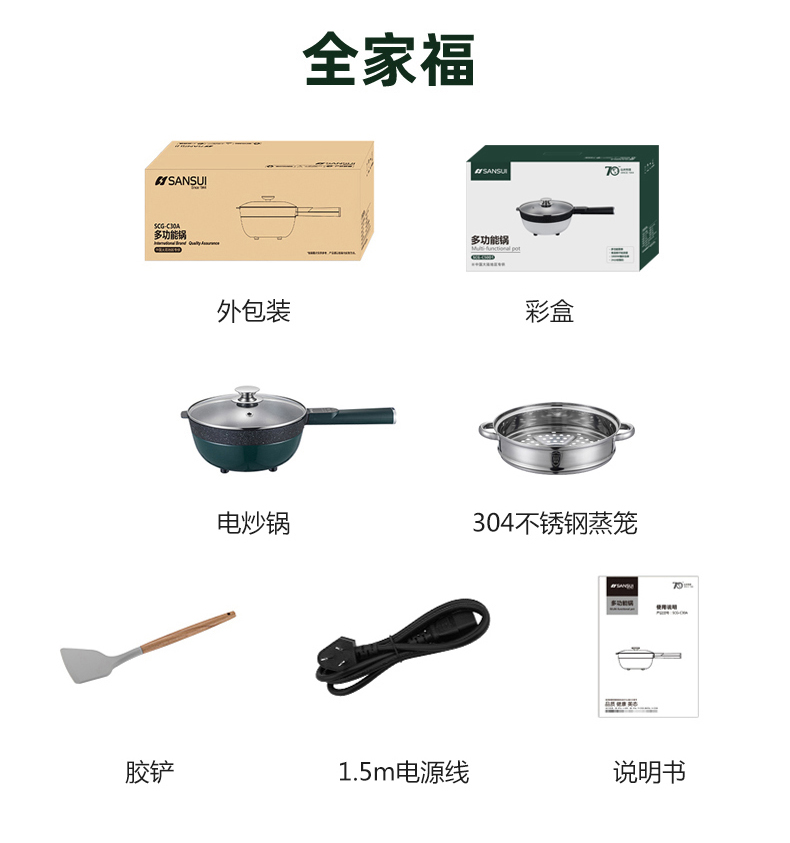 山水(SANSUI)5L多功能电炒锅SCG-C50D1(配蒸笼)