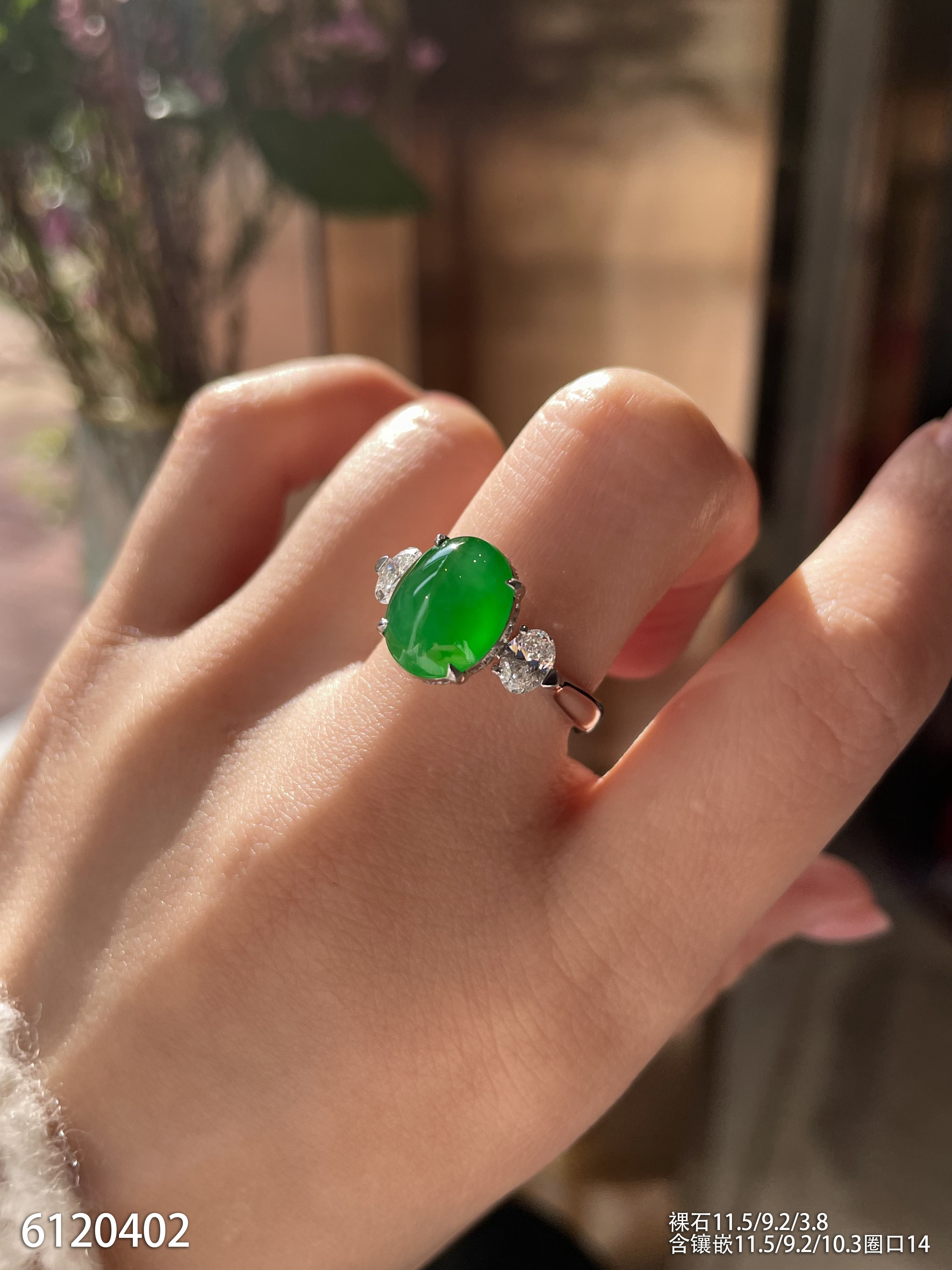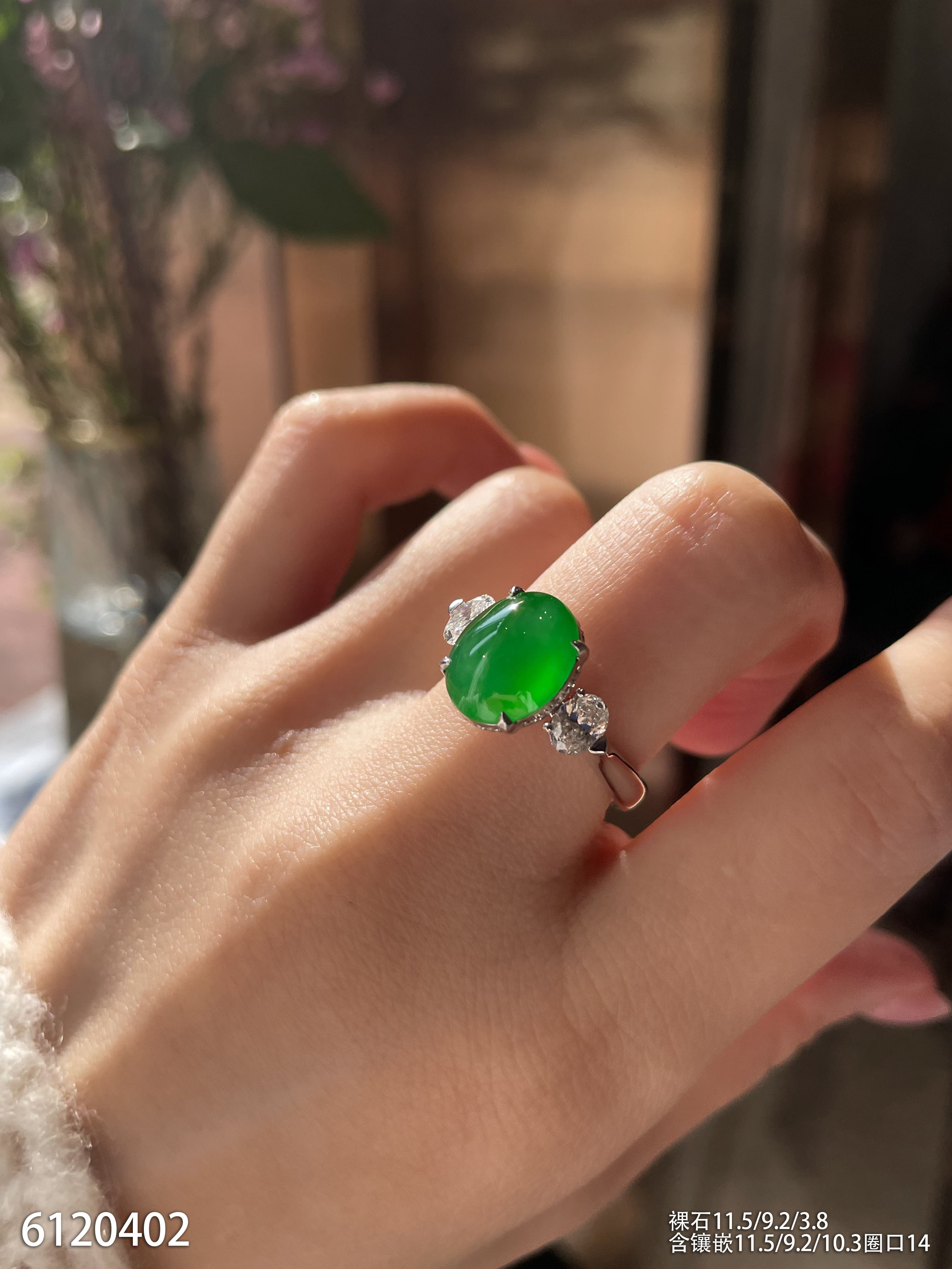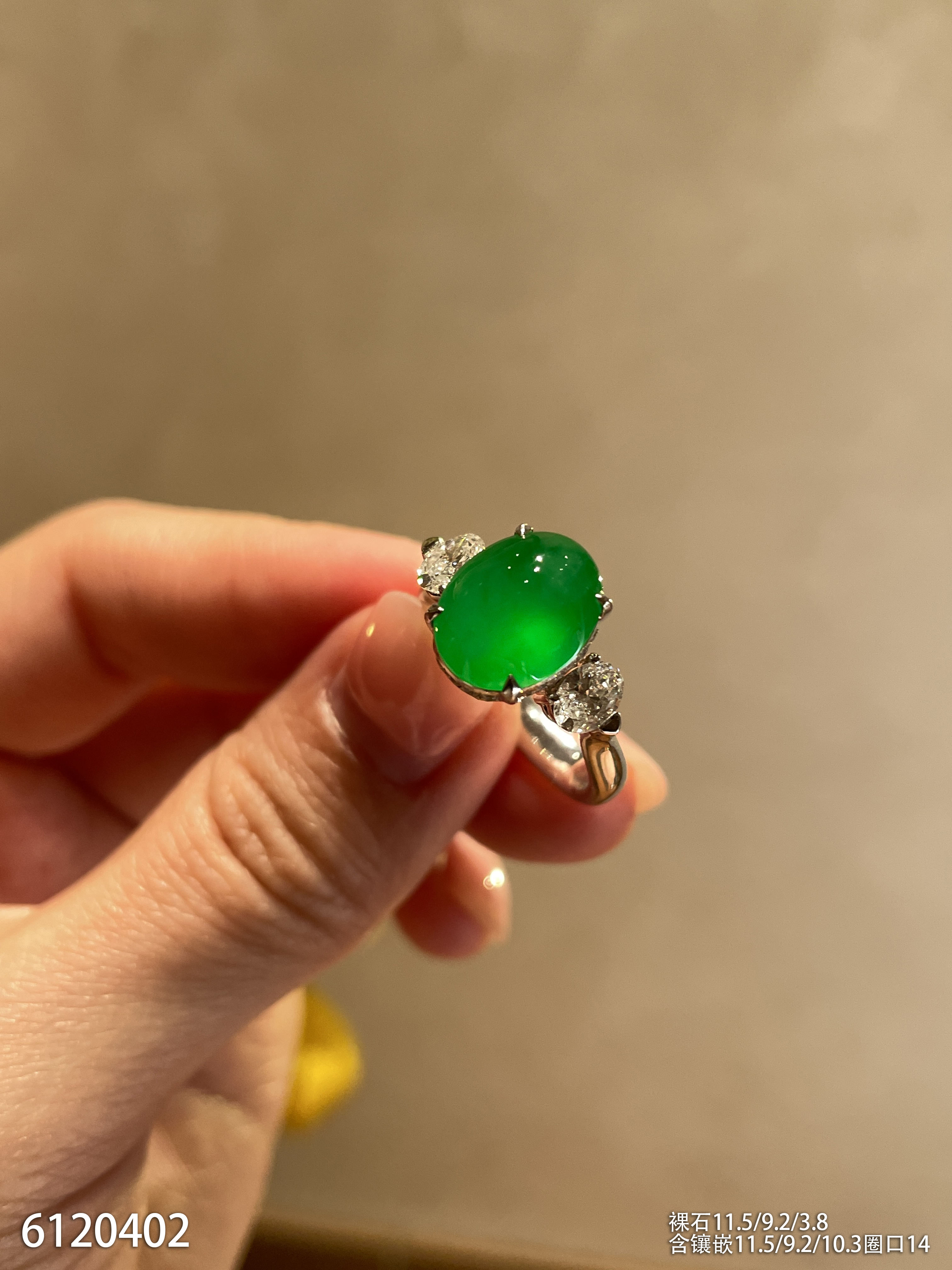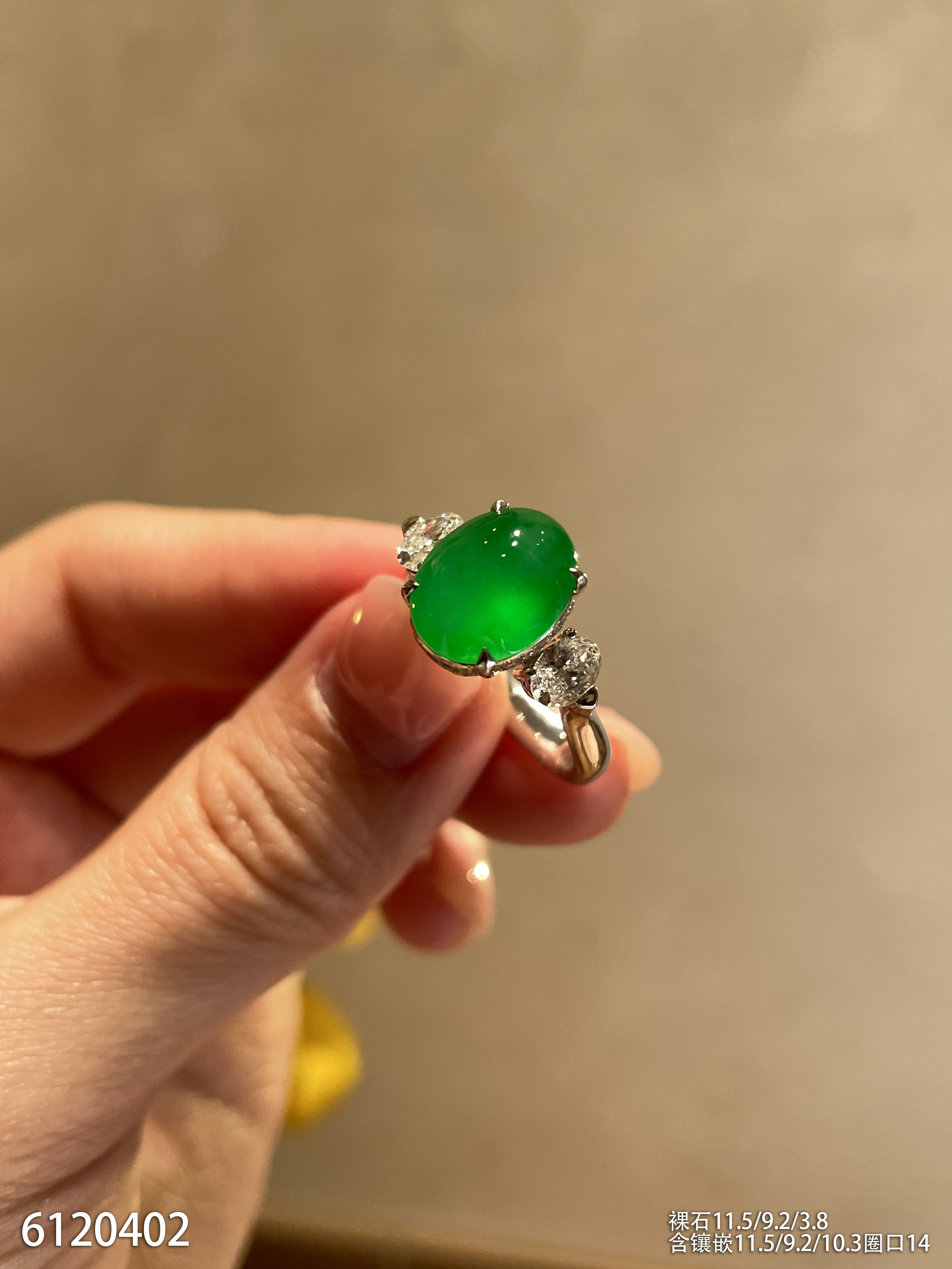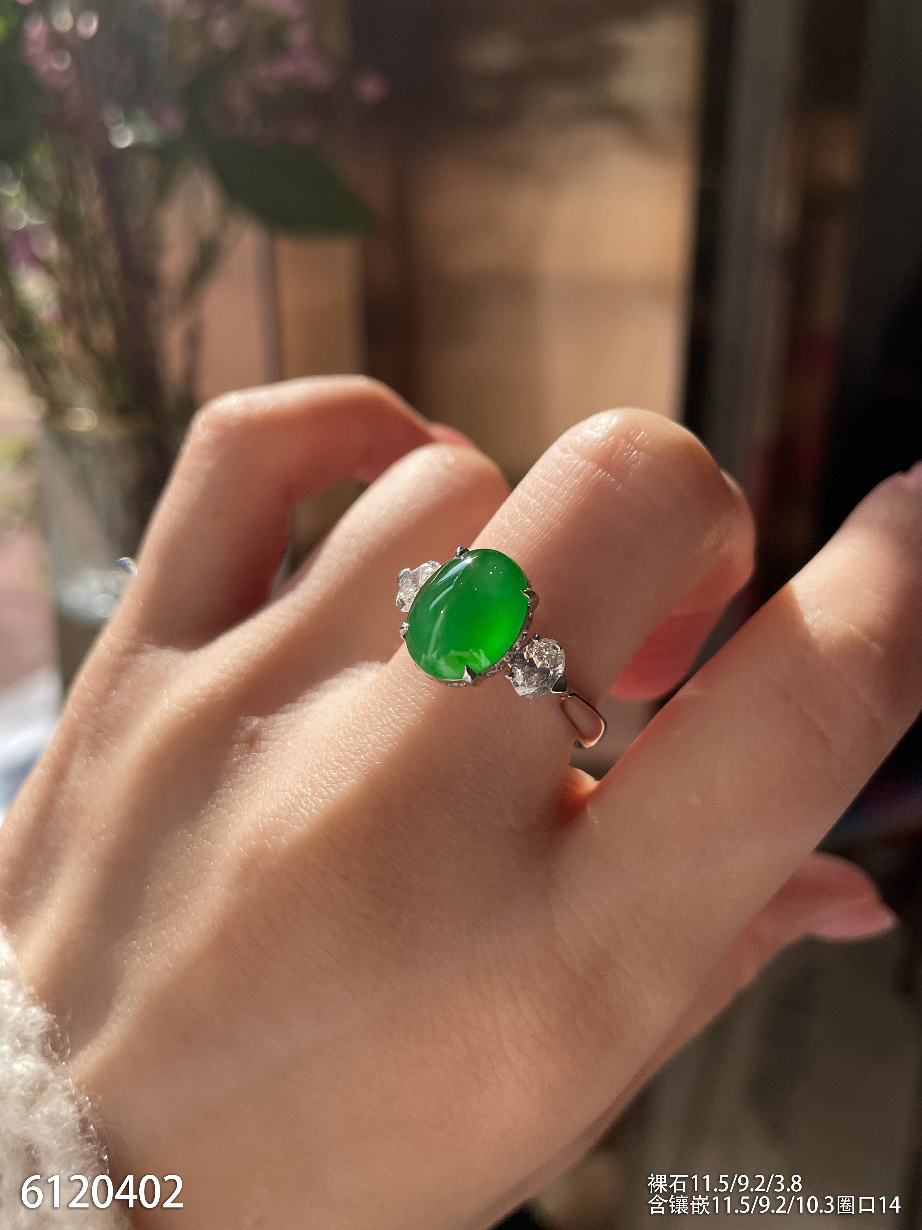 132-2123701,老坑高冰艳绿蛋面戒指,6599