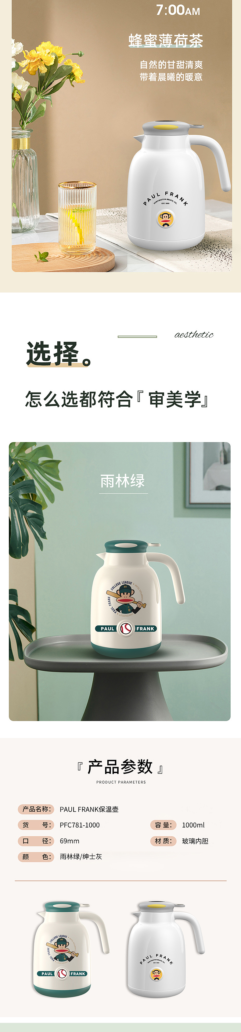大嘴猴保温壶PFC781-1000 绿色