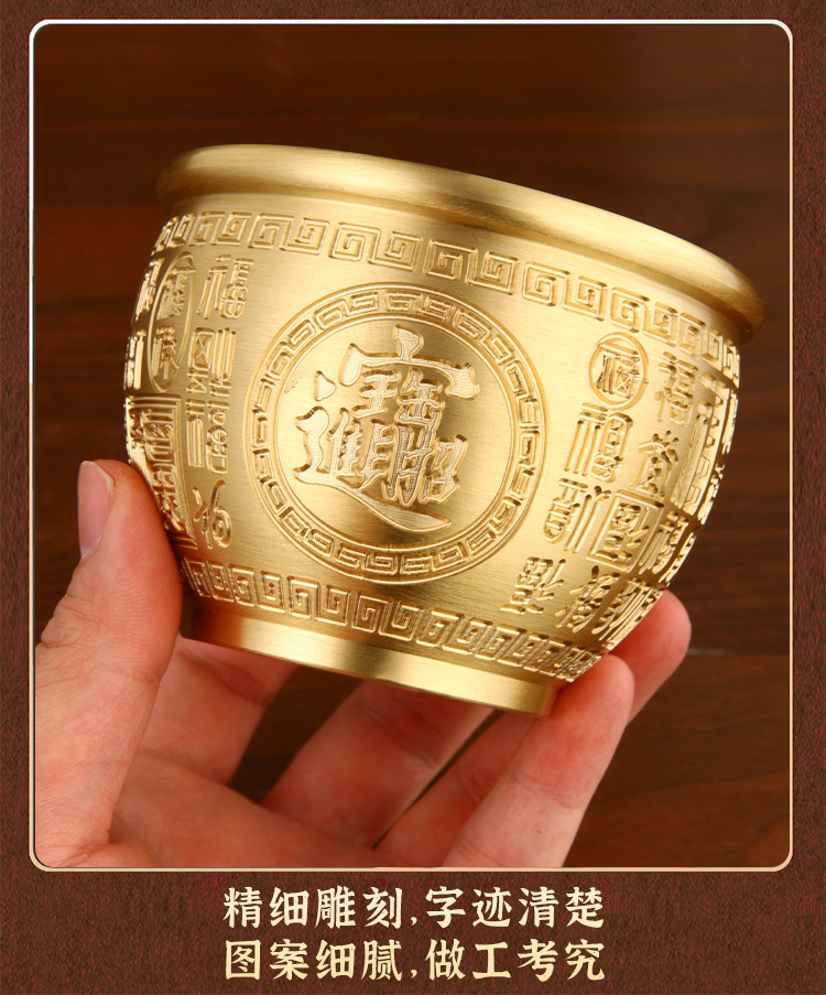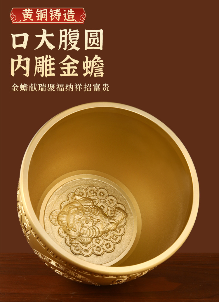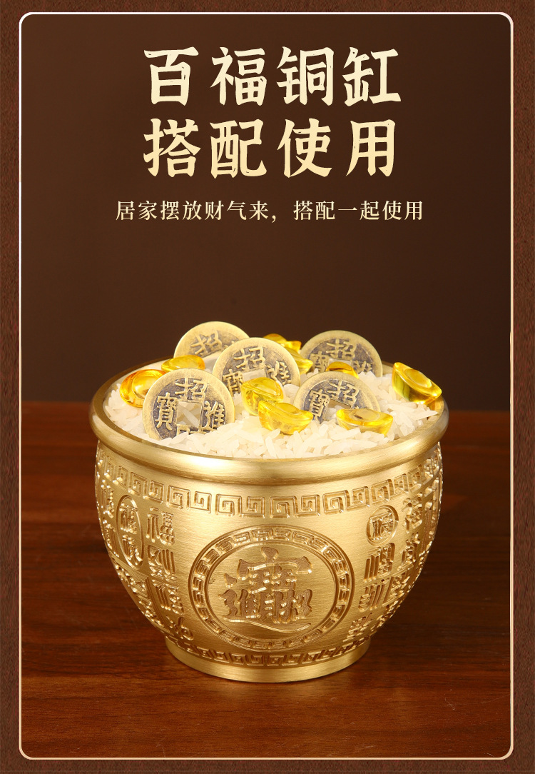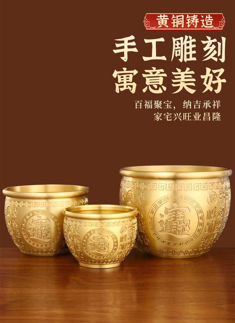 「黄铜百福缸!匠心工艺」黄铜米缸百福铜缸招聚宝盆摆件财存钱罐家居客厅店铺装饰精雕摆件居家饰品
