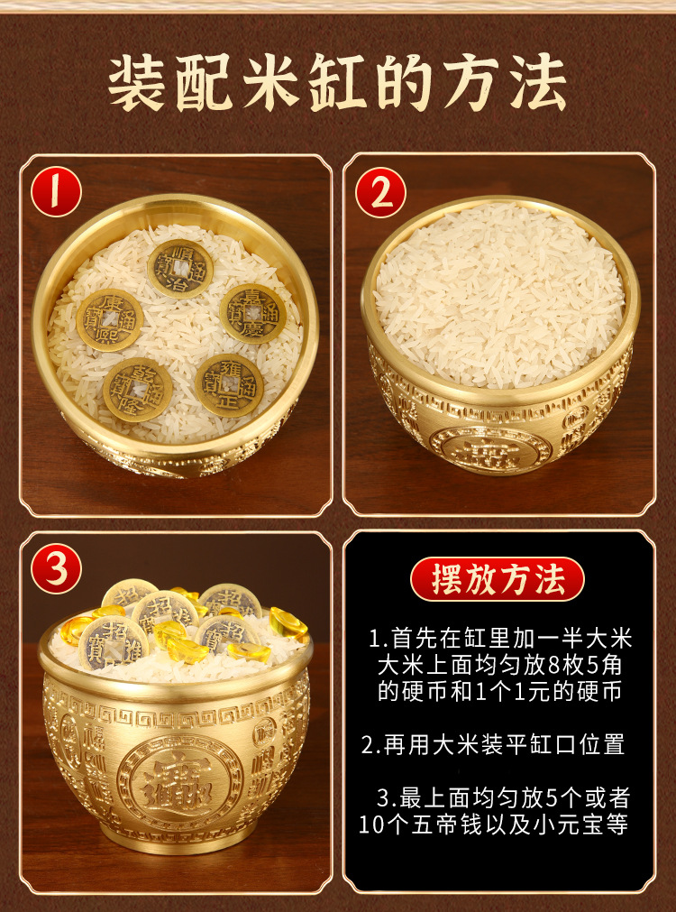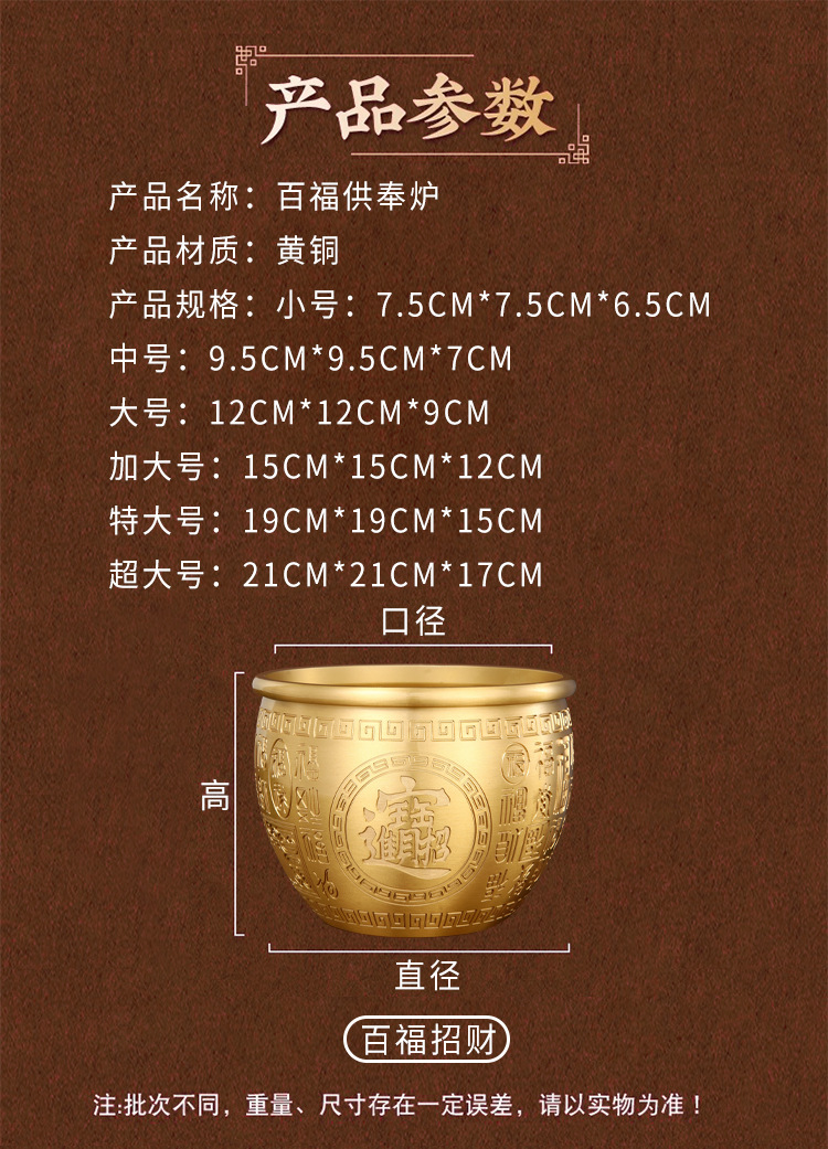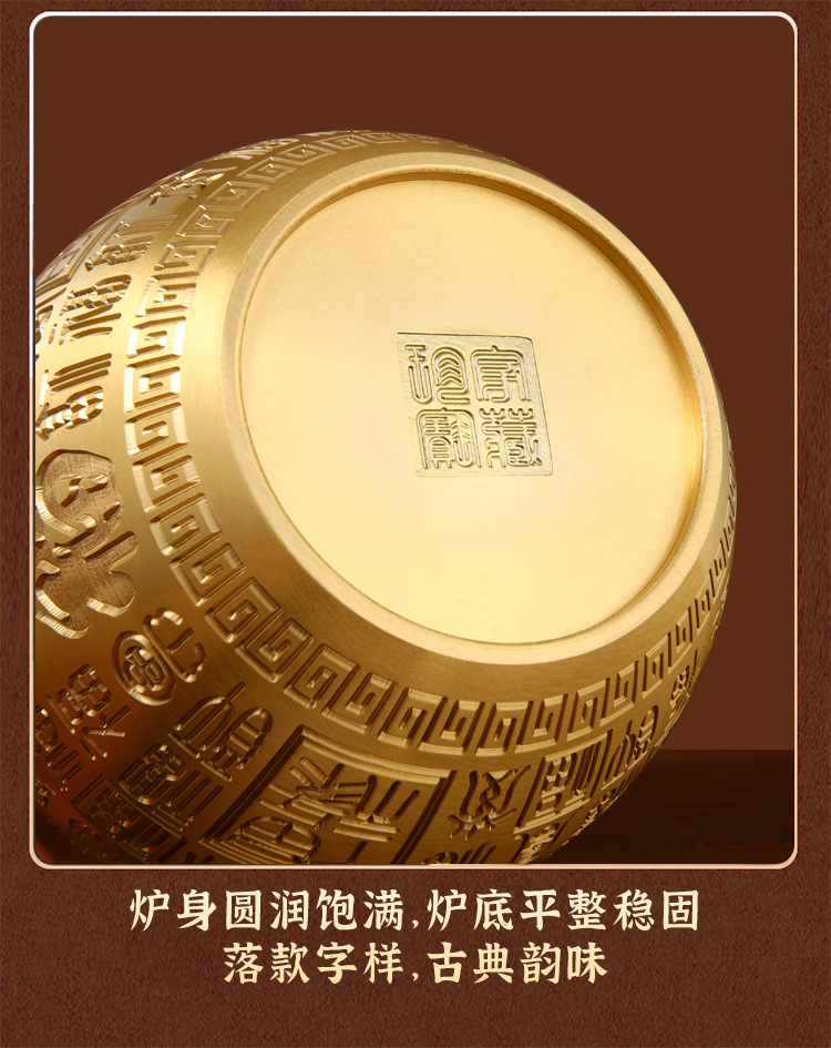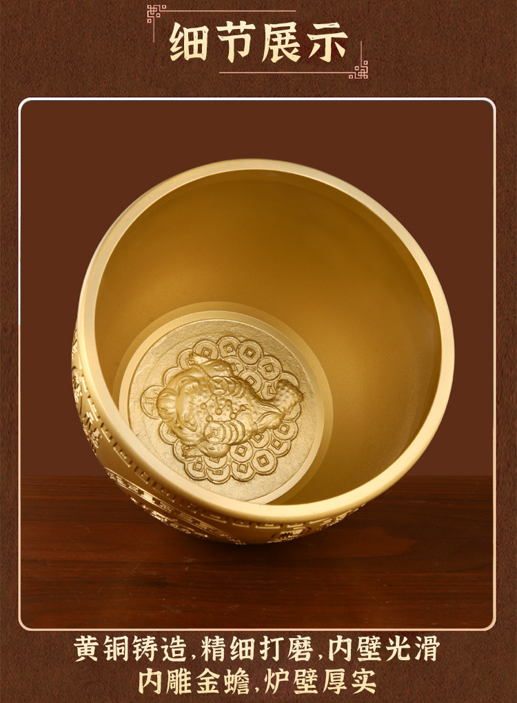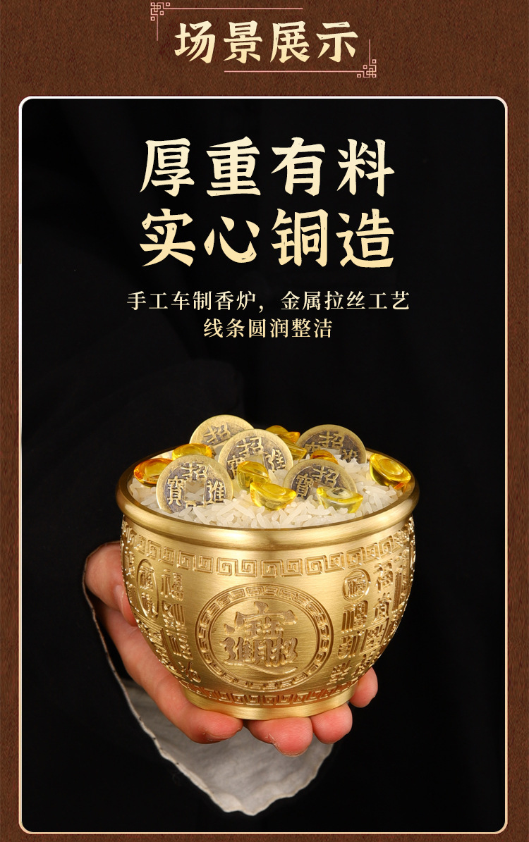 「黄铜百福缸!匠心工艺」黄铜米缸百福铜缸招聚宝盆摆件财存钱罐家居客厅店铺装饰精雕摆件居家饰品