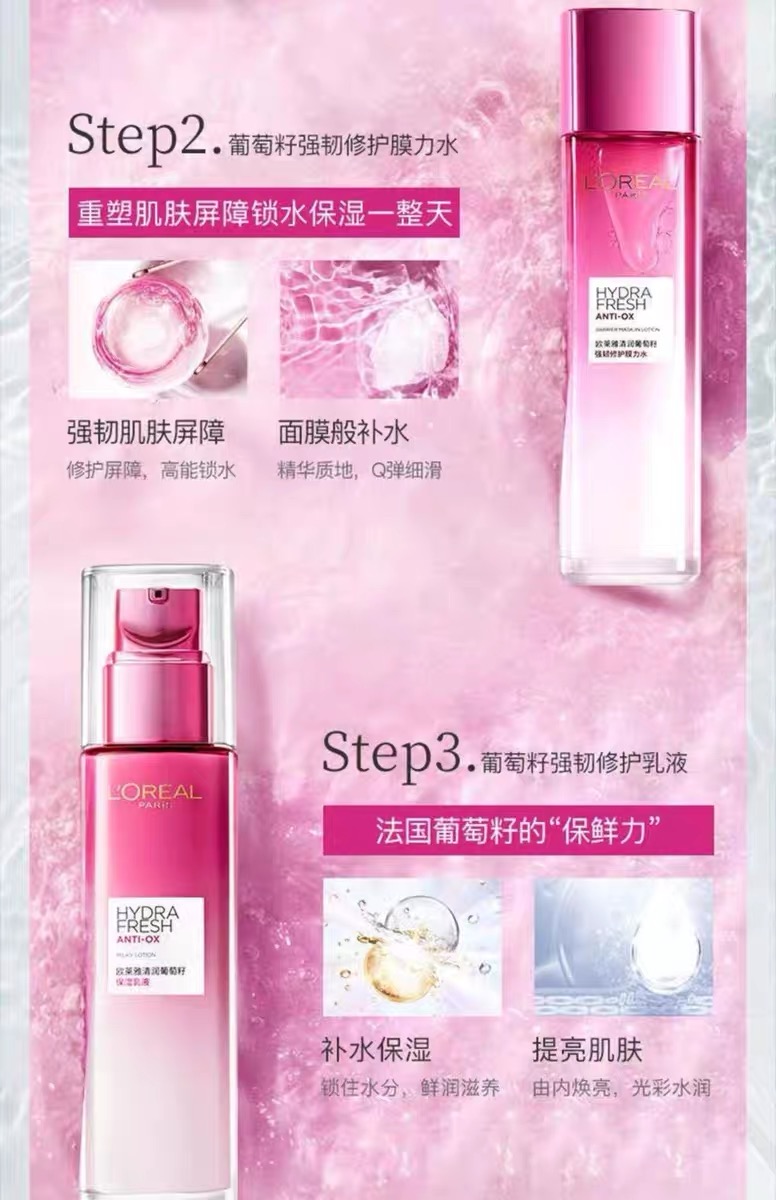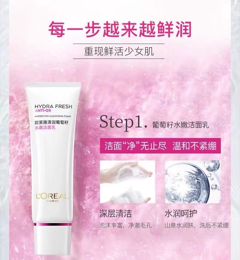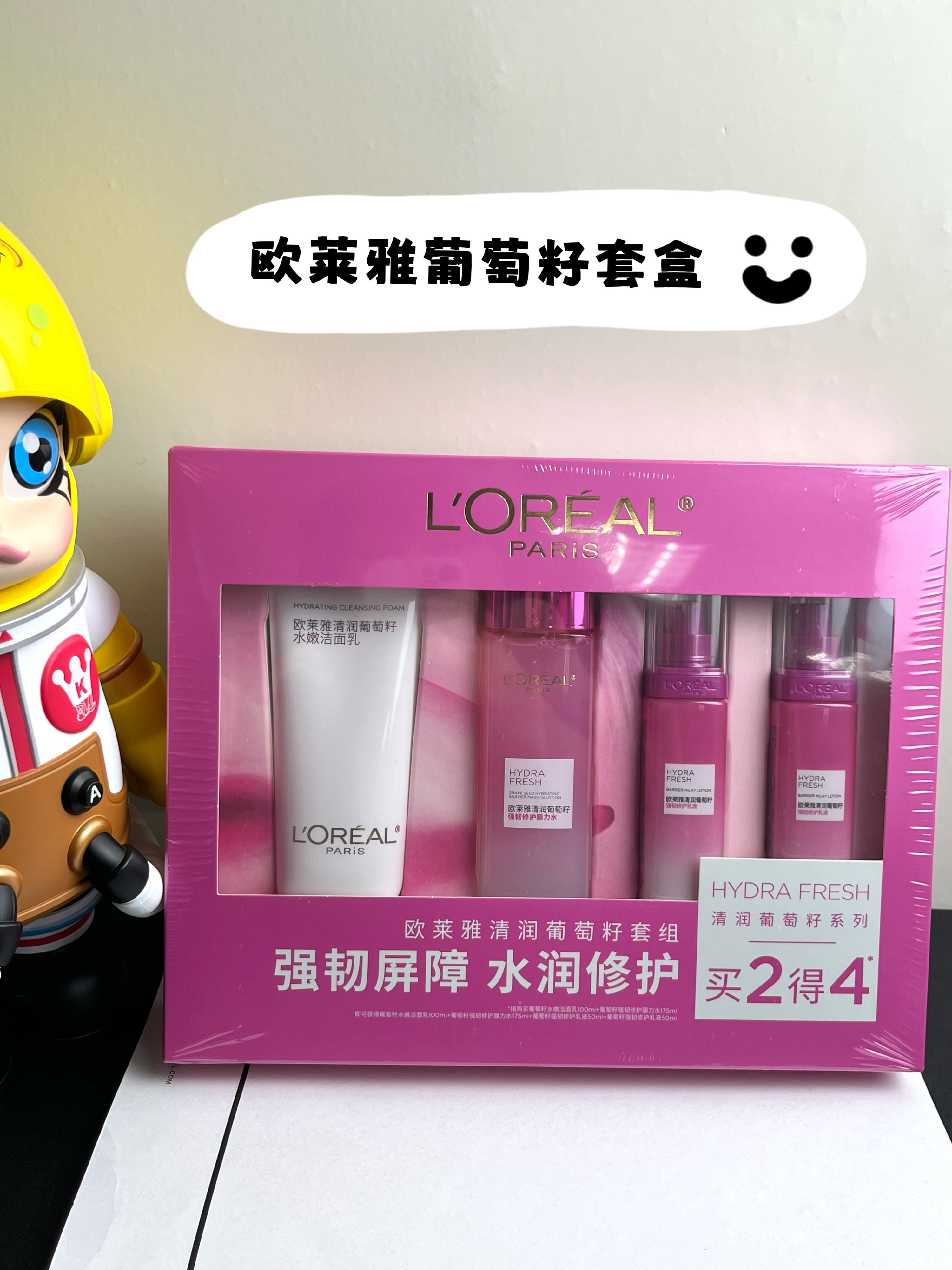 欧莱雅清润葡萄籽护肤品套装礼盒洁面洗面奶膜力水霜乳液保湿滋润 水嫩洁面100ml+魔力水175ml+修护乳液50ml*2