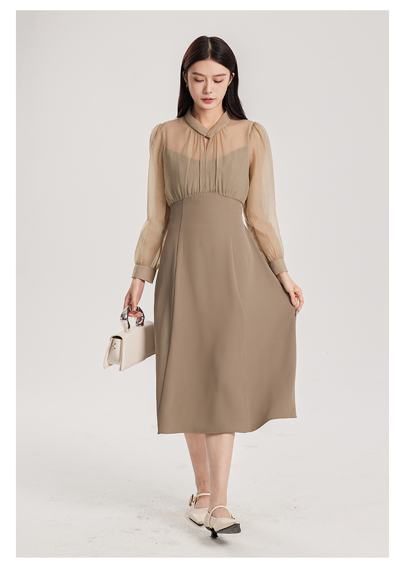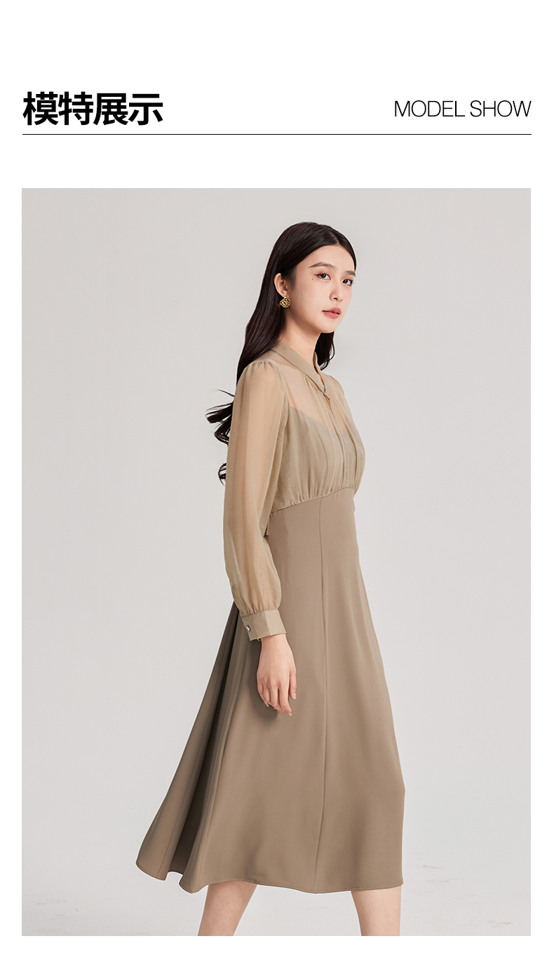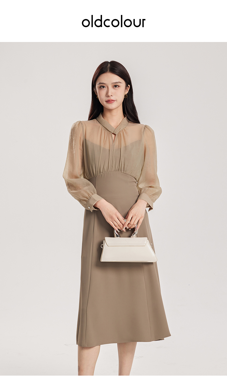 oldcolour春季新品时尚通勤气质显瘦长袖连衣裙女Q131014A1