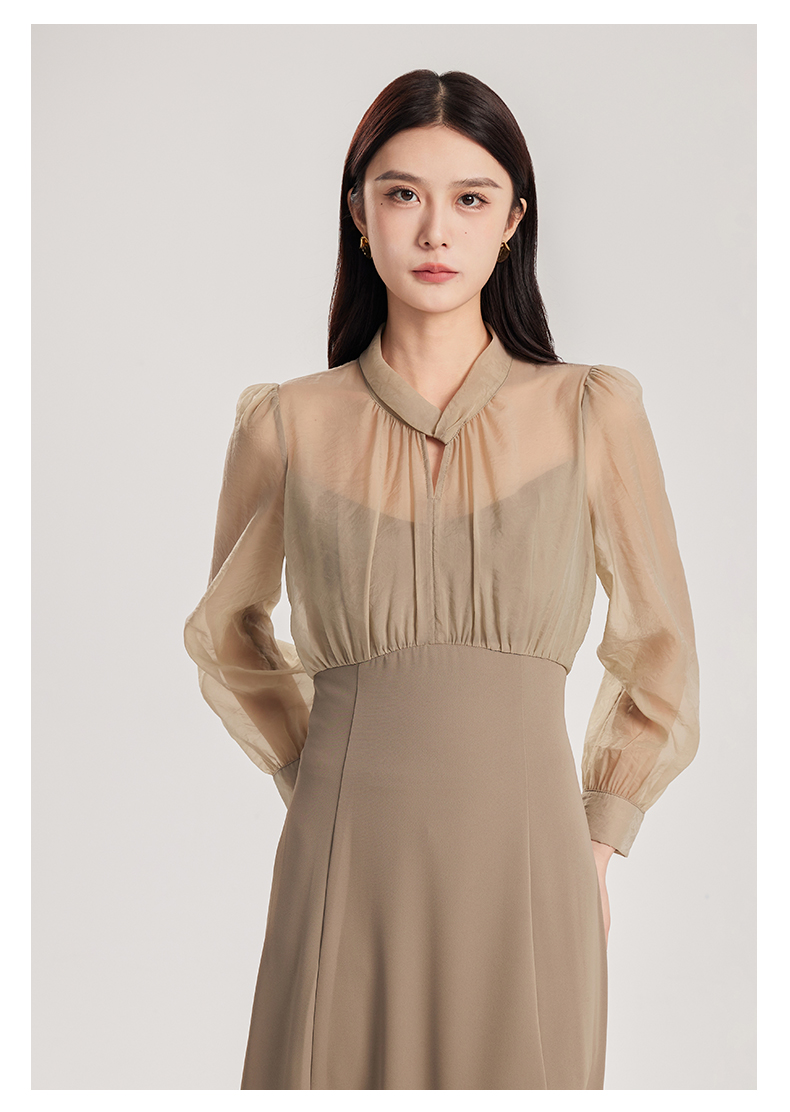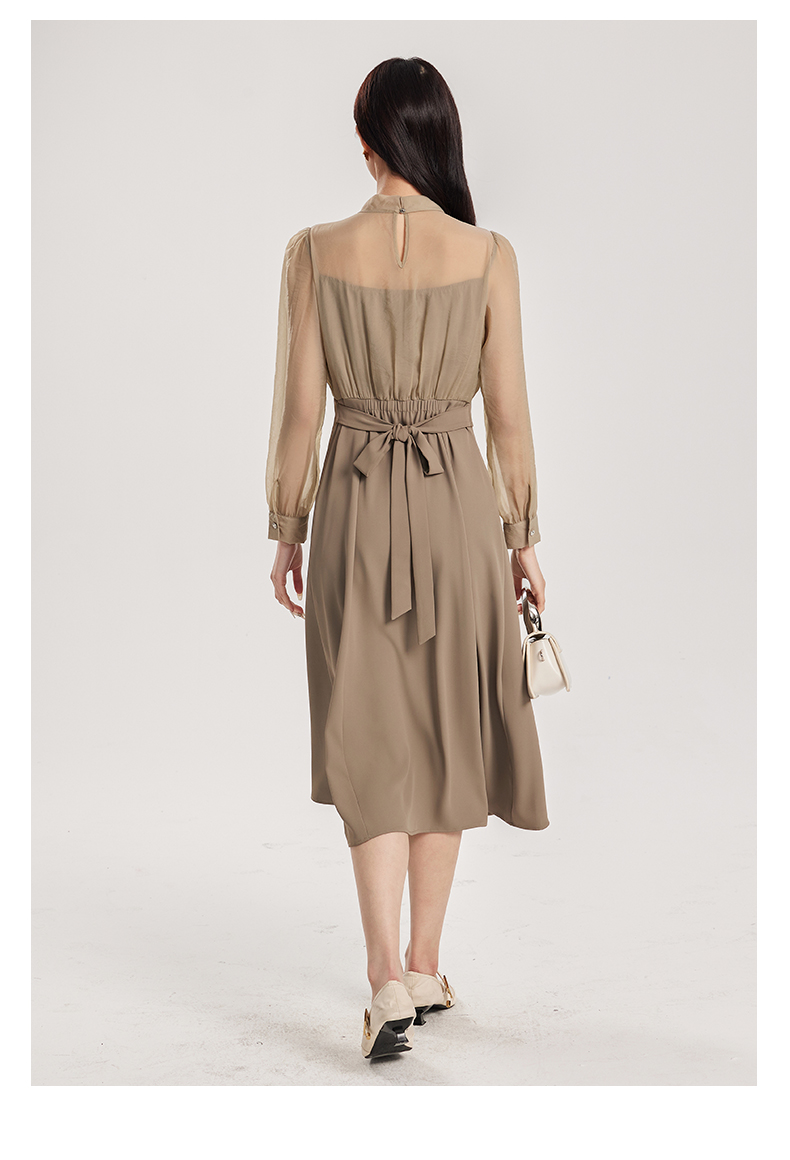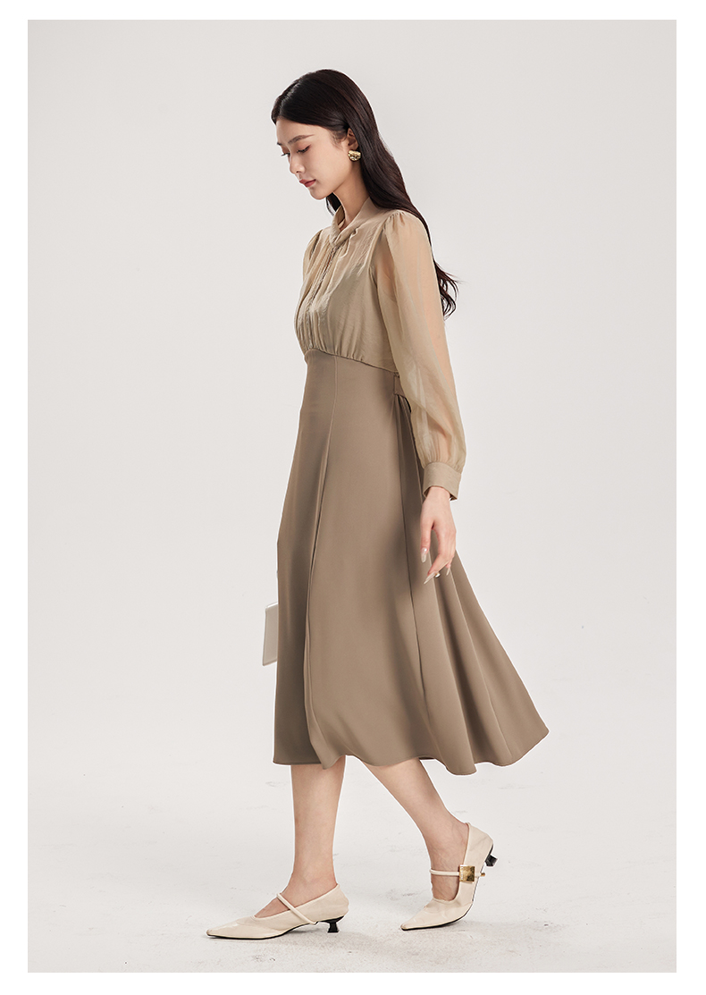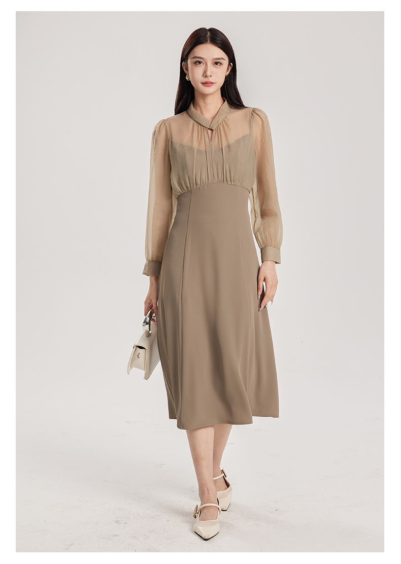 oldcolour春季新品时尚通勤气质显瘦长袖连衣裙女Q131014A1