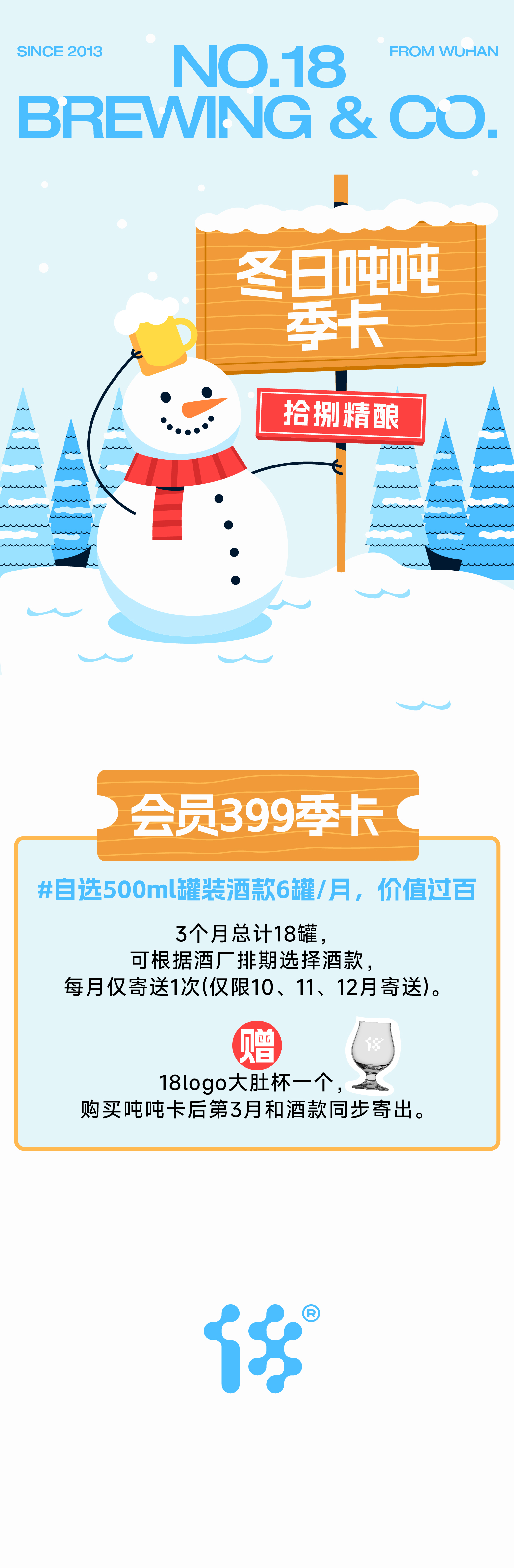 【喝酒计划】拾捌精酿冬日吨吨季卡 3个月3次寄送服务 自选酒款有效期3个月 会员季卡18天保鲜