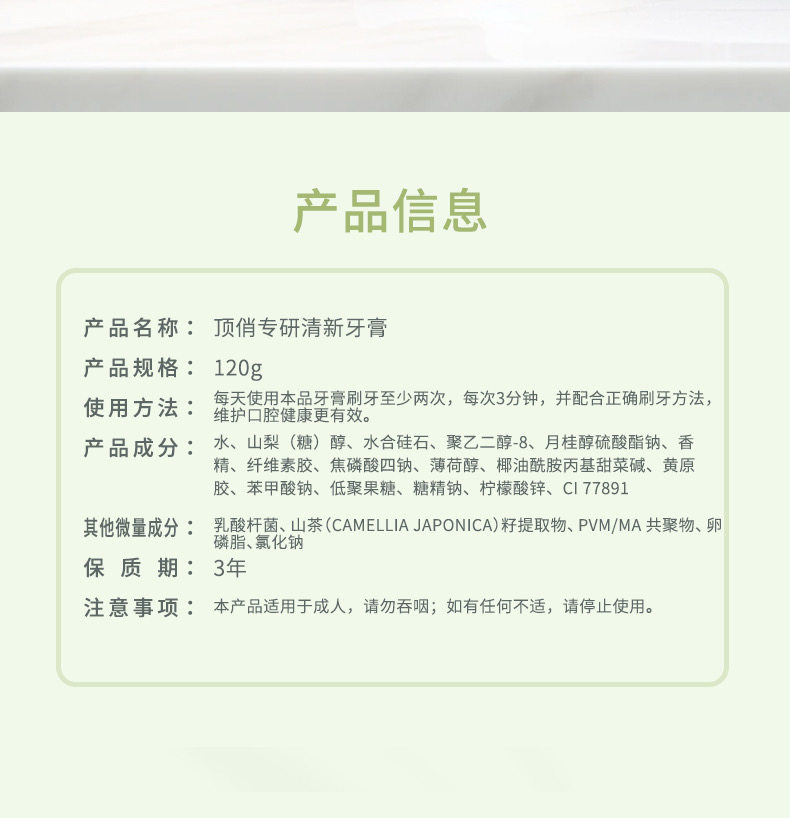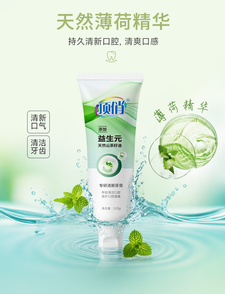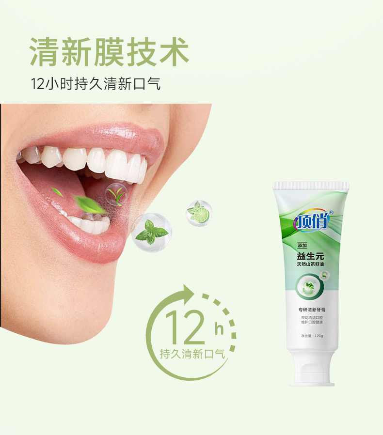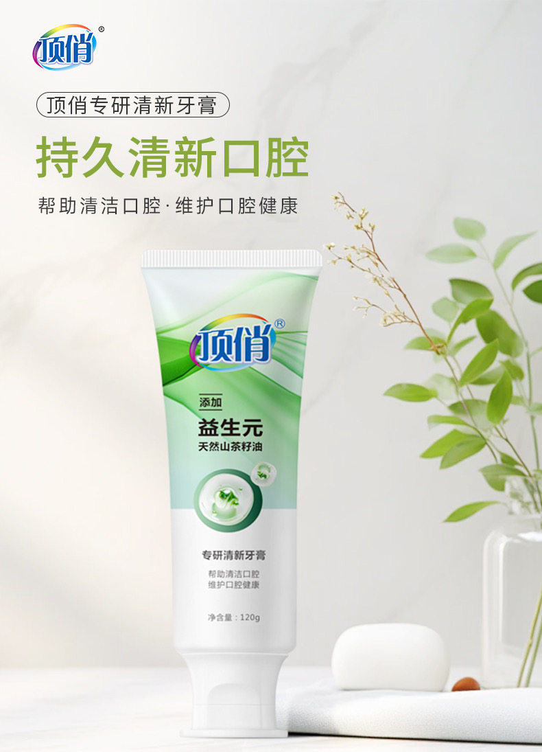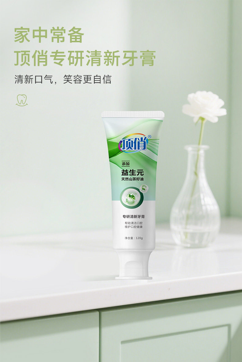 自营(顶俏)-益生元清新口气牙膏植酸钠美白牙膏植物去渍素 120g*2支