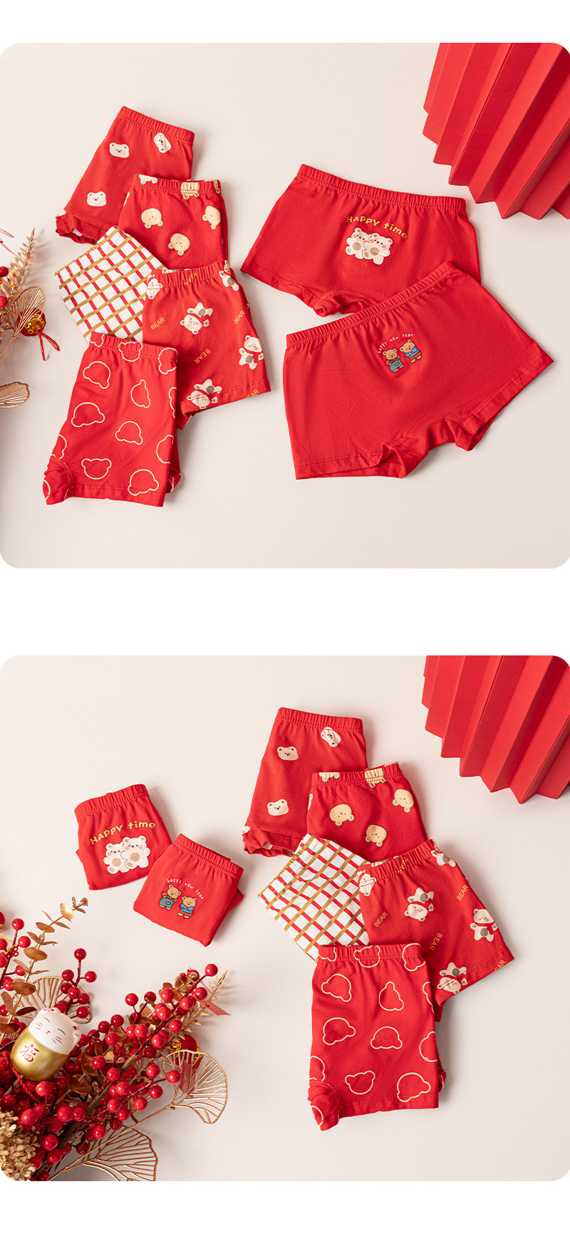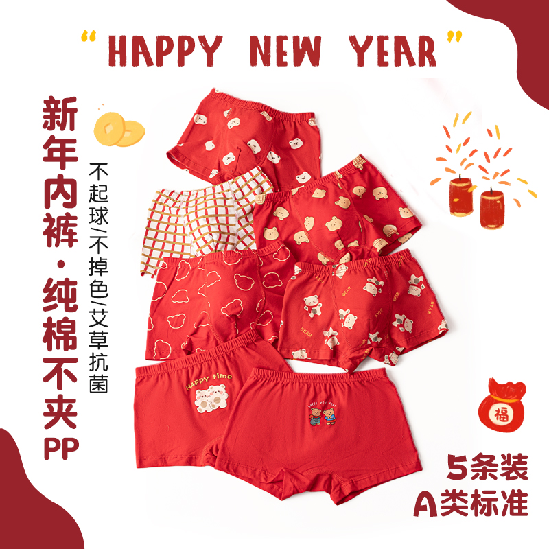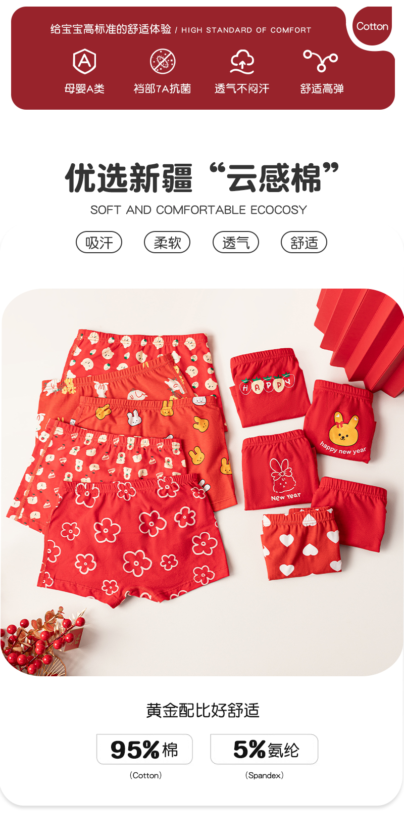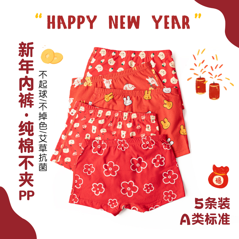 老米优品🎈新年福气小内裤,A类面料5条装!🍃95%棉+5%氨纶《2026年儿童内裤》盲盒纯棉A类四针六线!