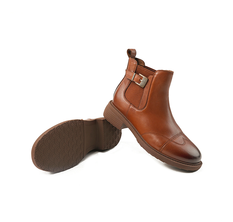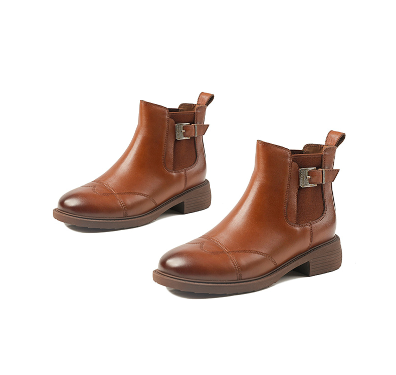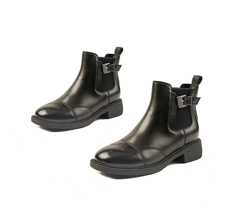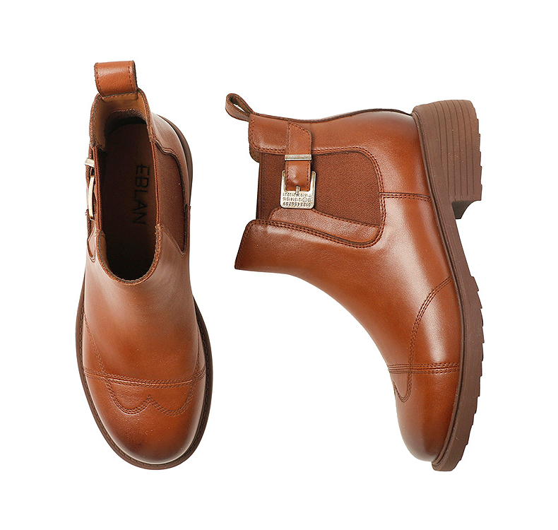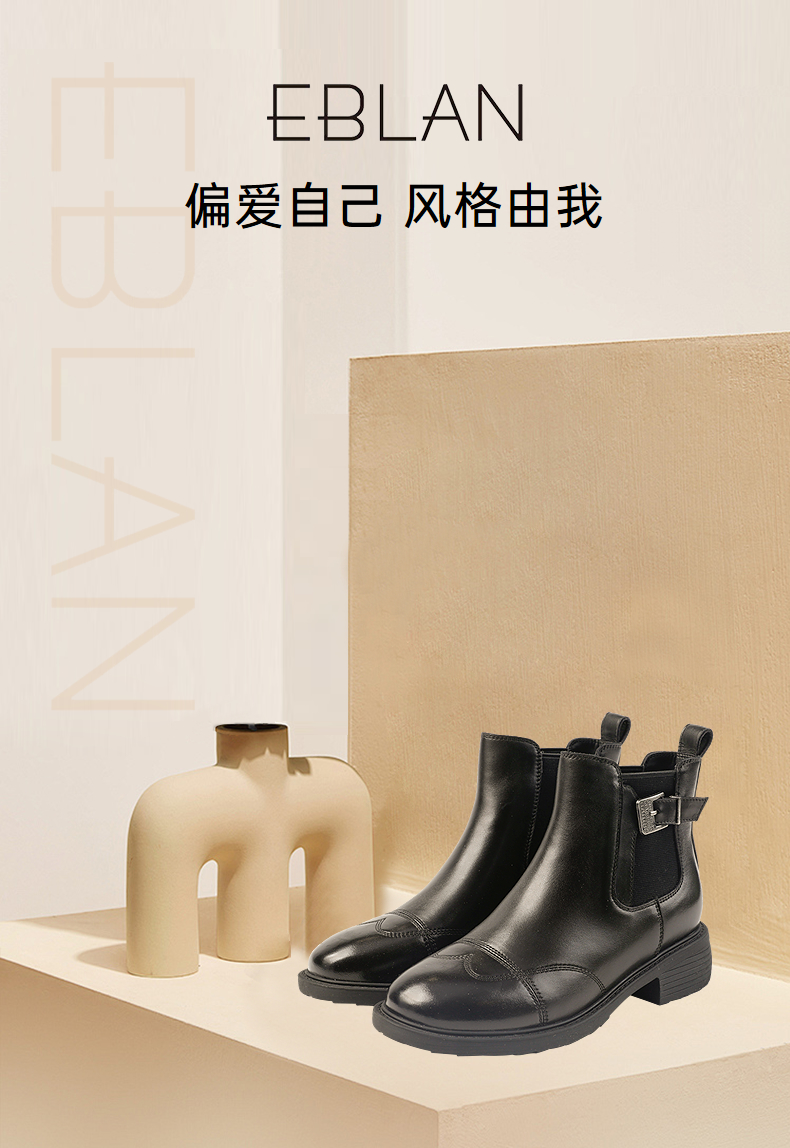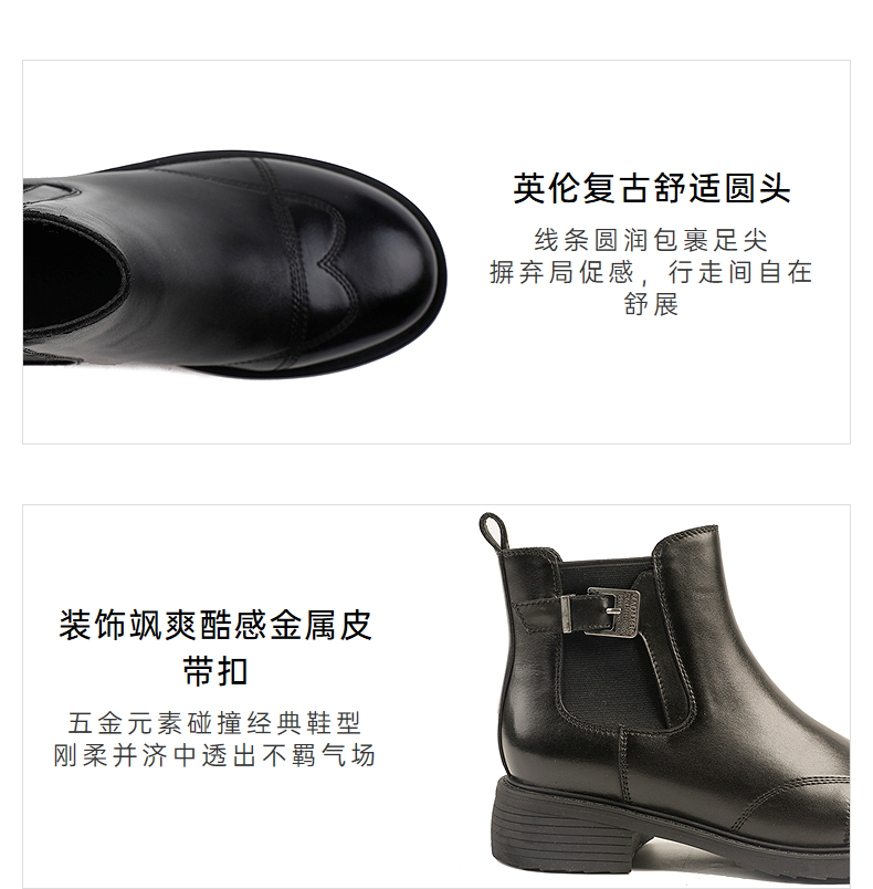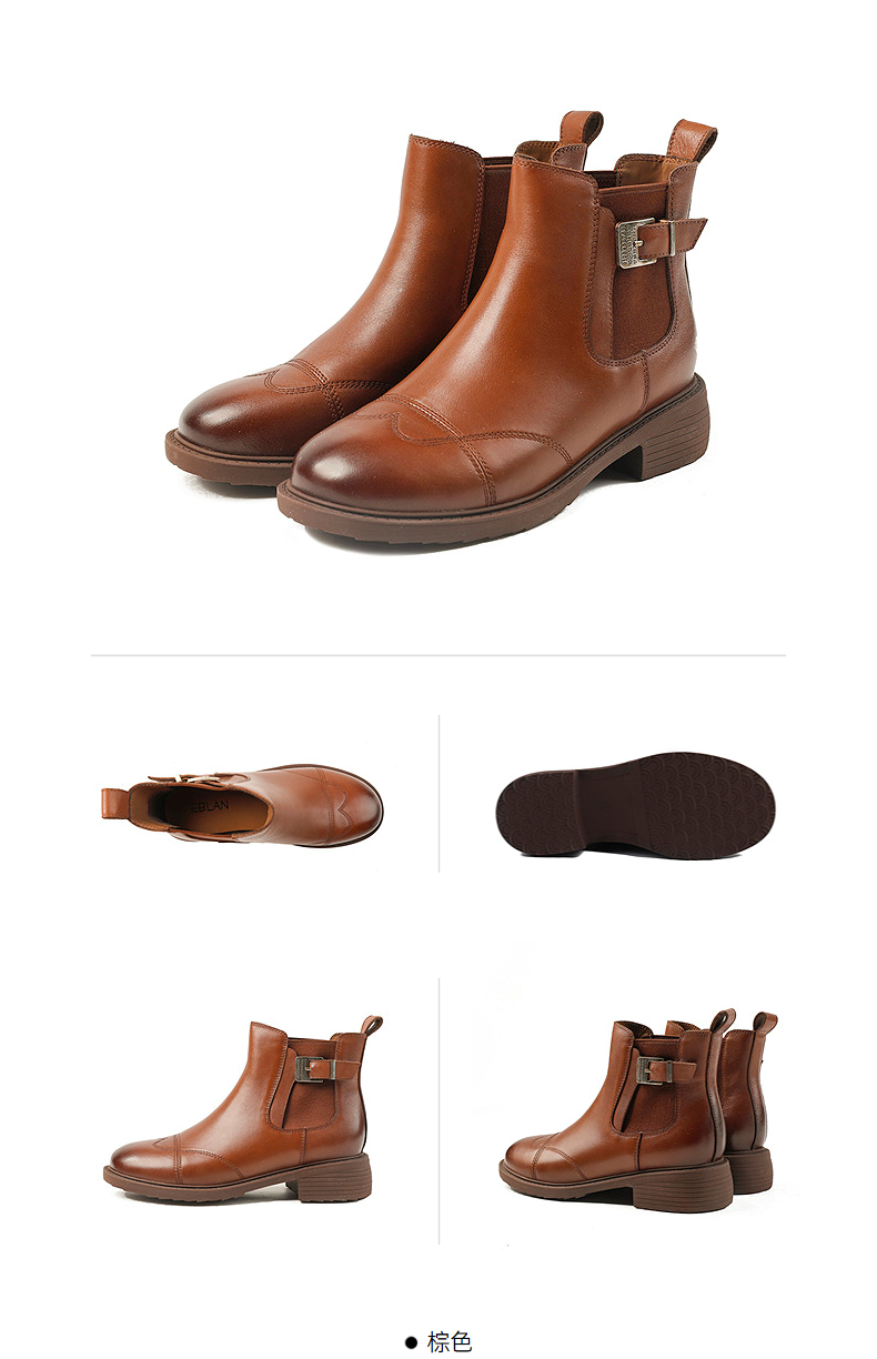 伊伴冬季英伦风鞋头高级头层小牛皮鞋面女鞋B25550703