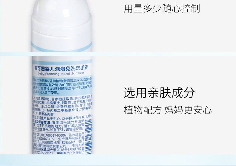 戴可思儿童免水洗洗手液宝宝婴幼儿专用温和清洁护手♥