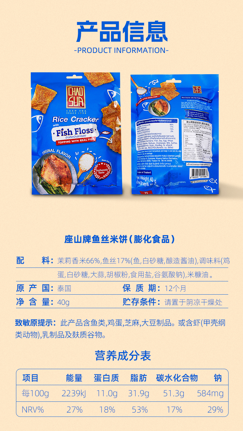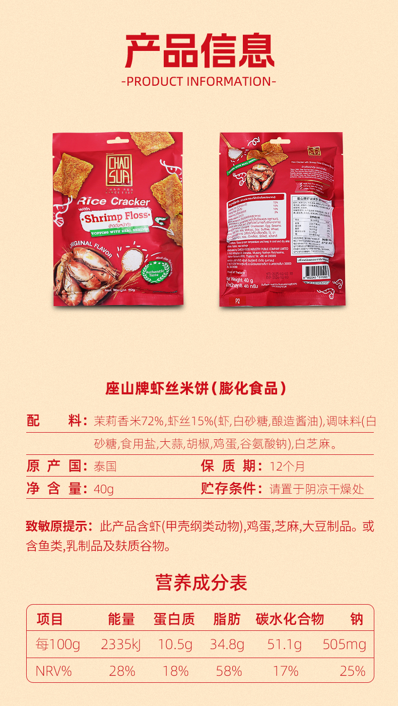 座山牌鱼丝/虾丝米饼40g 膨化食品口感酥脆休闲搭子 052891/052892