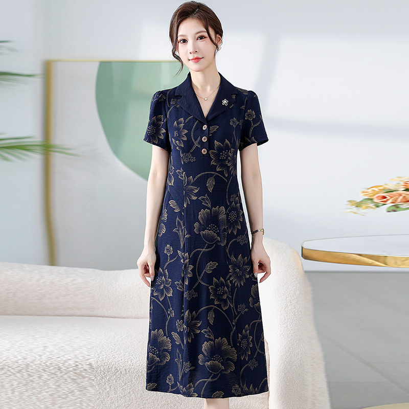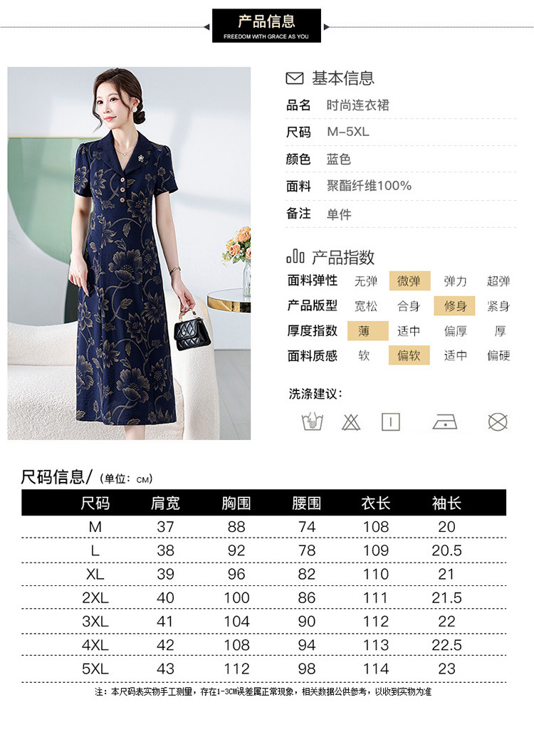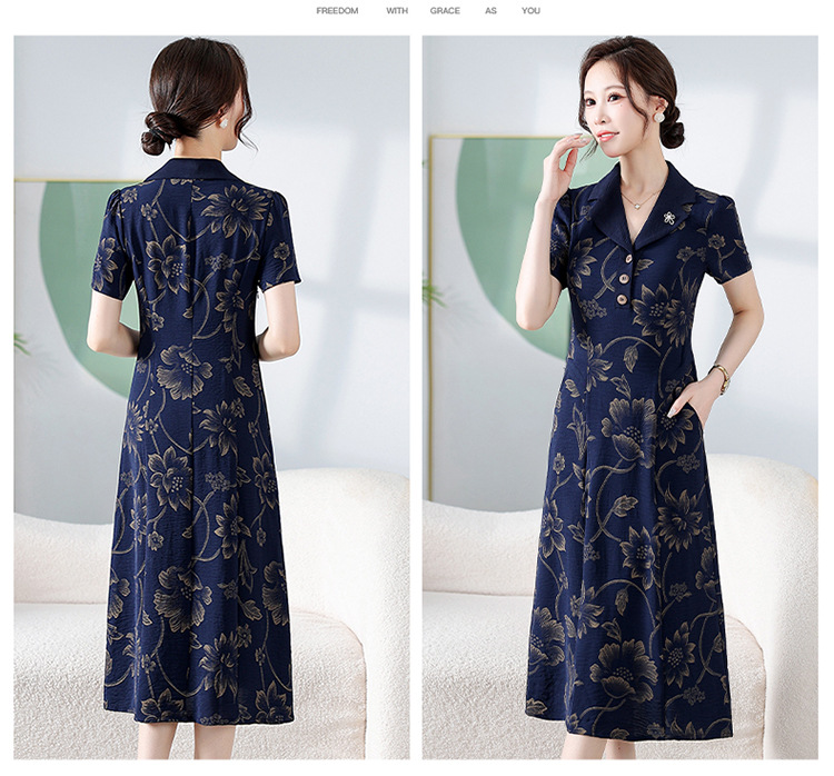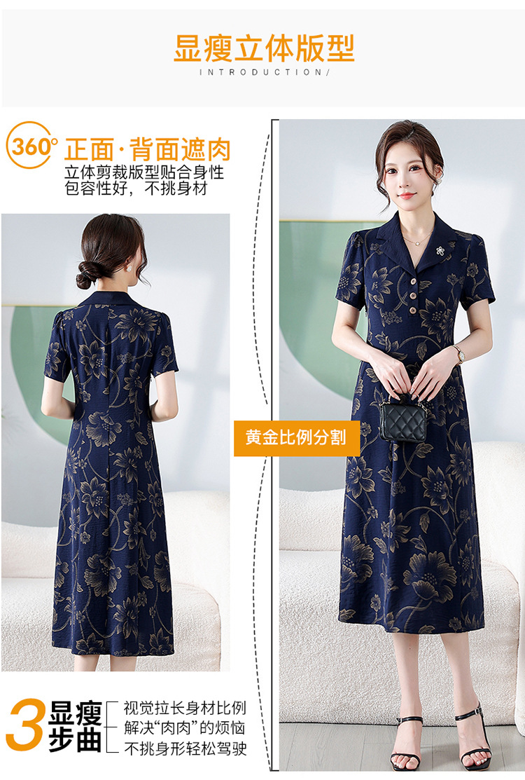 时尚气质,印花中长款连衣裙QYM-KED-H1965-Y