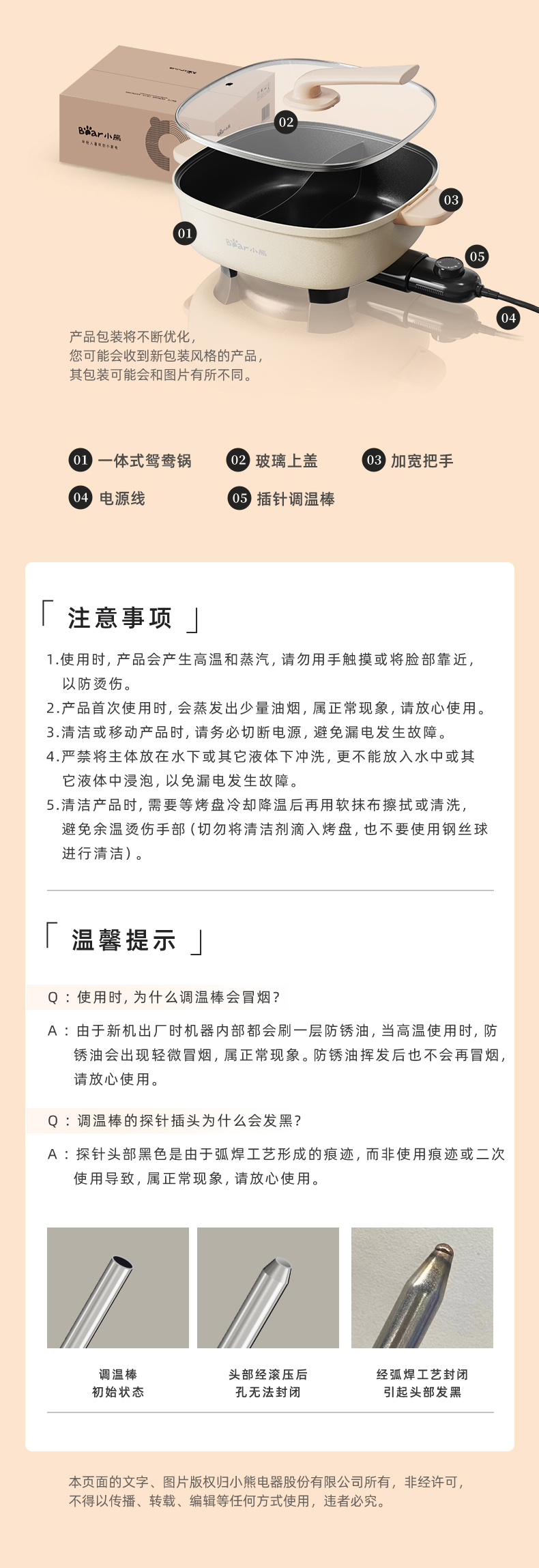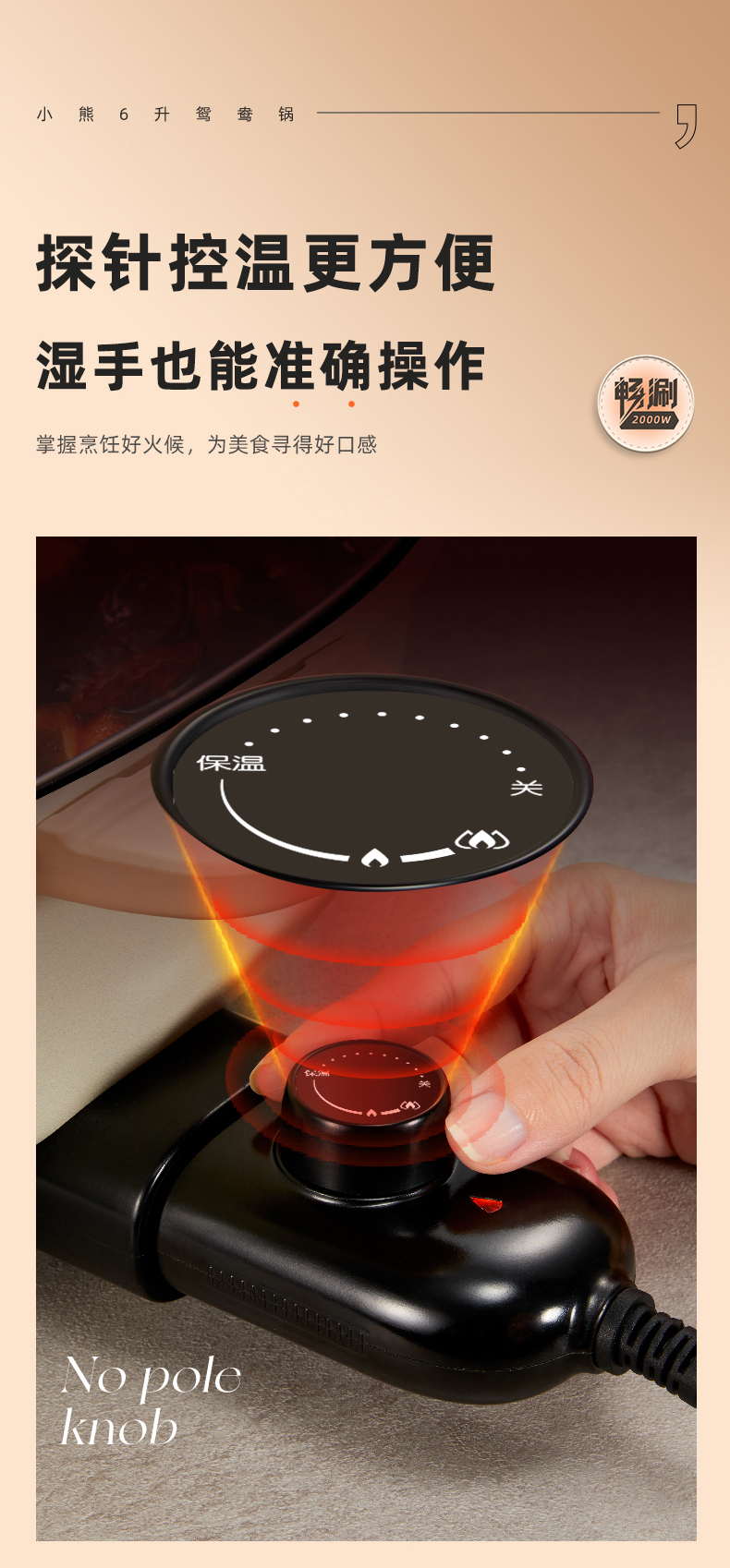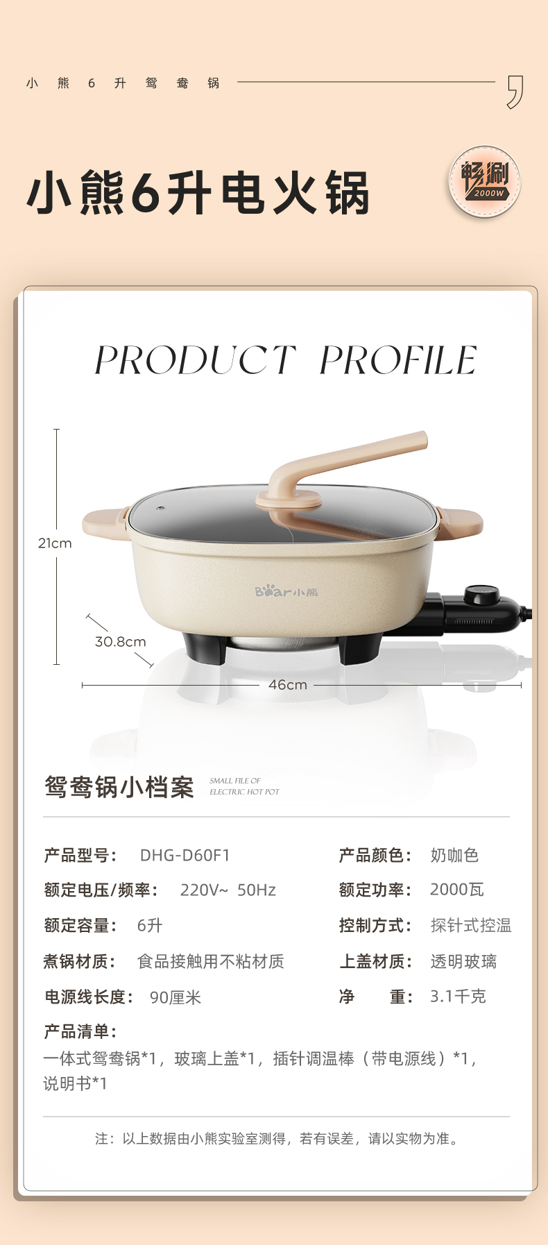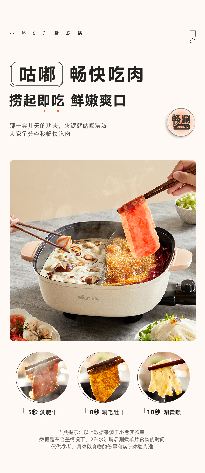 【小程序】小熊(Bear)鸳鸯锅 电火锅 多用途锅 电煮锅 多功能锅一体家用电热锅料理涮肉锅火锅锅具 米白色鸳鸯锅DHG-D60F1 6L