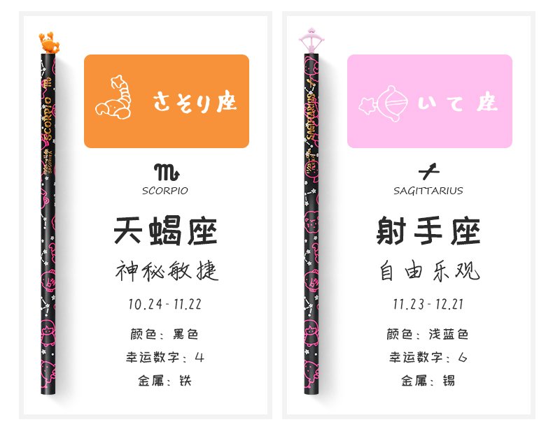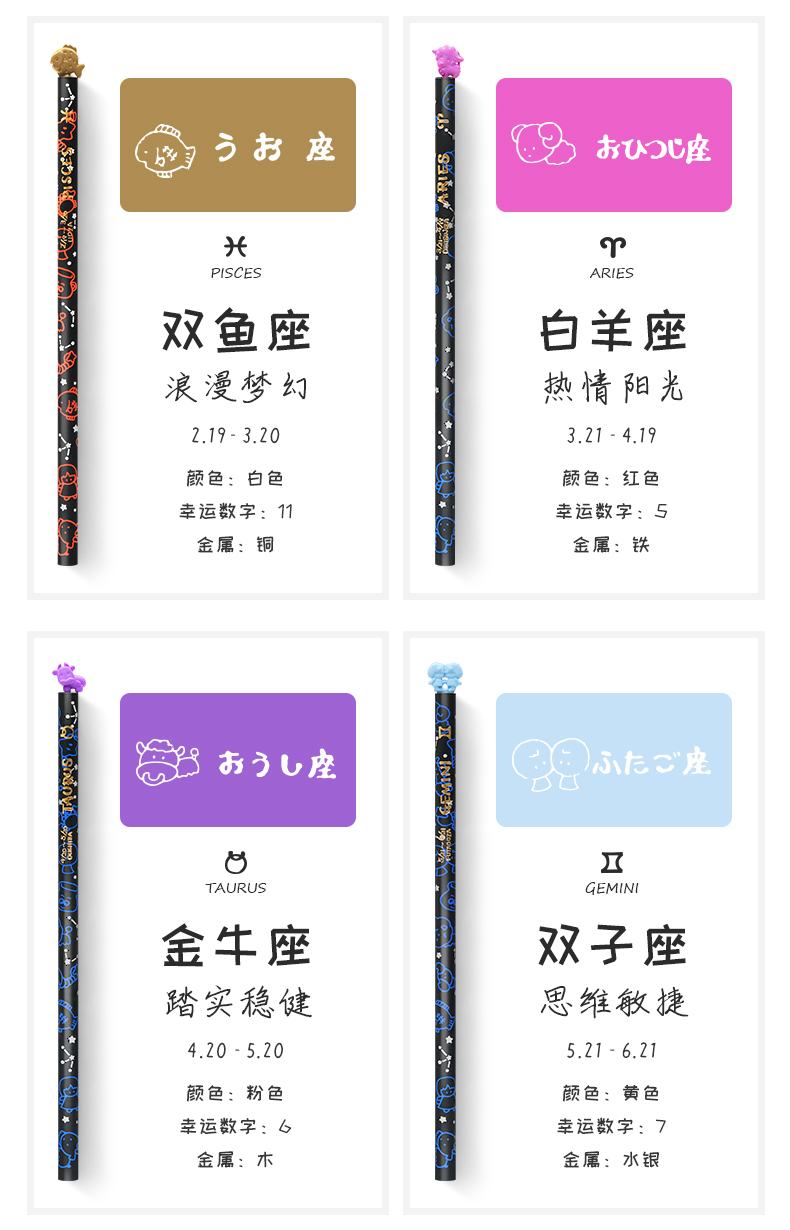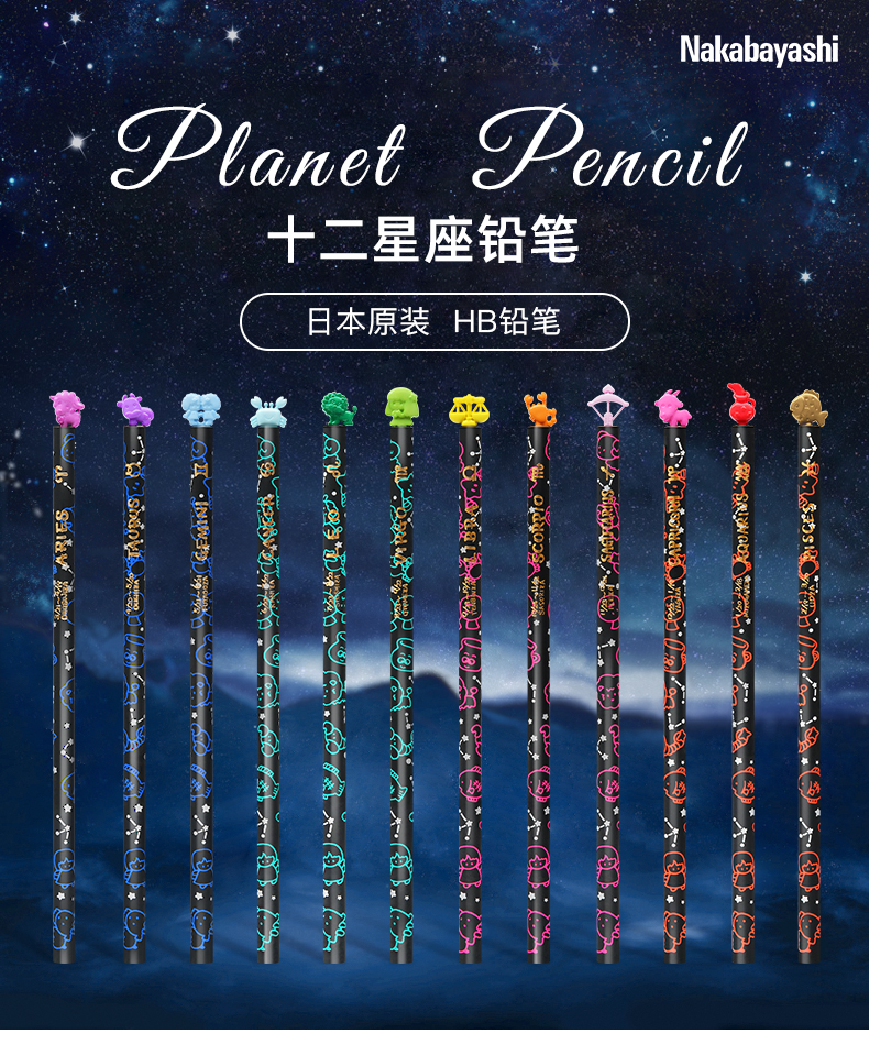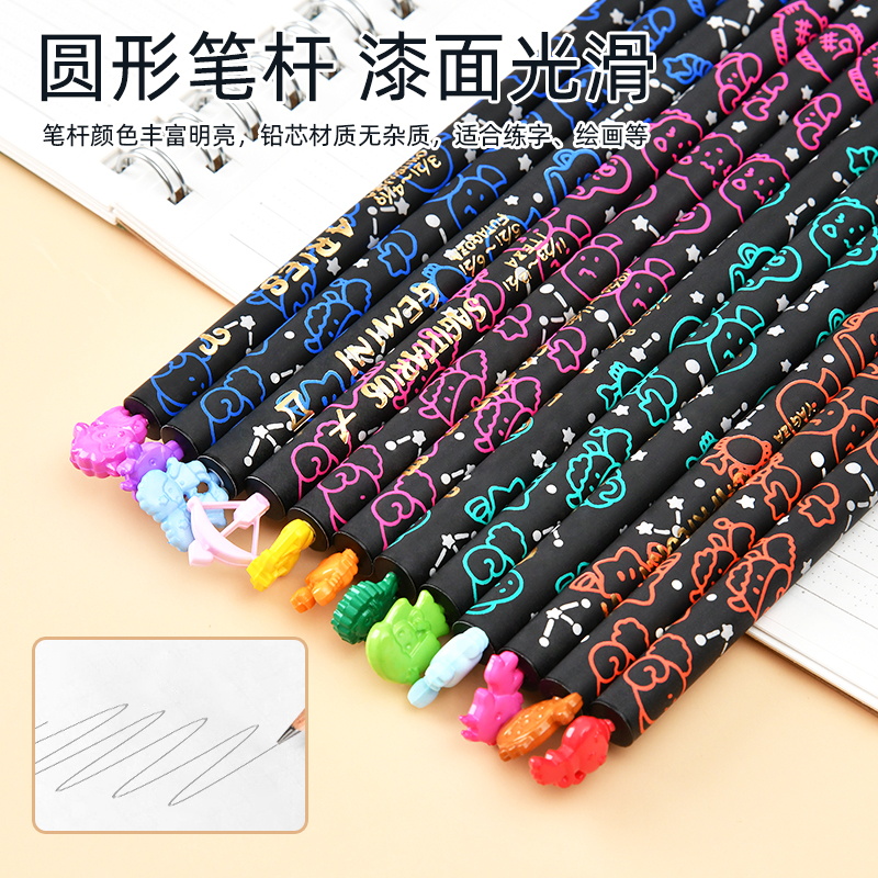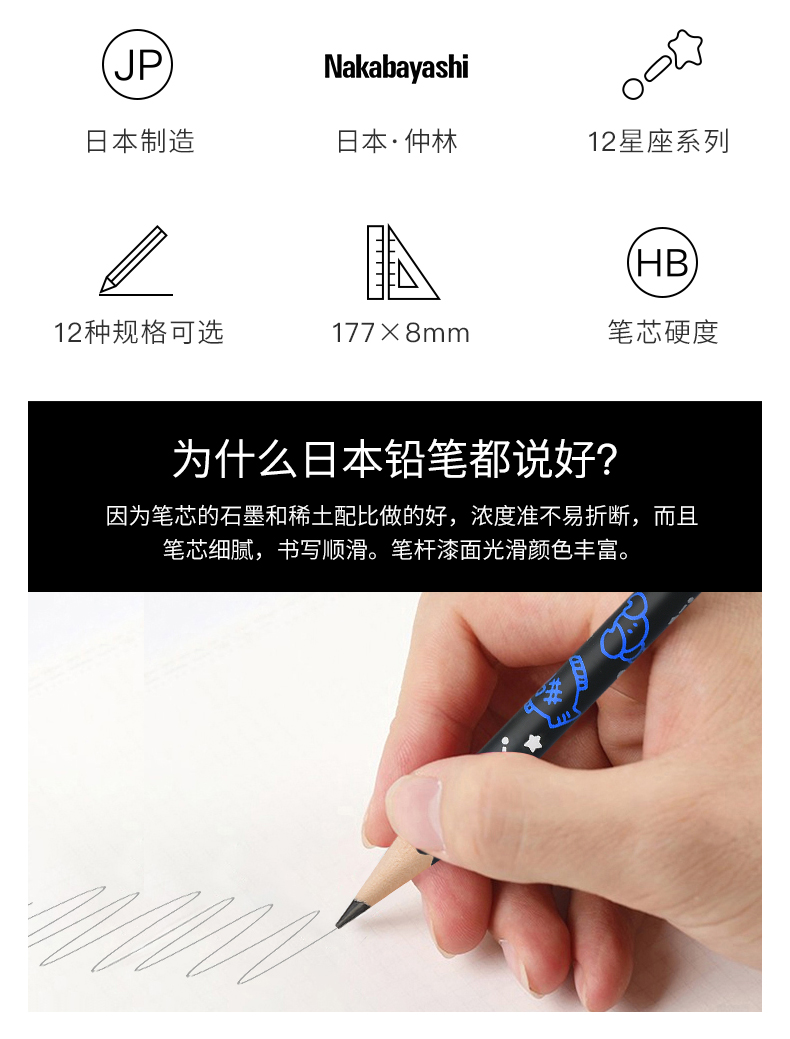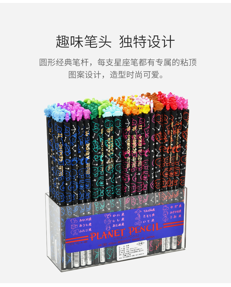 日本铅笔/小学生专用/儿童原木铅笔/初学者练字铅笔/不易断铅/趣味十二星座限定