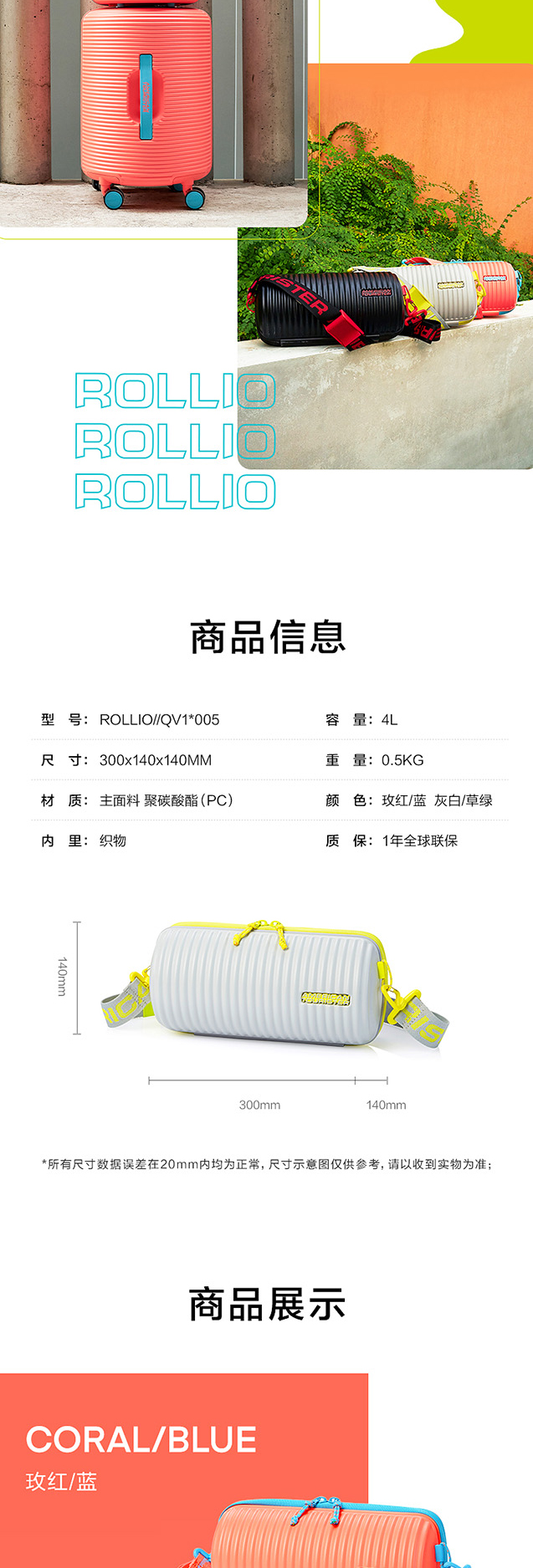 【美旅】Rollio鼓鼓箱系列潮搭优质PC时尚斜挎包QV1*005