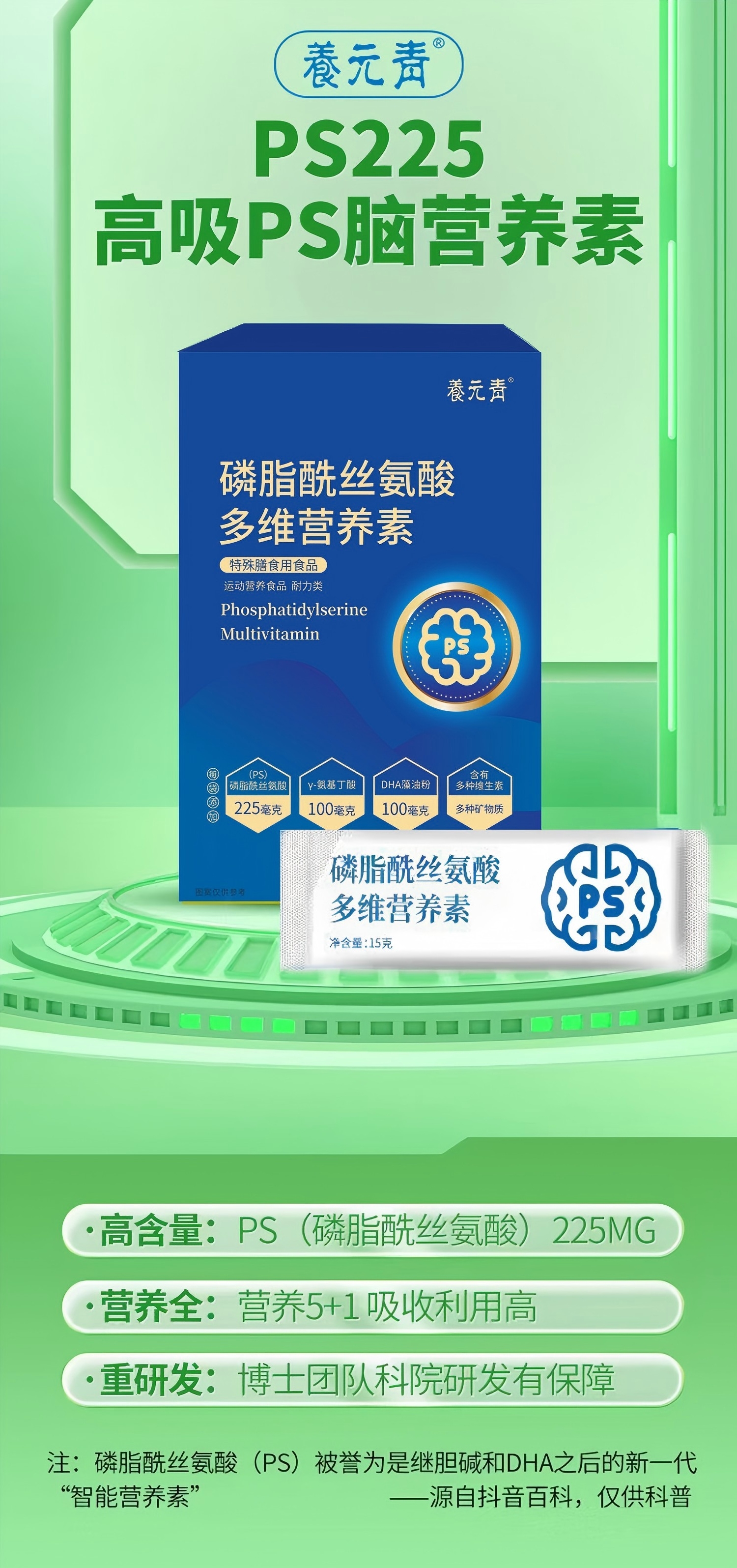 【PS全新升级】养元青PS磷脂酰丝氨酸15g*12袋/盒 科院博士团队研发