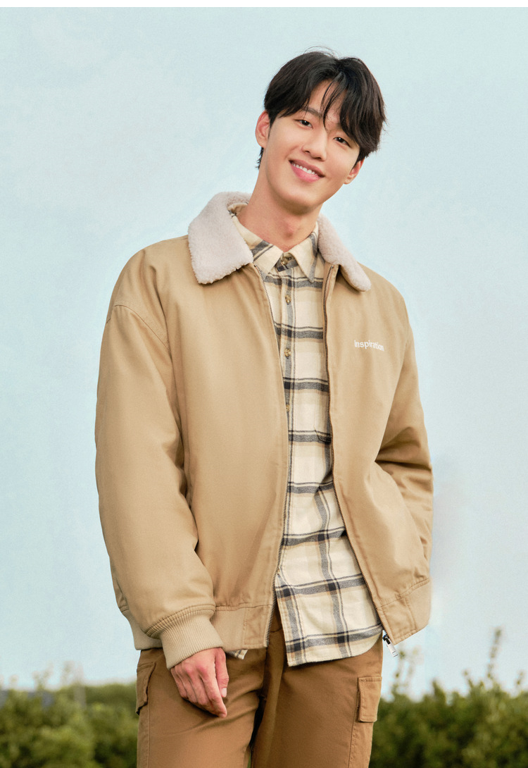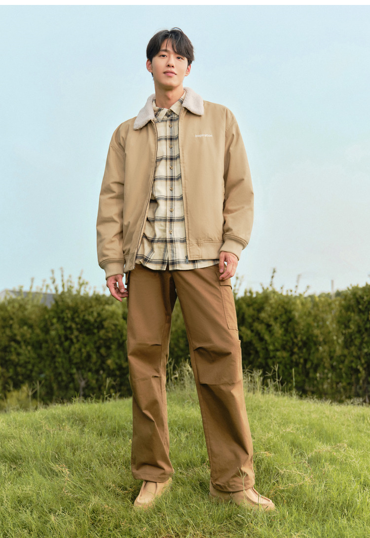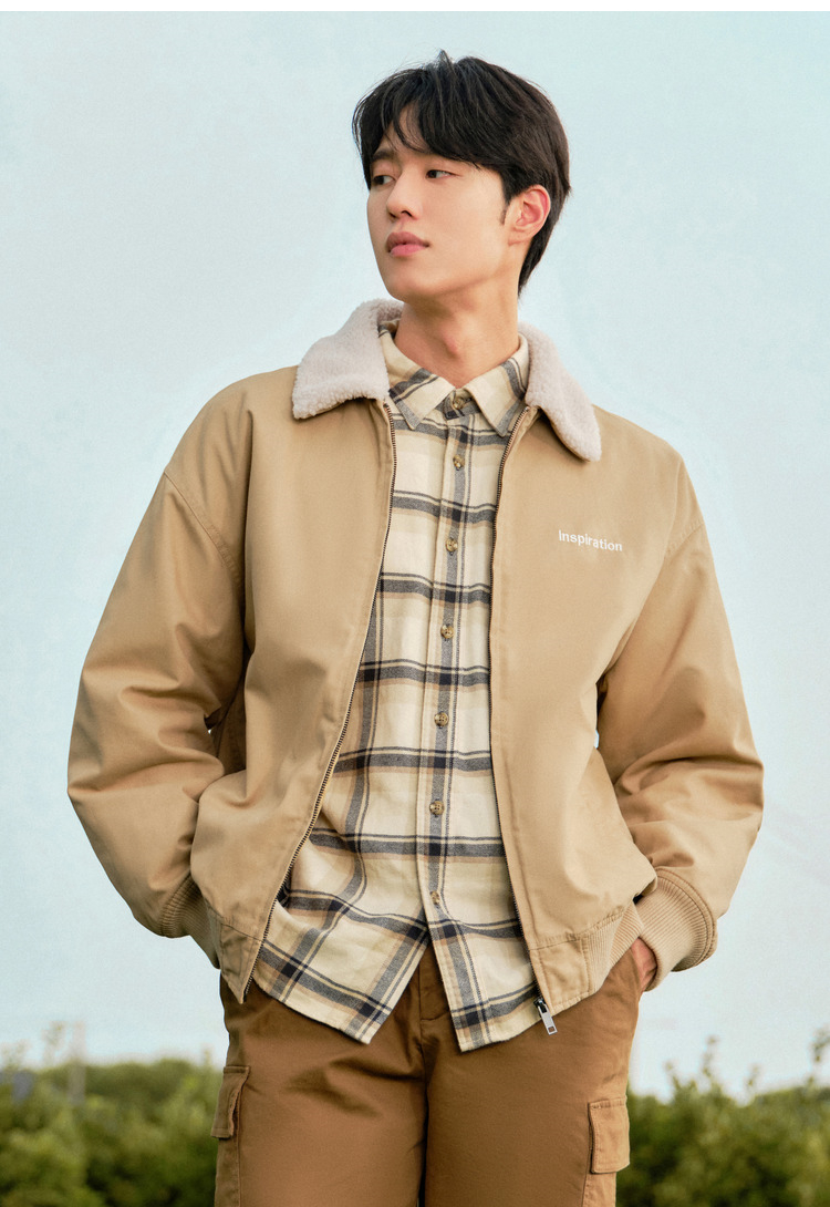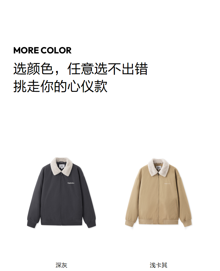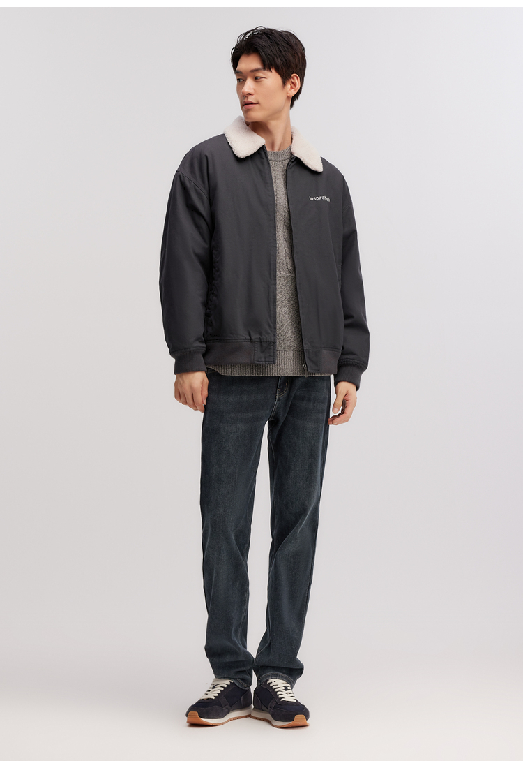 森马夹克男冬季新款复古拼接仿羊羔毛翻领外套宽松绣花棉服潮