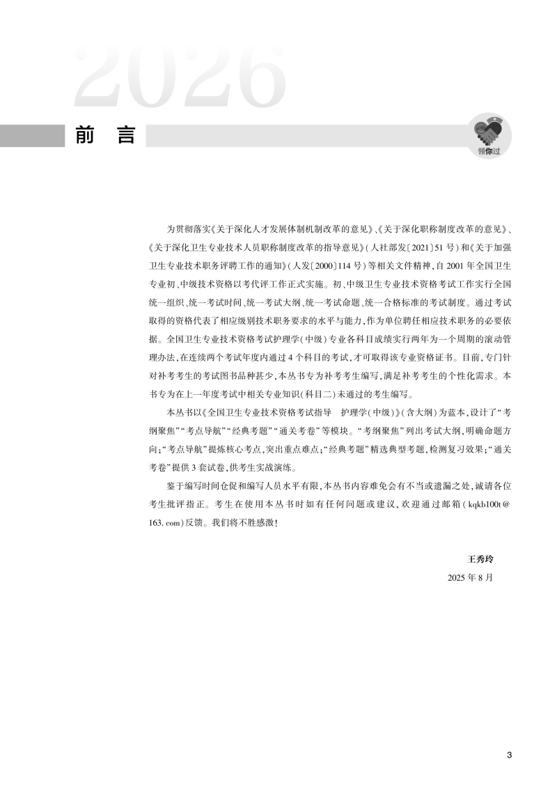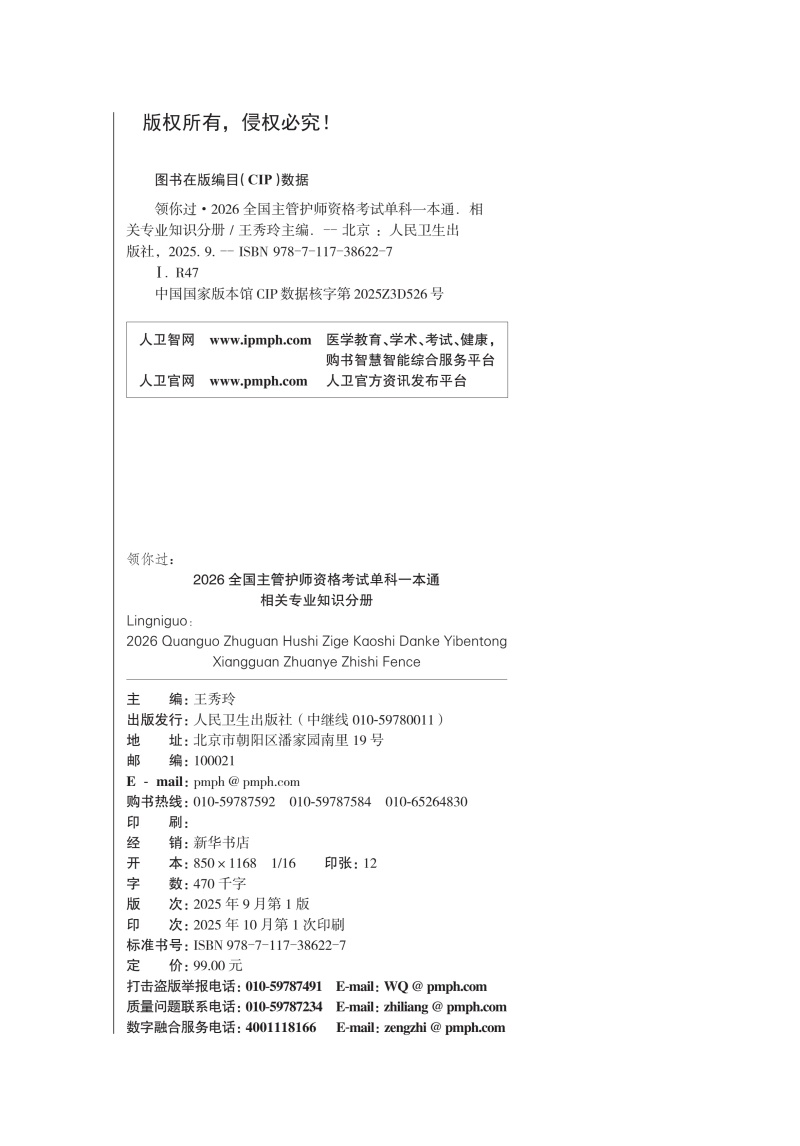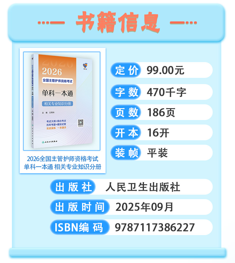 领你过 2026全国主管护师资格考试单科一本通 相关专业知识分册 王秀玲 主编 中级护师考试历年真题 9787117386227人民卫生出版社