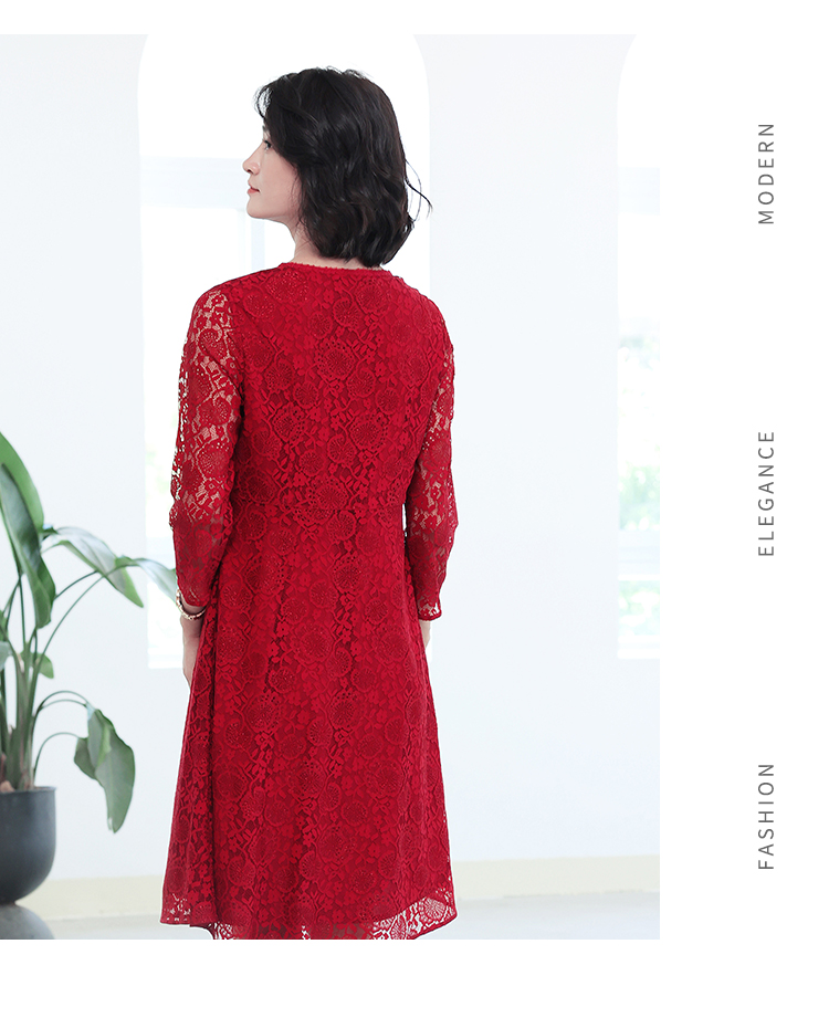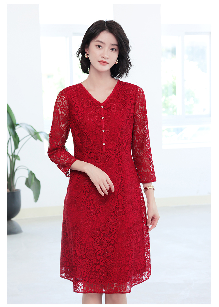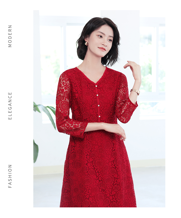 秋季新款气质优雅减龄显瘦蕾丝七分袖连衣裙E93LL22
