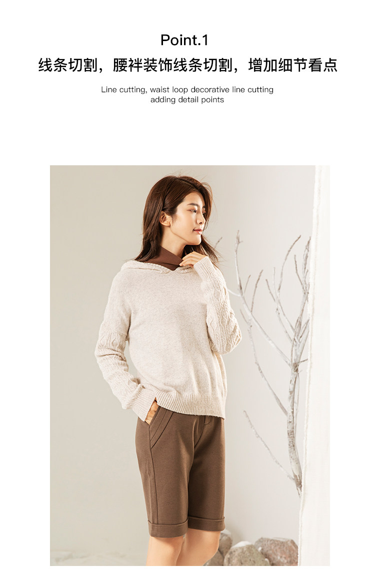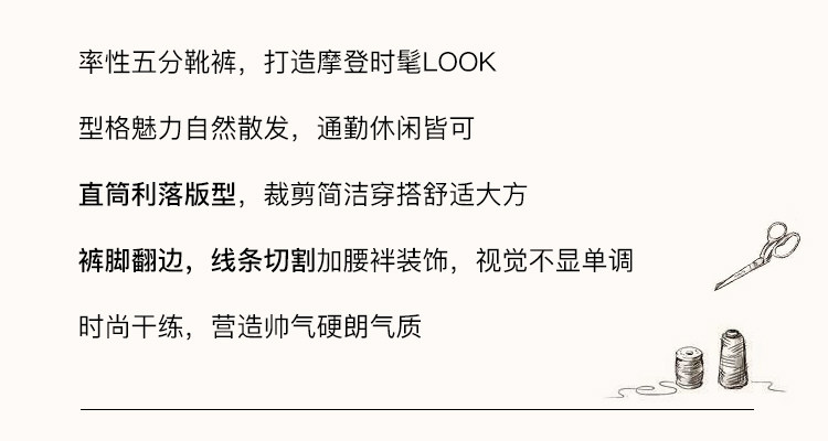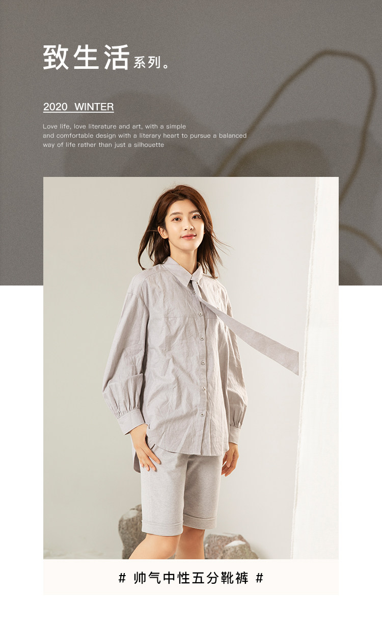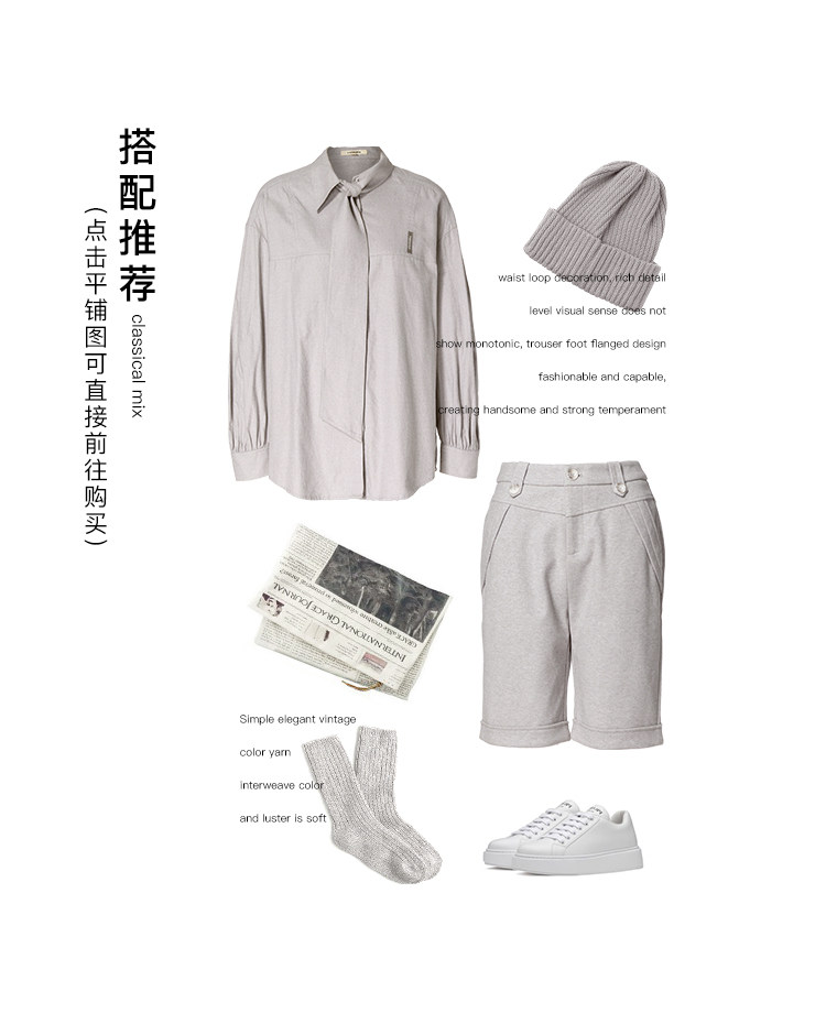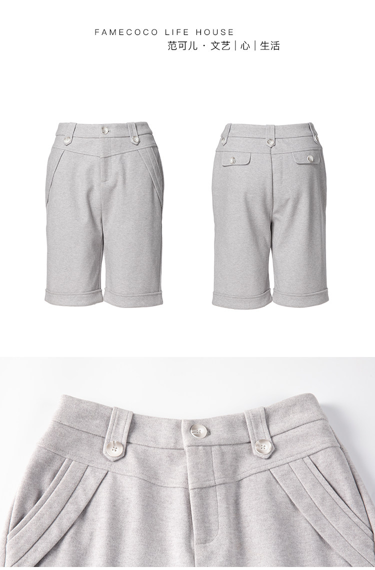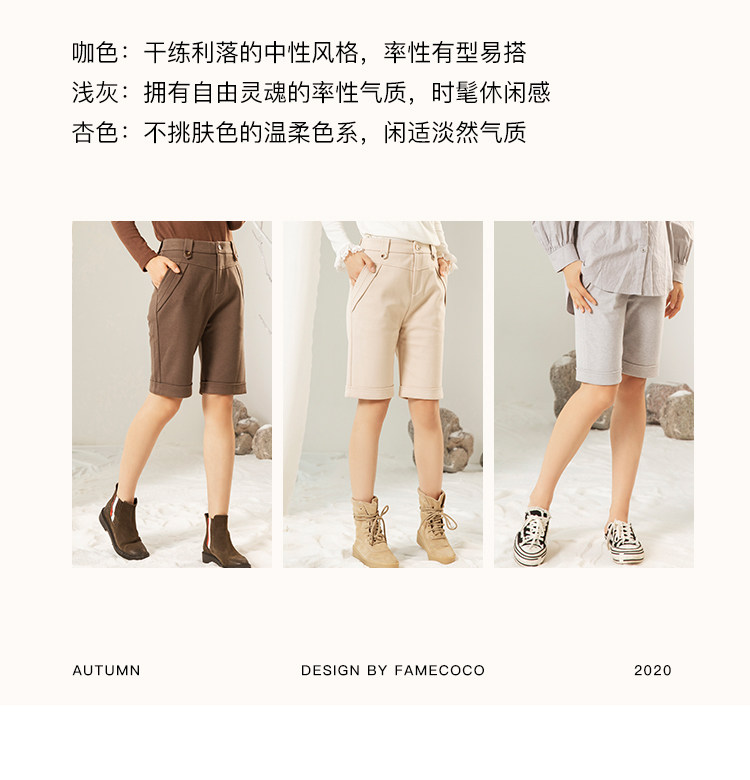 Famecoco范可儿五分裤女款宽松直筒港味短裤F208GB017