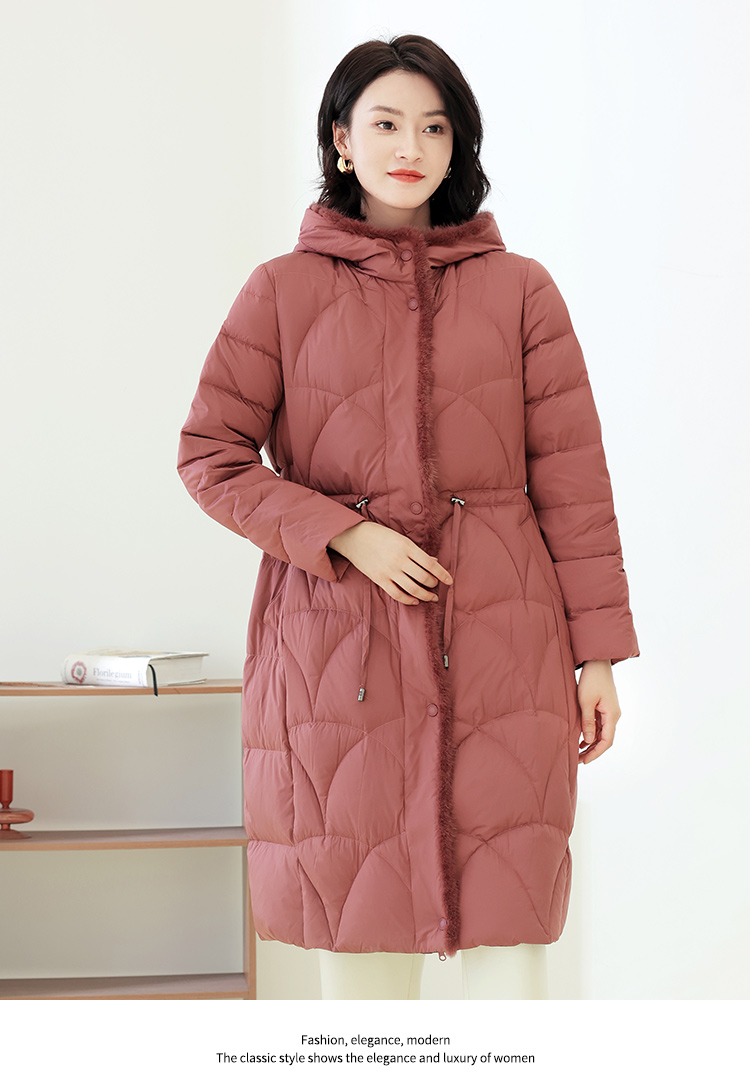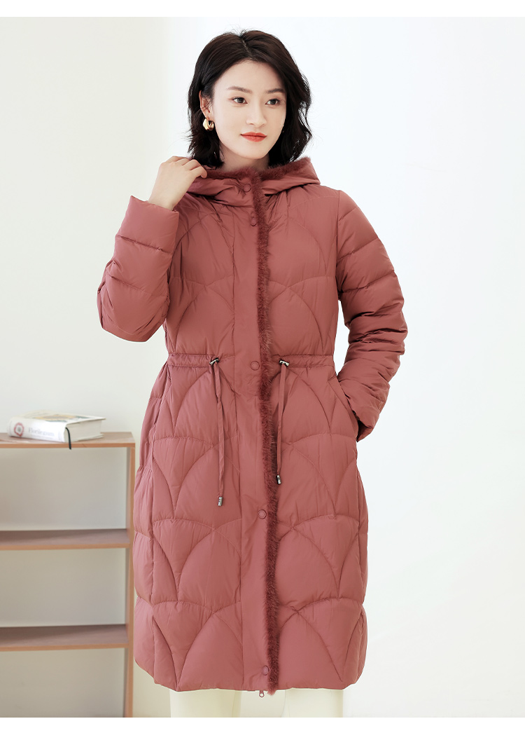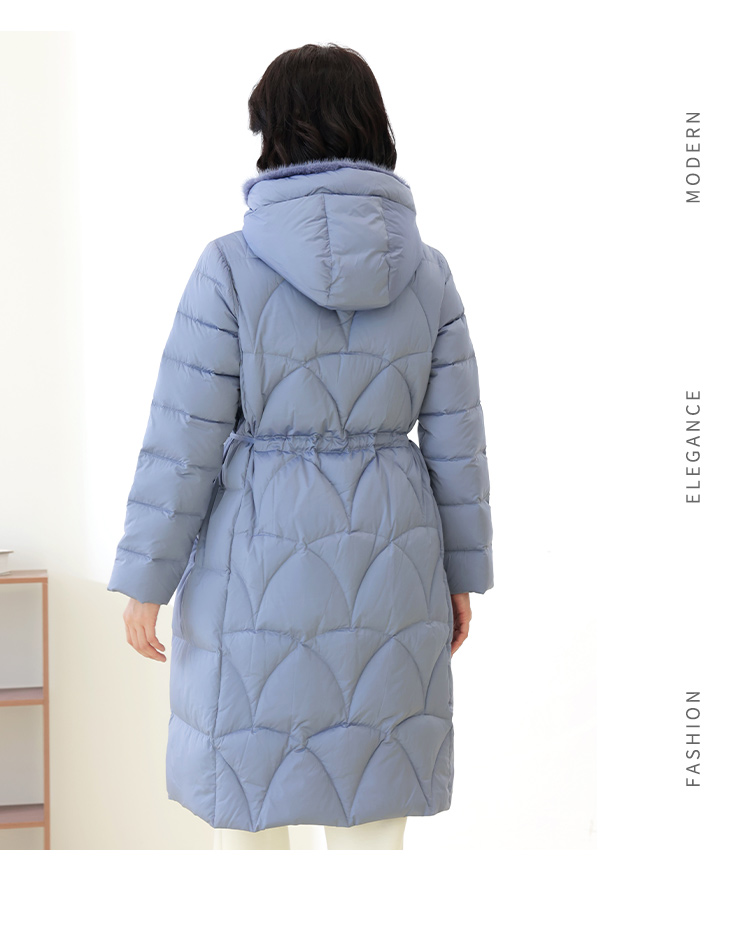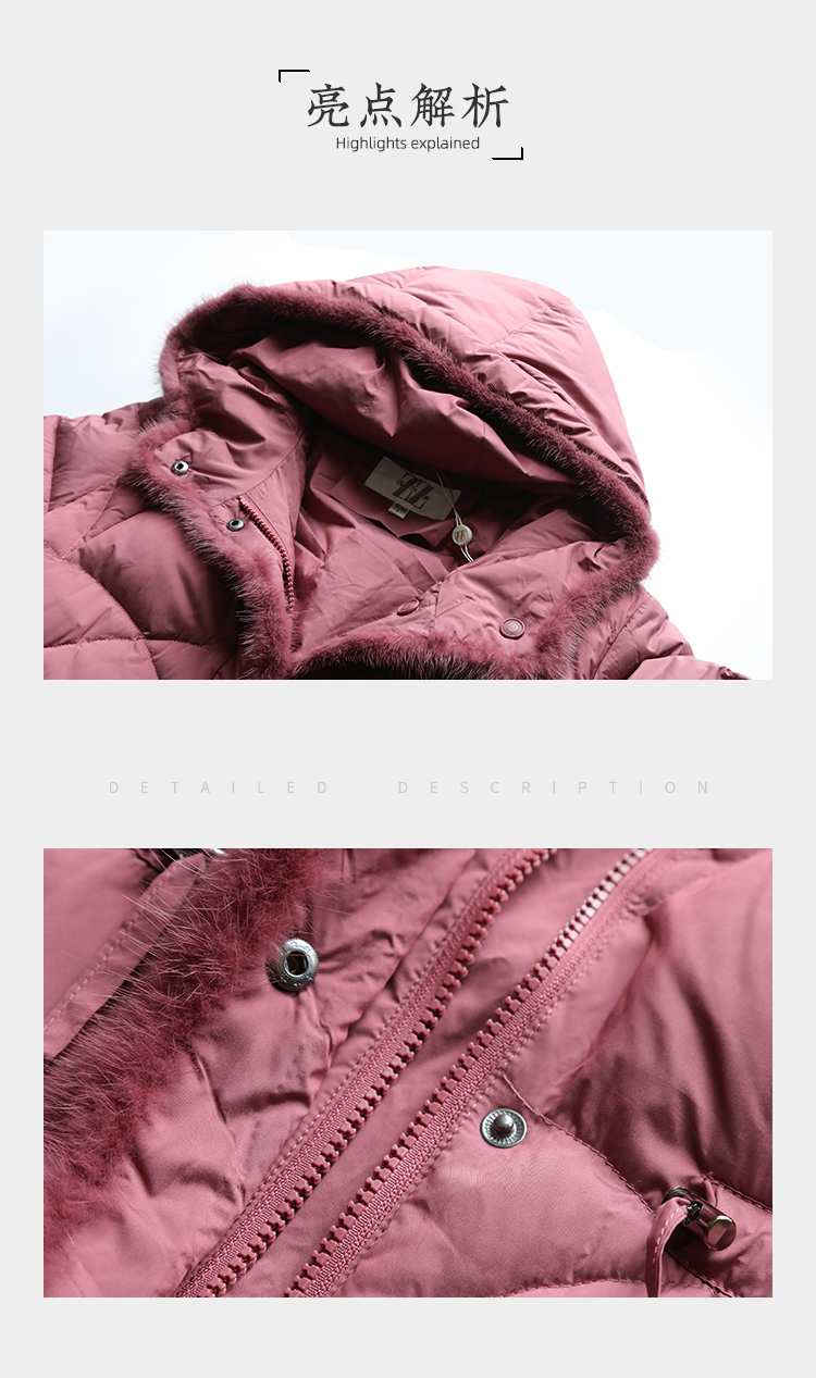 佐尔美冬季新款 时尚连帽貂毛领羽绒服外套女E14YM25