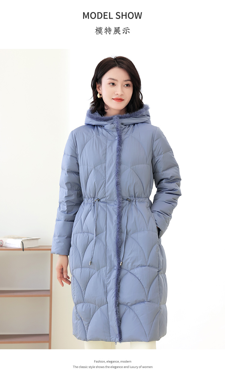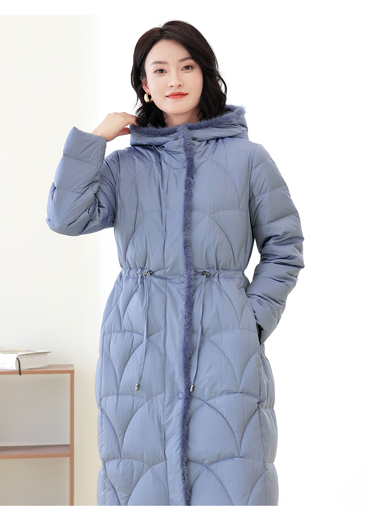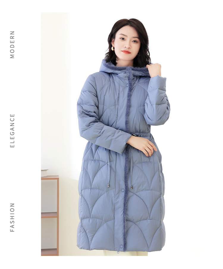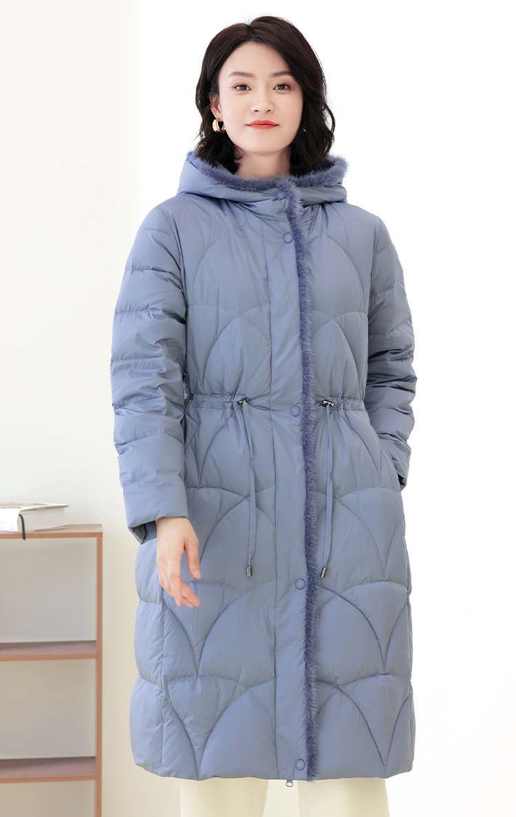 佐尔美冬季新款 时尚连帽貂毛领羽绒服外套女E14YM25