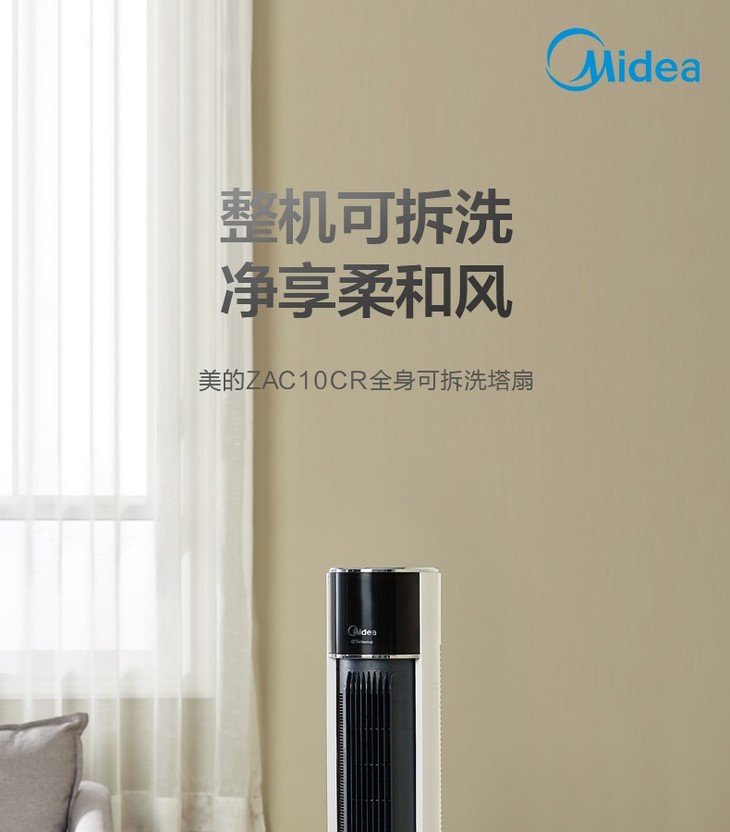 美的(Midea)落地塔扇落地扇电风扇京东自营无叶静音迷你立式宿舍便携ZAC10CR
