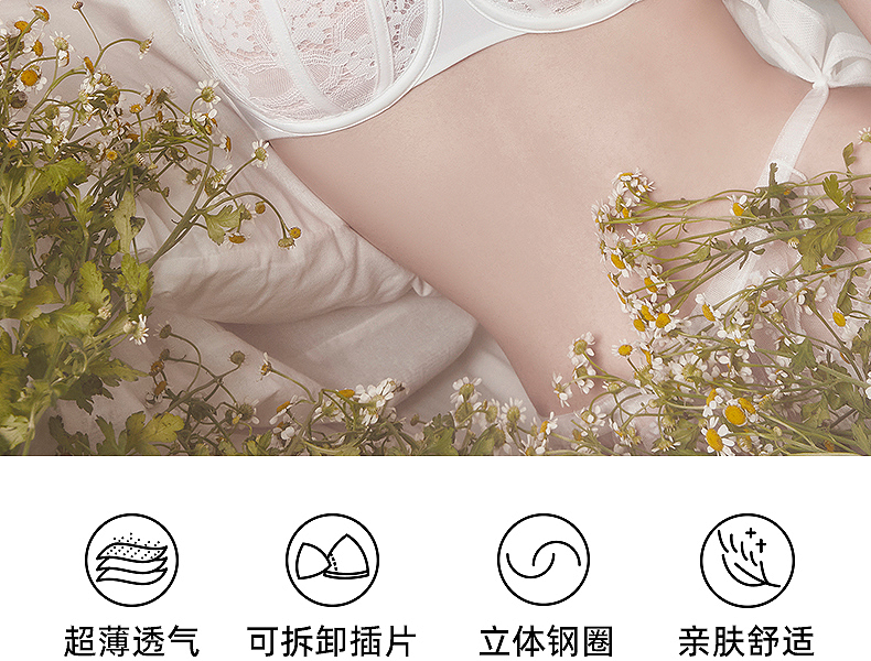 好奇蜜斯内衣女性感夏超薄防下垂法式纯欲蕾丝文胸罩套装新白 Case 凯斯文胸