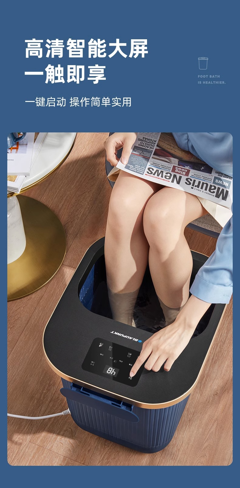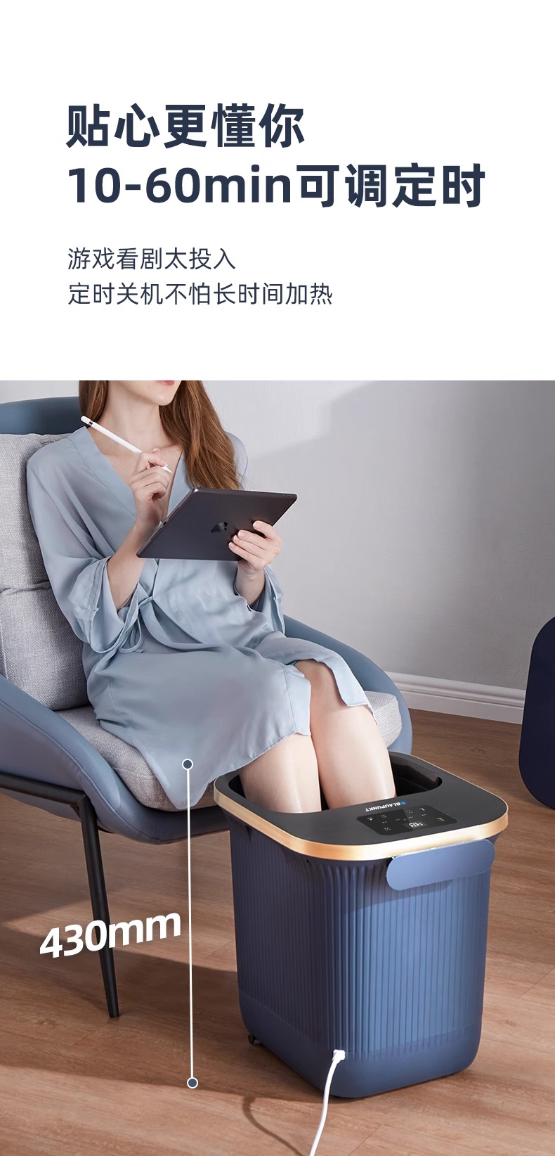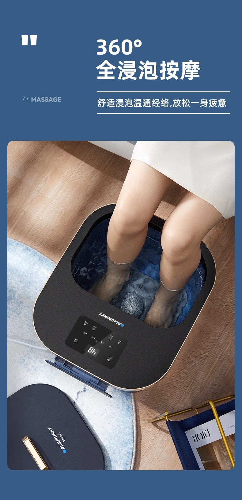 德国蓝宝足浴盆加热恒温泡脚桶洗脚盆电动按摩全自动足浴深桶过小腿