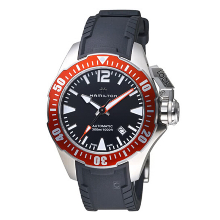 精钢表壳,红色铝质单向旋转表圈
