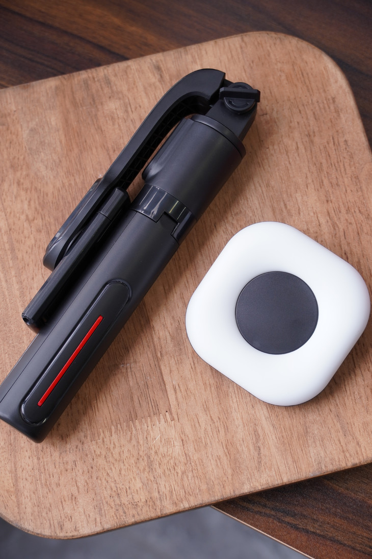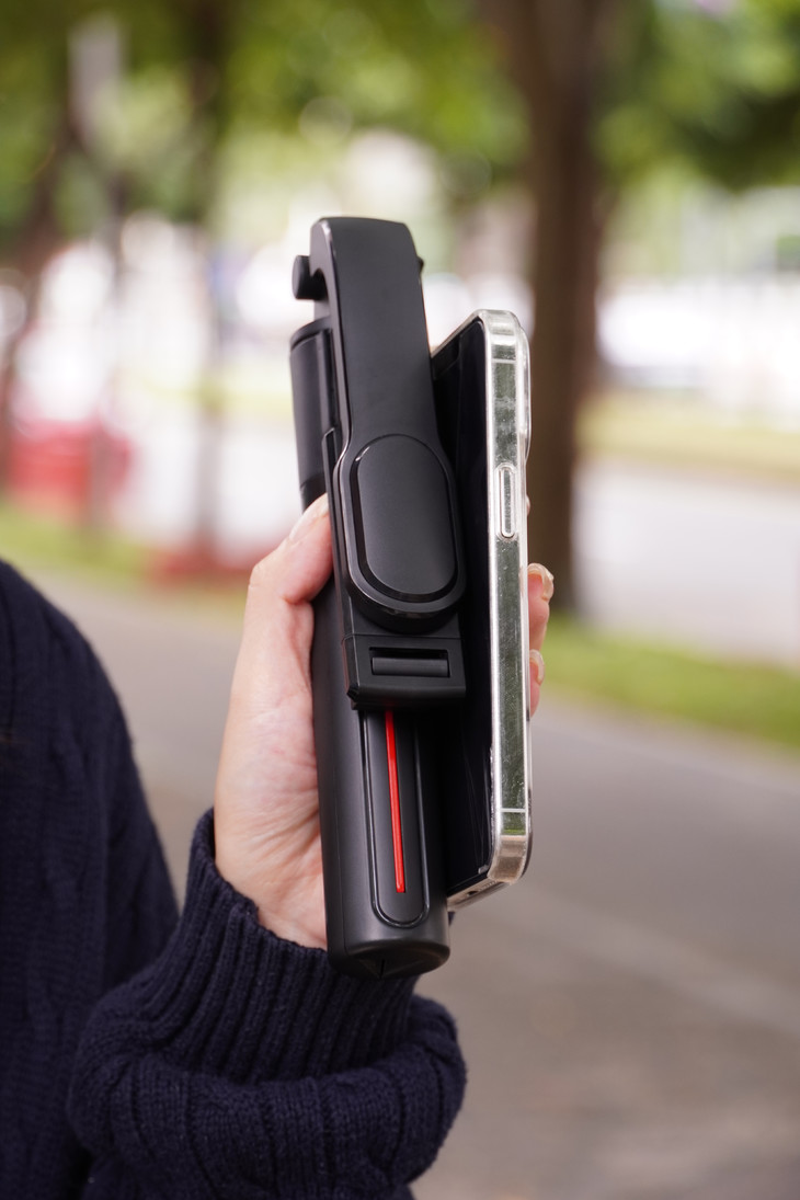 🔹内嵌式收纳设计无线遥控,解放双手放飞自我地拍! Pose自由,距离可以更大更远,蓝牙范围大致10m内无问题 再不需要额外备上“摄影师” 爱拍照的终极一步就是自己给自己拍大片