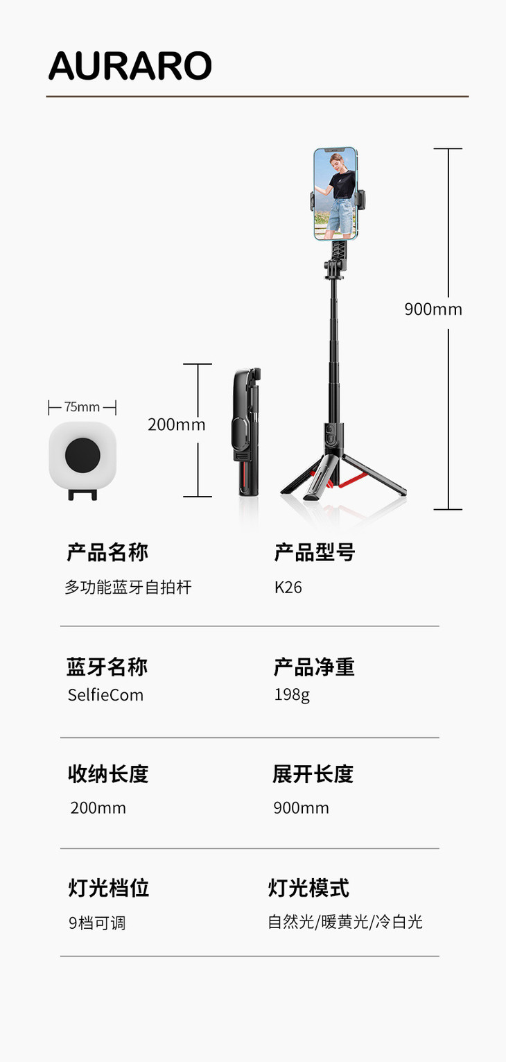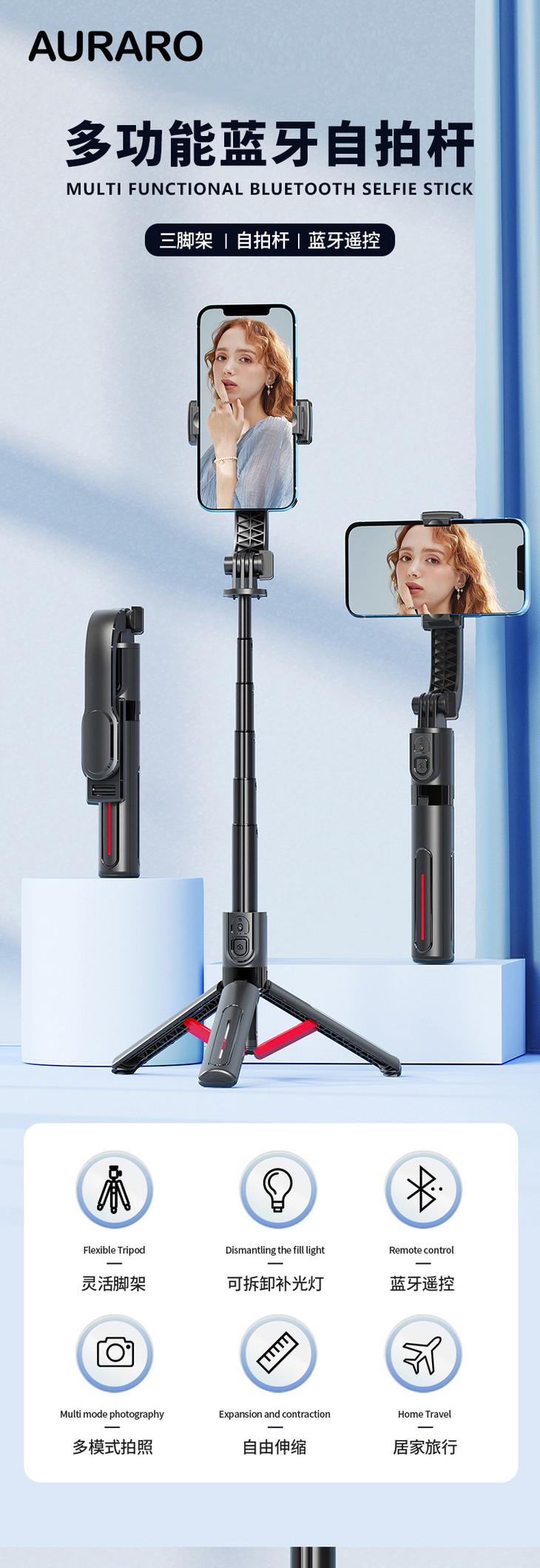 💥Auraro多功能蓝牙自拍杆 💰59.9值得入手,一分钱一分货的超好质感! 再加0.01可加拍随身补光小方灯一块↓↓↓