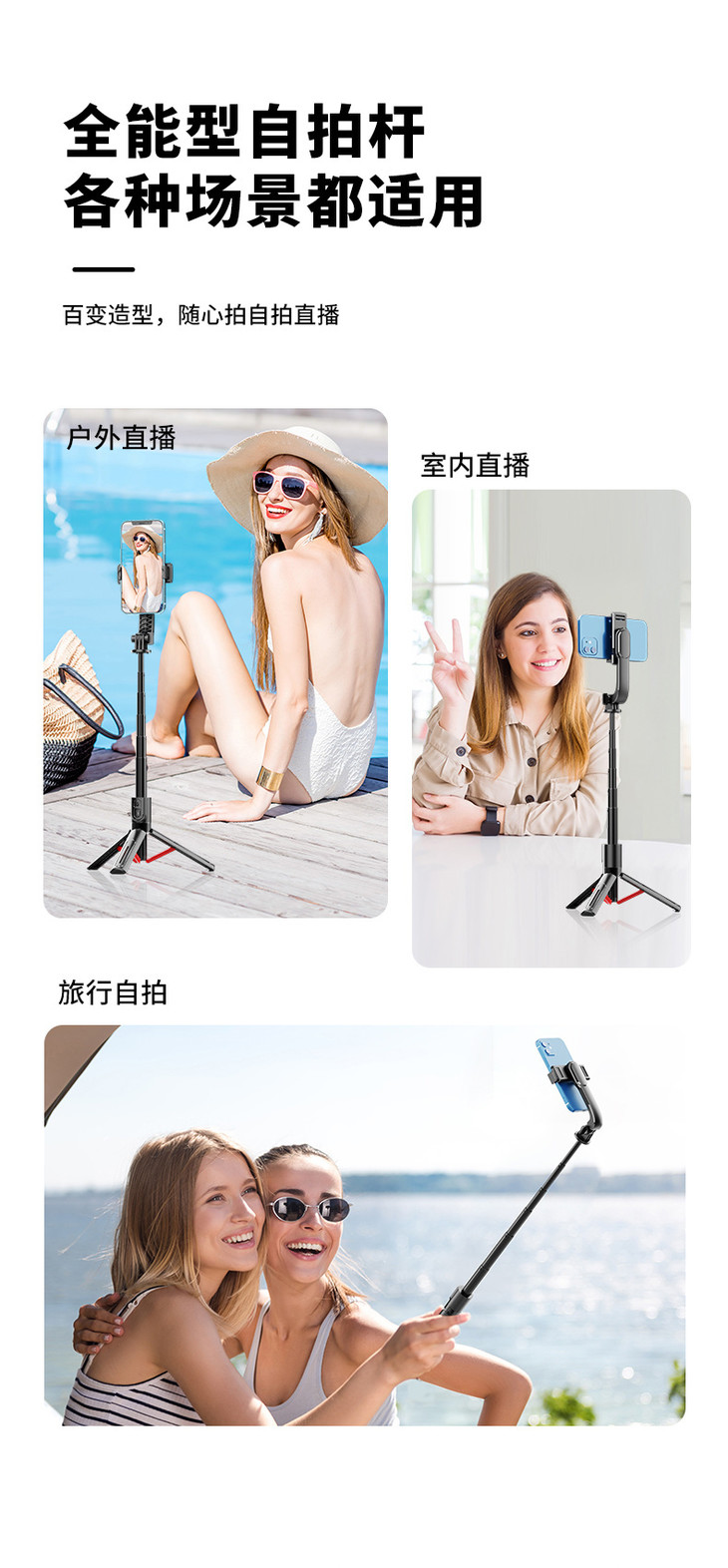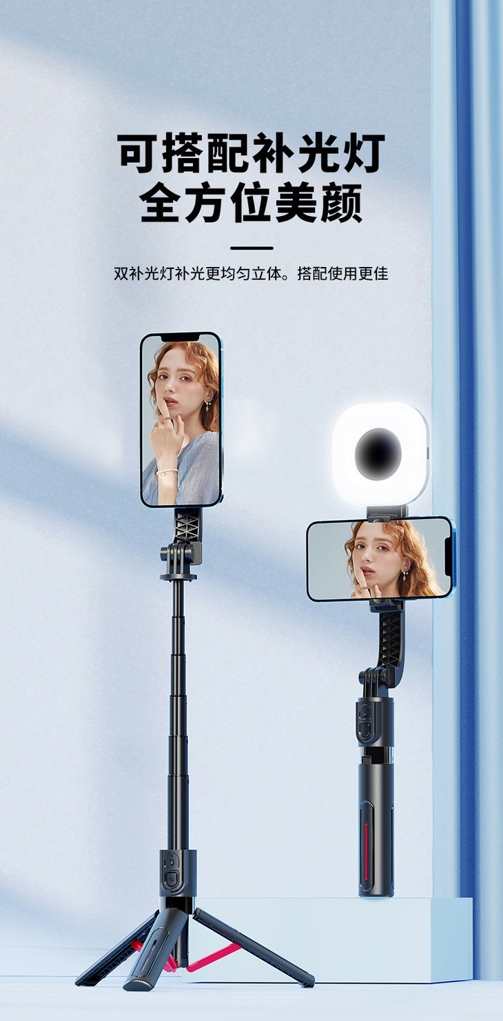 🔹最长可至90cm的伸缩臂长,取景广阔拍出超绝广角小脸长腿 📷朋友合照、景点大全景、演出舞台直拍、现场直播 一杆同时具备三角落地支架、超长扩展臂、蓝牙无线近程操控,以及近景补光灯🔺 让手机变成更牛更专业的拍照设备 补光灯可持续充电使用、蓝牙按键可拆卸替换电池