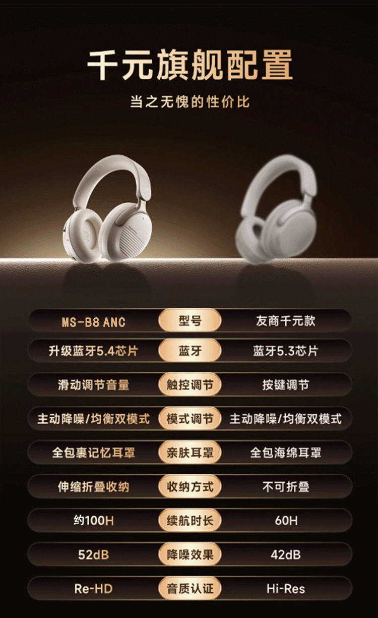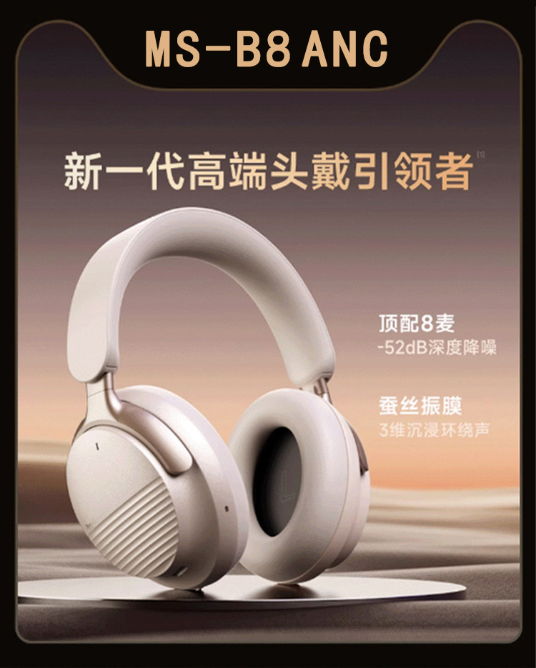【好音质不用上千 】塞尔兰斯无线降噪立体声耳机MS-B8ANC 蚕丝喇叭 滑动调节音量 降噪设计 伸缩折叠收纳 续航约100h