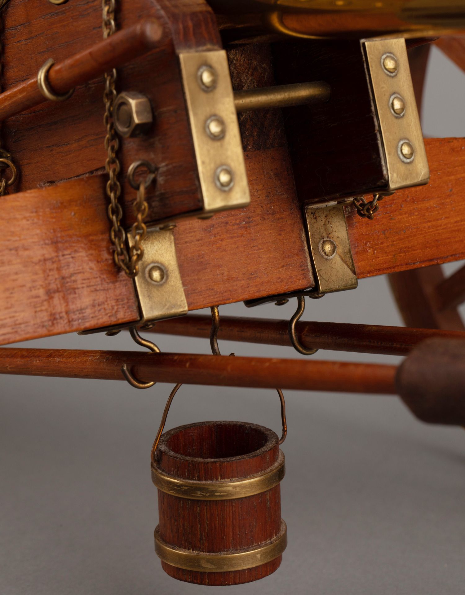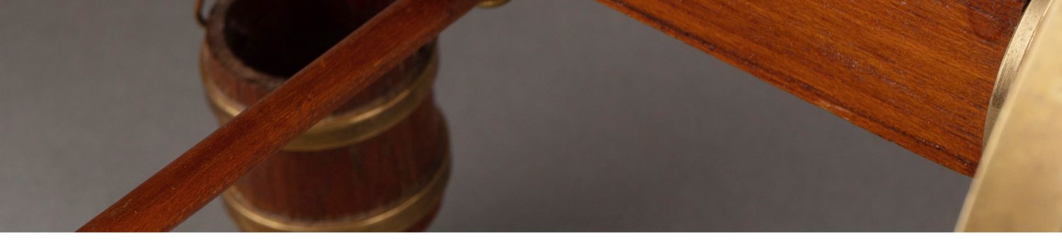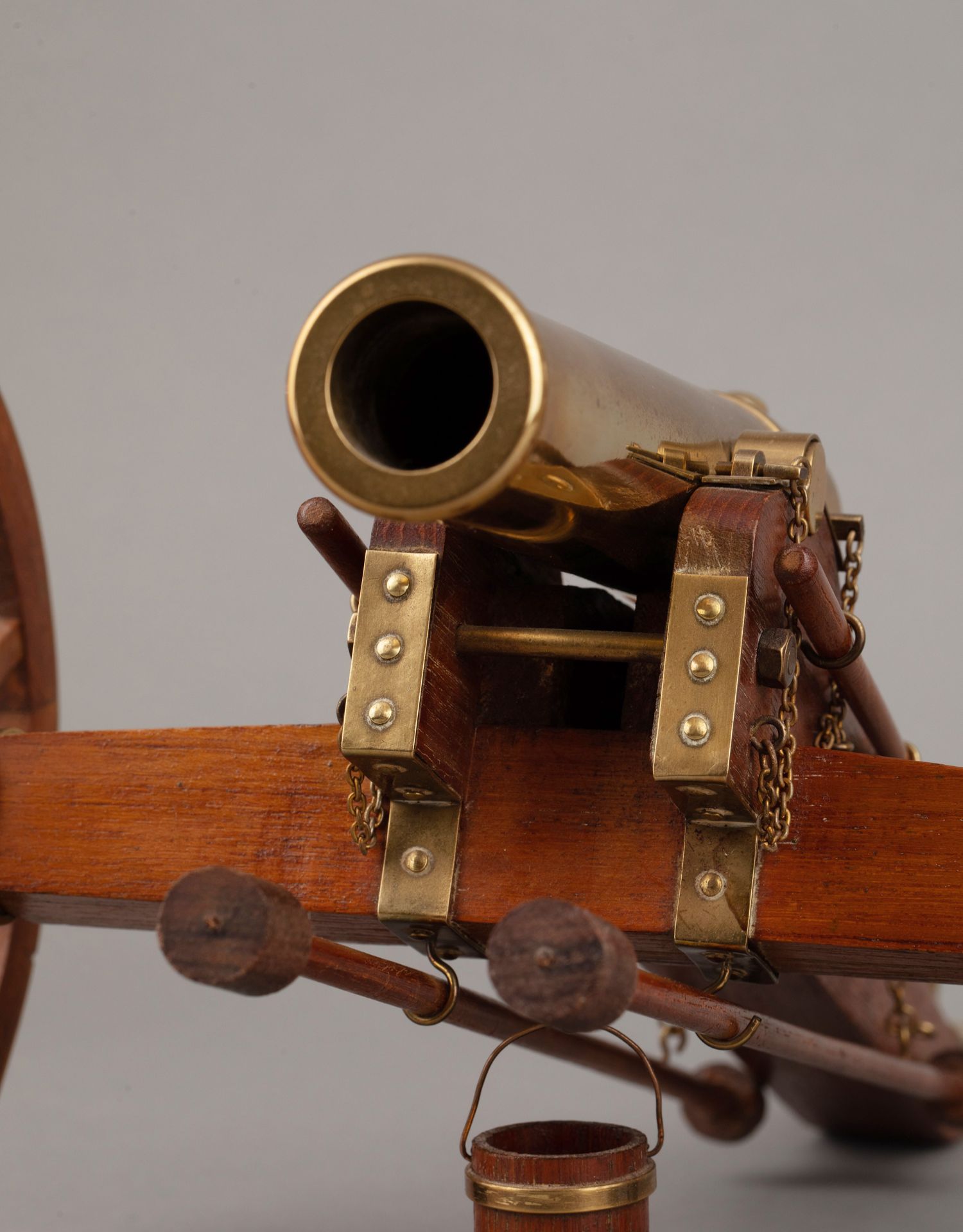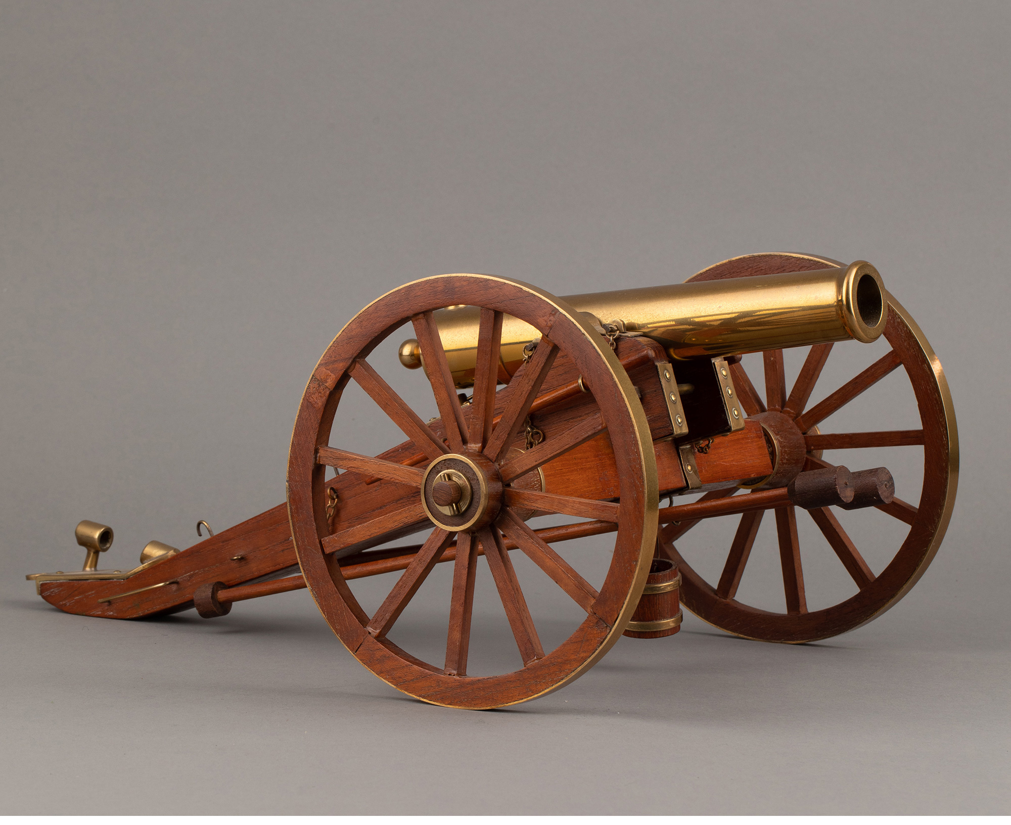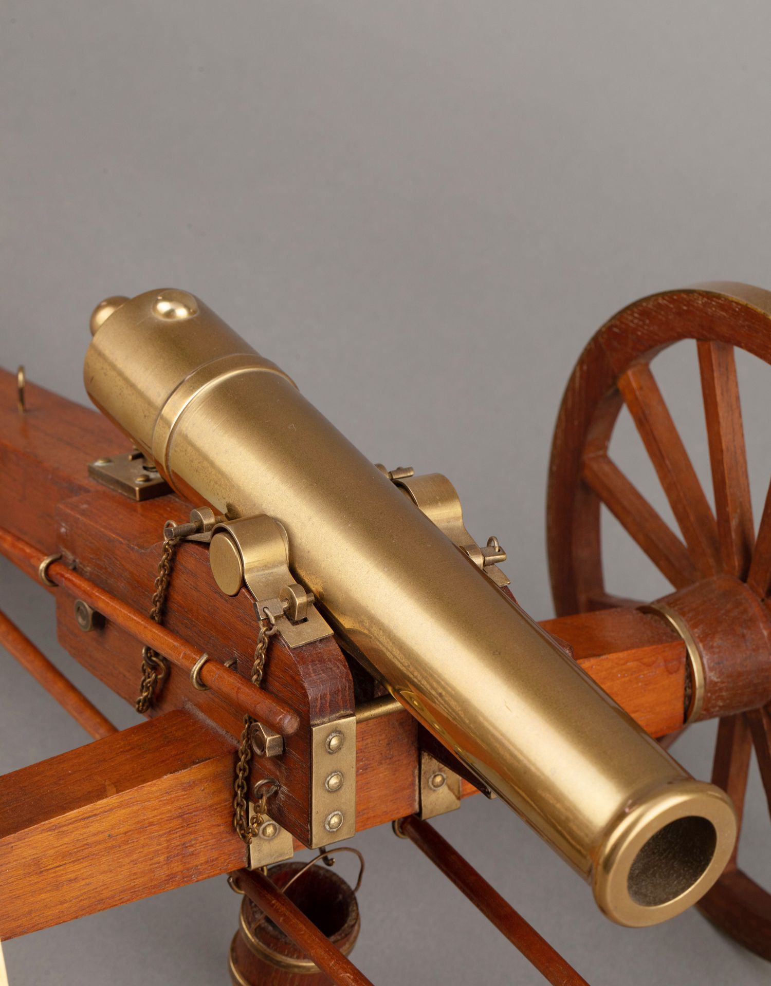独角鹿西洋古董1930年代英国柚木底座修饰黄铜炮身小型野战炮摆件