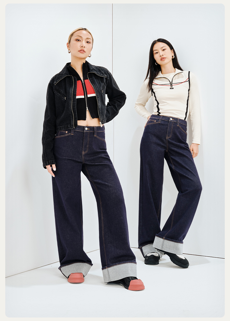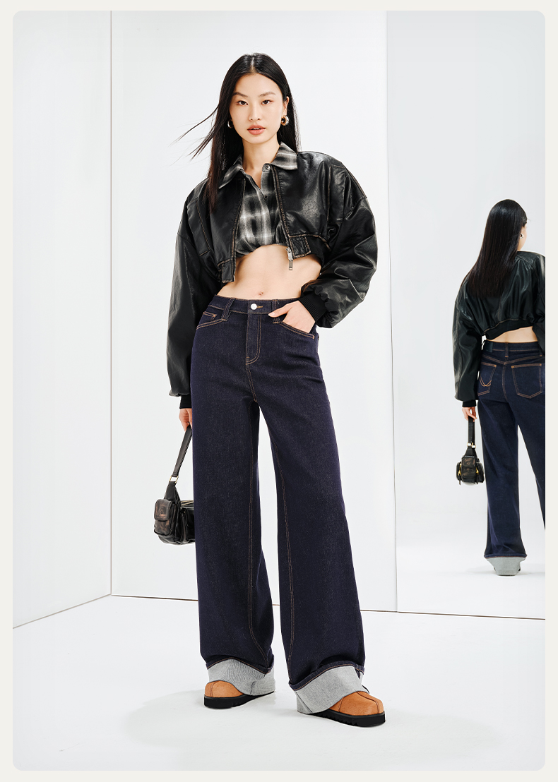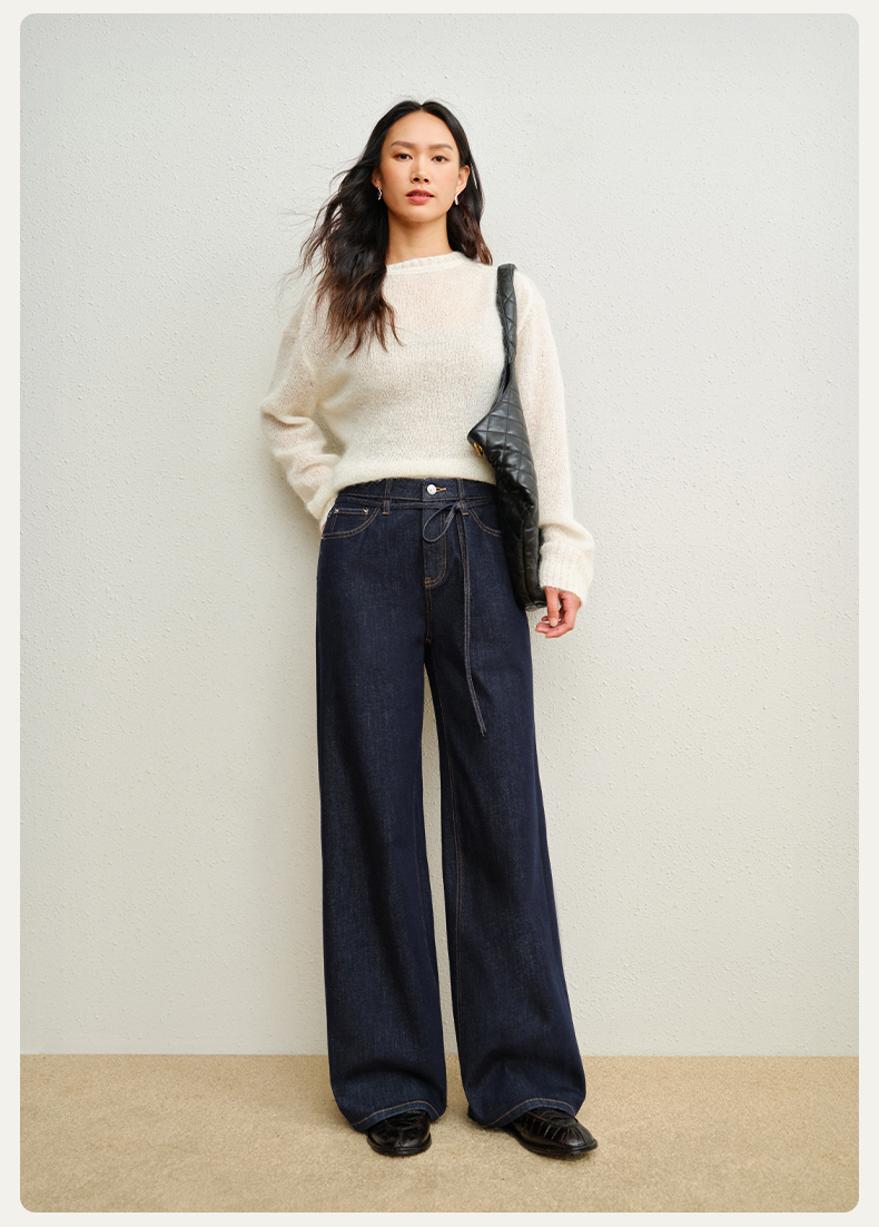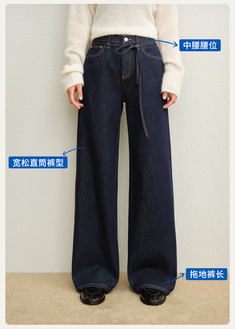 【宽松原色合集】simplepieces秋冬款SPS牛仔女梨形四面弹直筒裤