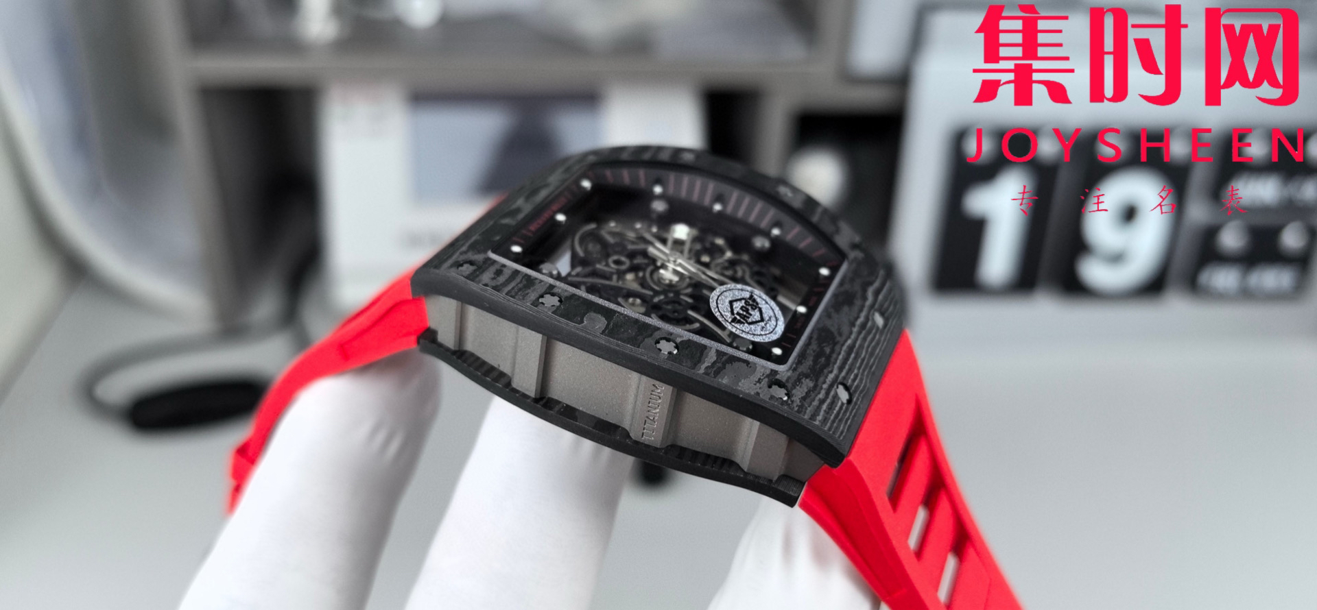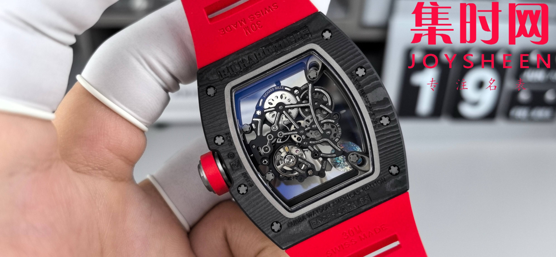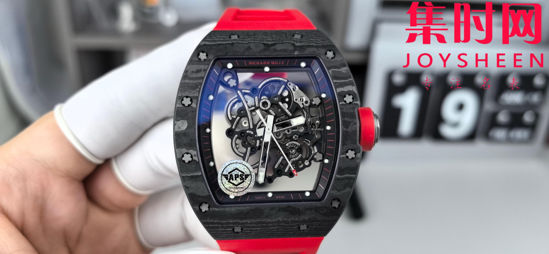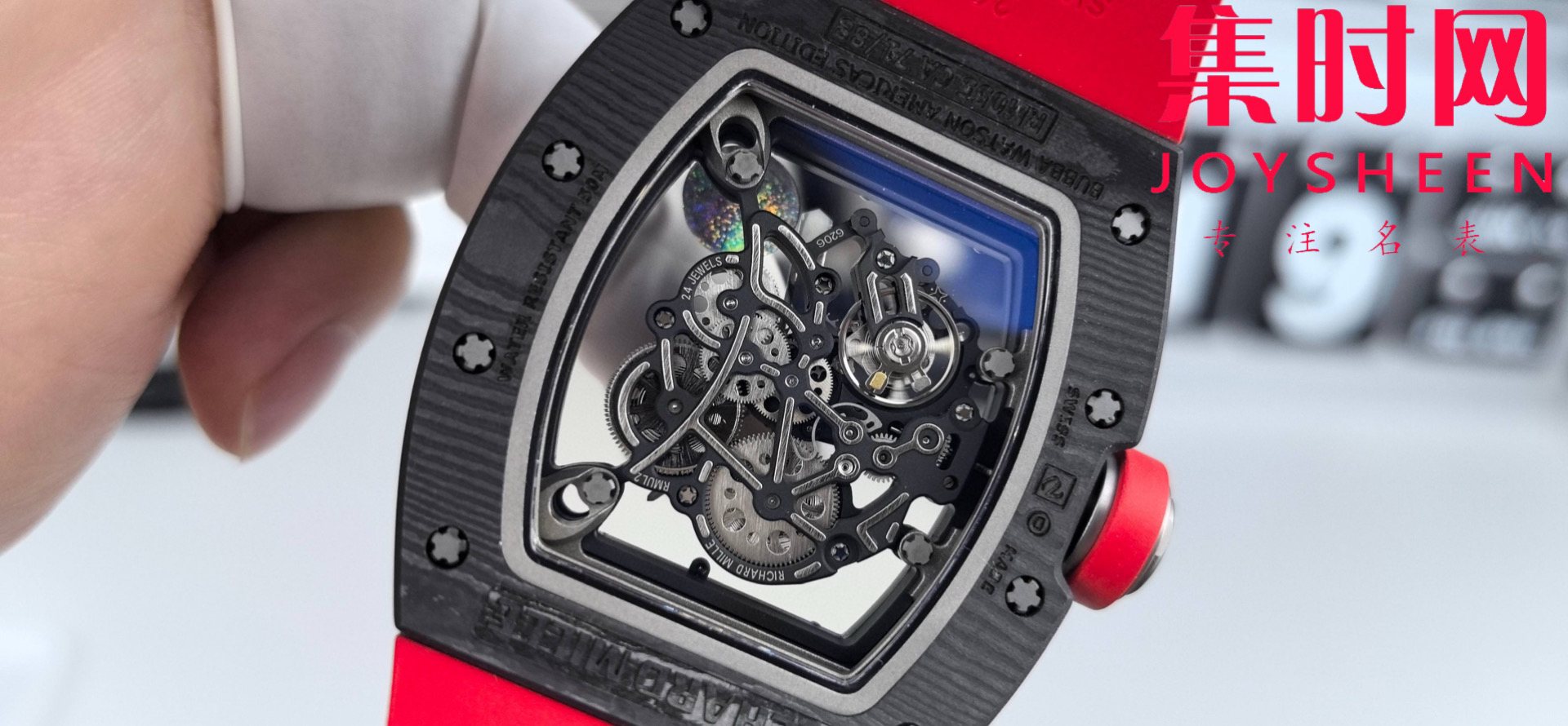 理查德米勒 APS新款RM055 RM55 黑红碳 碳纤维壳 男士腕表 丹东RMUL2一体机 里查德以其轻便时尚为主题,我们所有的金属件都采用钛金属制作同步原版(看见的看不见的金属配件全是钛),作为亿万富豪的入场券,我们采用定制丹东一体机芯RMUL2,表壳,表带以及所有配件
