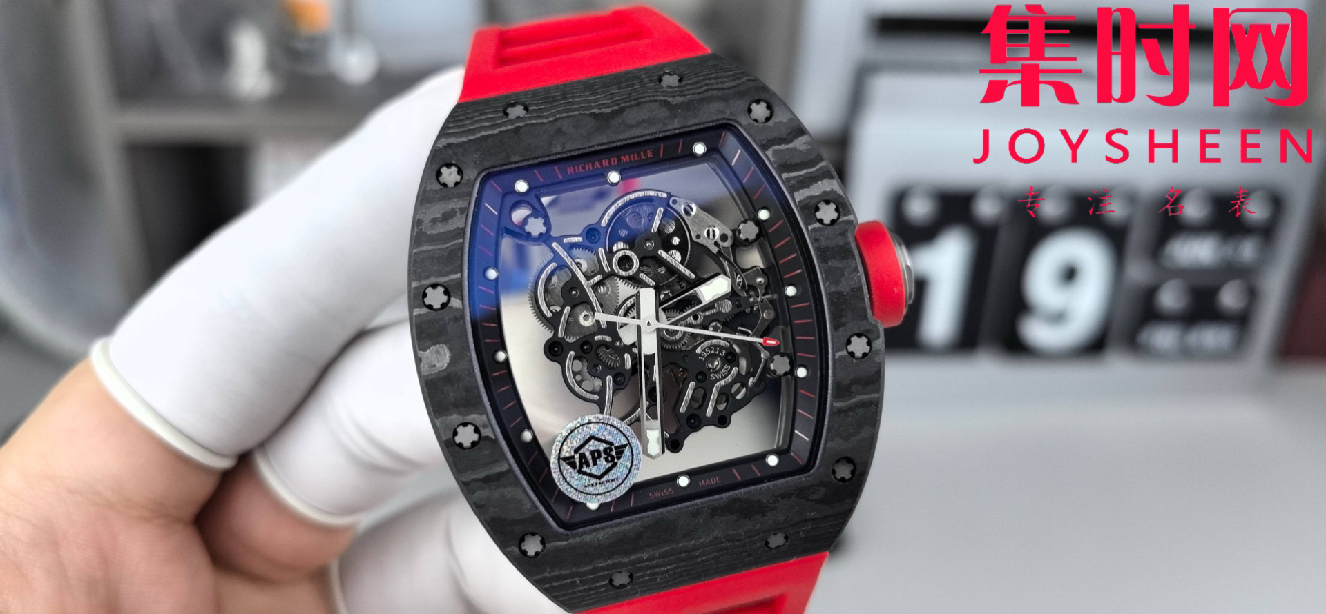 理查德米勒 APS新款RM055 RM55 黑红碳 碳纤维壳 男士腕表 丹东RMUL2一体机 里查德以其轻便时尚为主题,我们所有的金属件都采用钛金属制作同步原版
