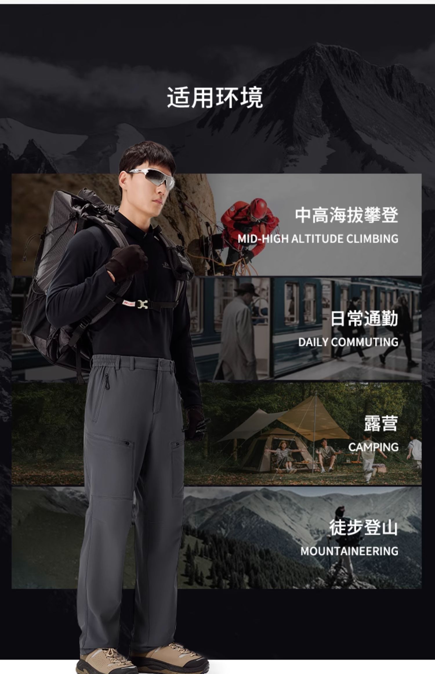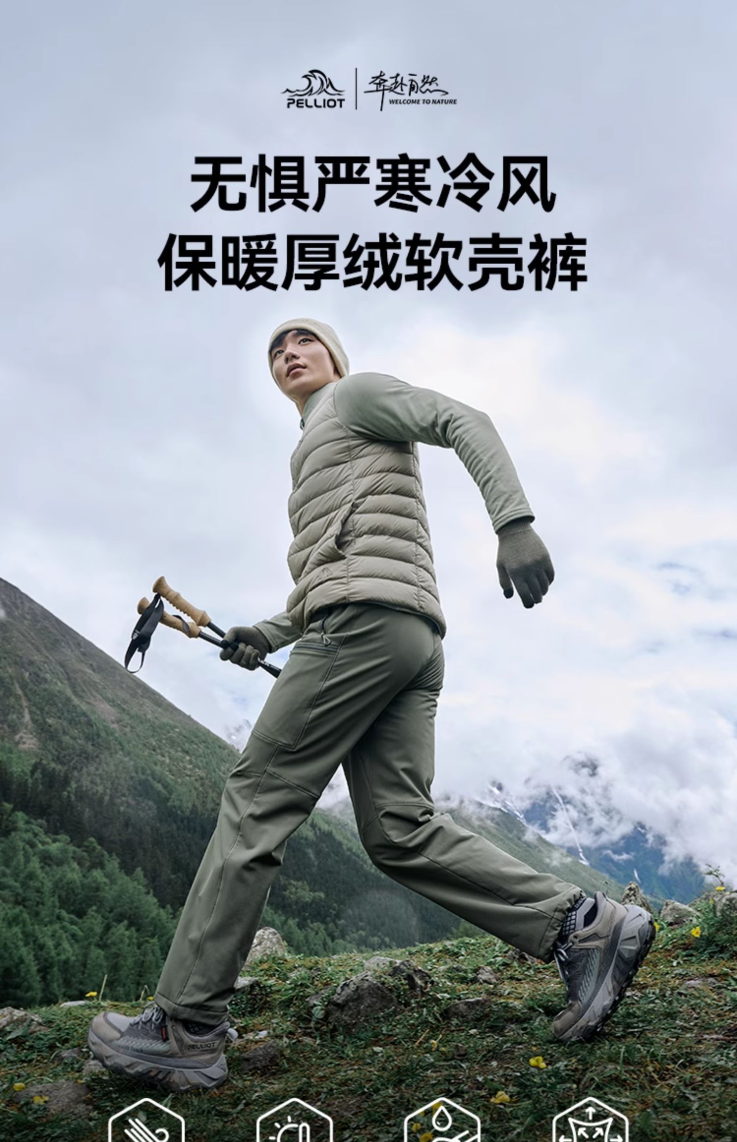 伯希和户外软壳裤男士防风防泼水徒步登山冲锋裤弹力舒适运动长裤