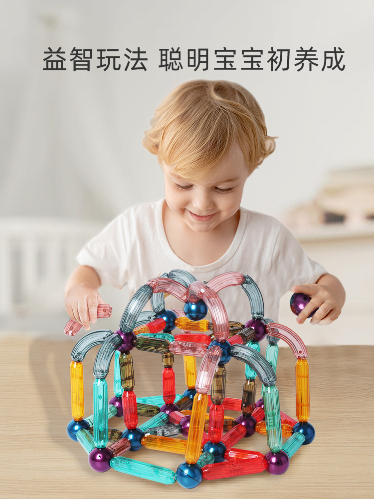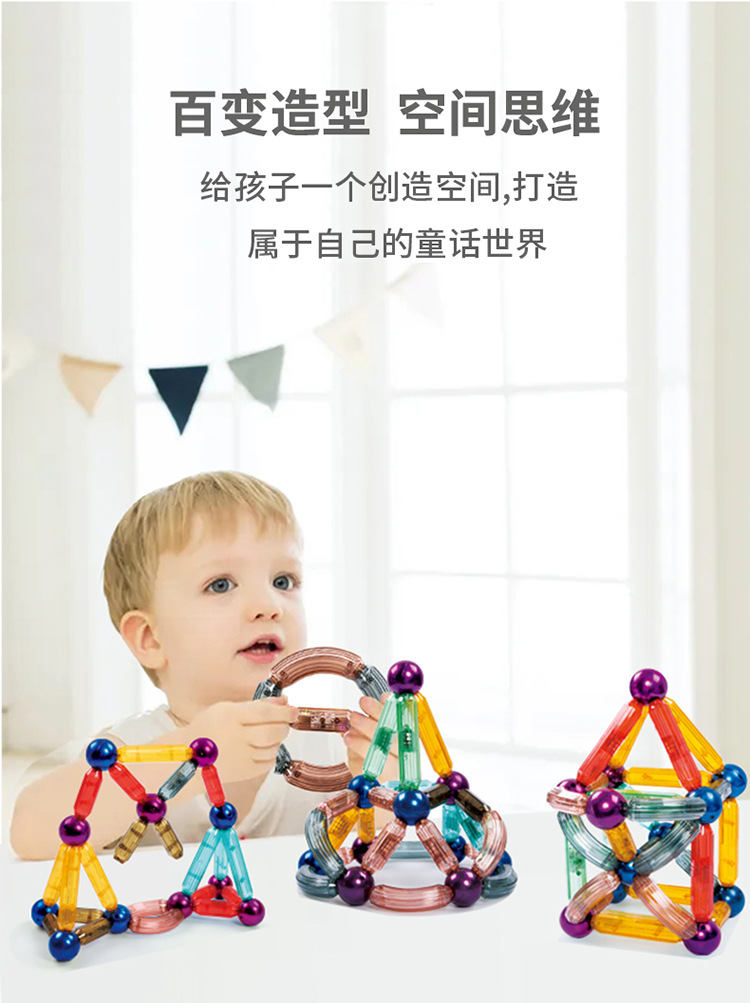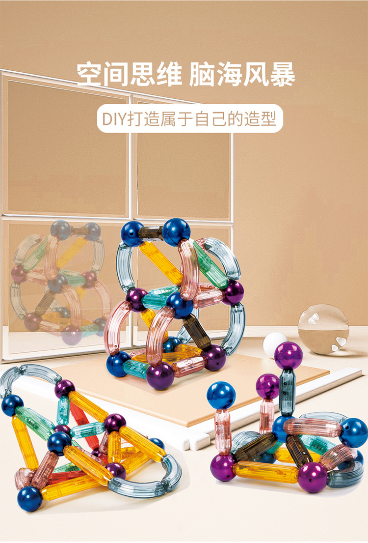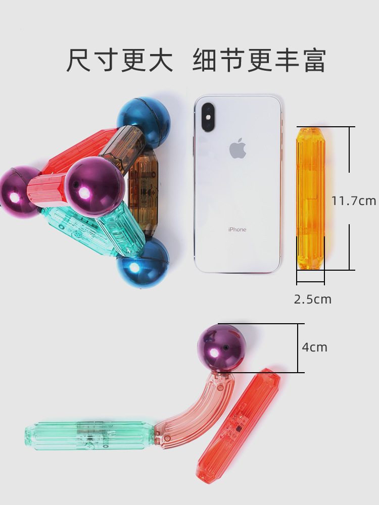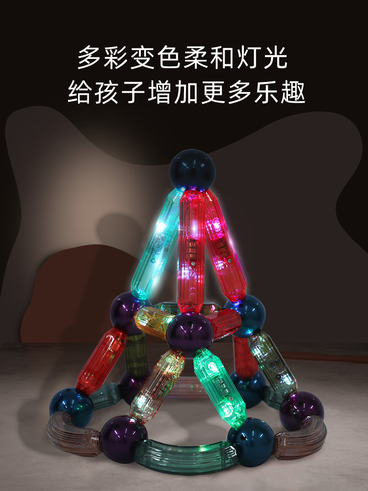 【加大透明灯光百变磁力棒】Onshine透明灯光3D磁力棒 儿童益智积木拼装 尺寸更大 经久耐玩不坍塌