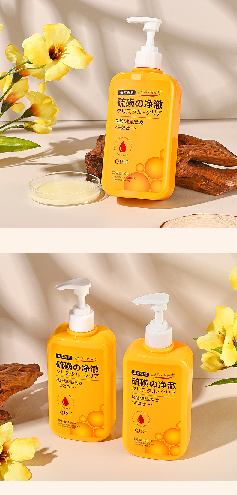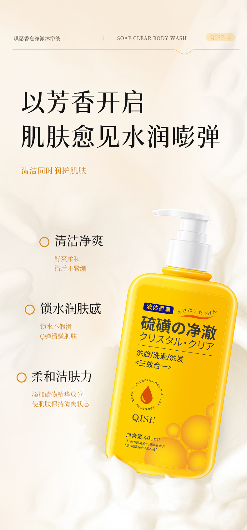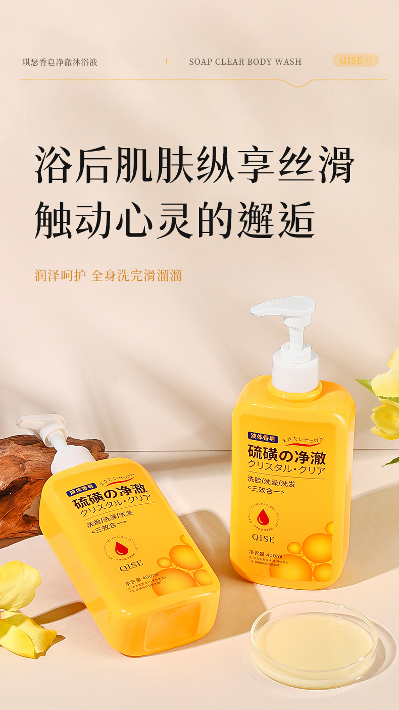 「三合一!柔和净肤」QISE琪瑟硫磺香皂净澈沐浴液 洁控油保湿祛背痘洗脸洗头洗澡清洁