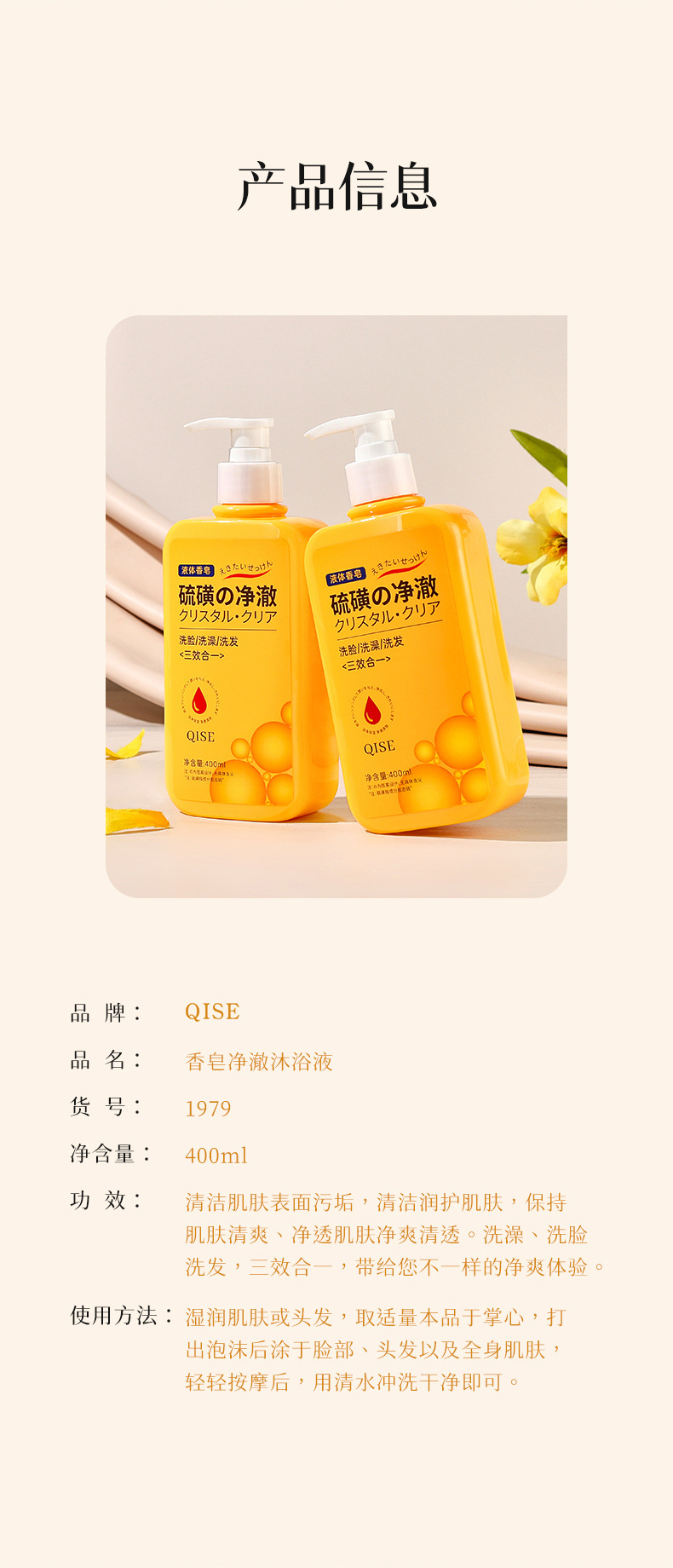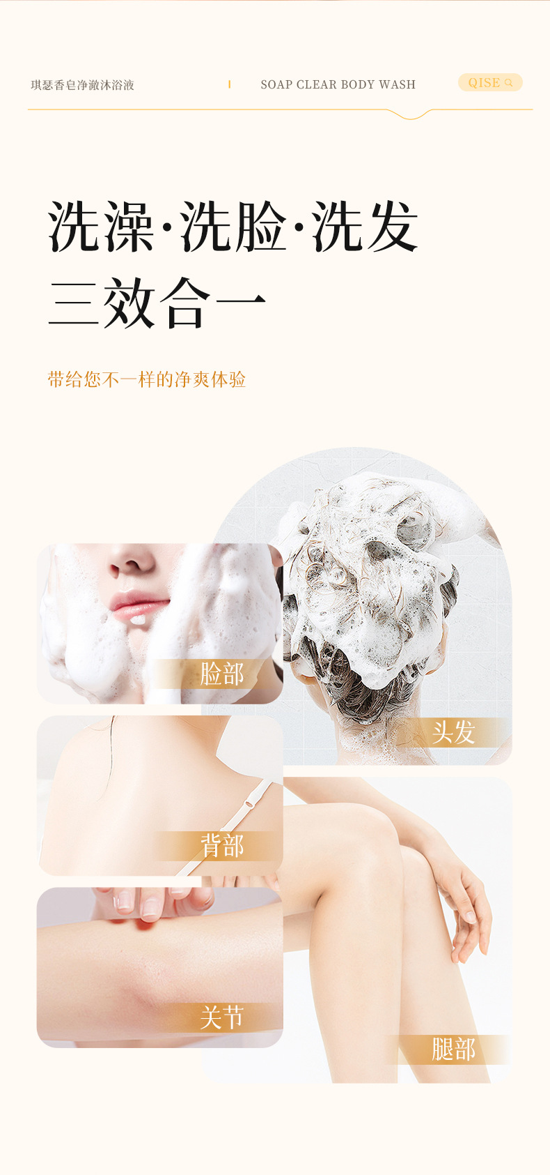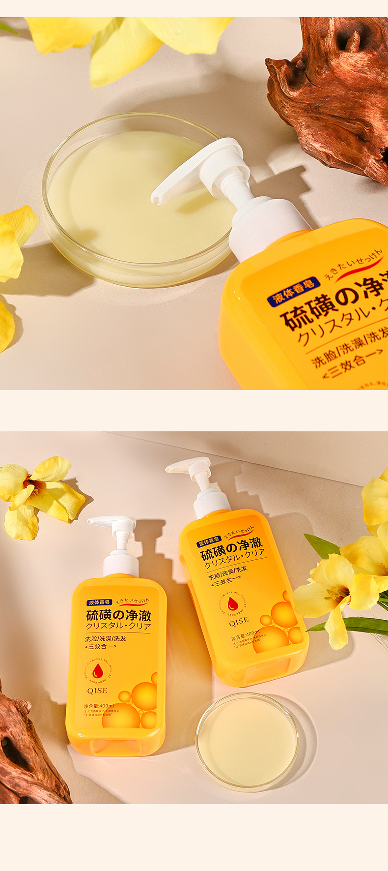 「三合一!柔和净肤」QISE琪瑟硫磺香皂净澈沐浴液 洁控油保湿祛背痘洗脸洗头洗澡清洁