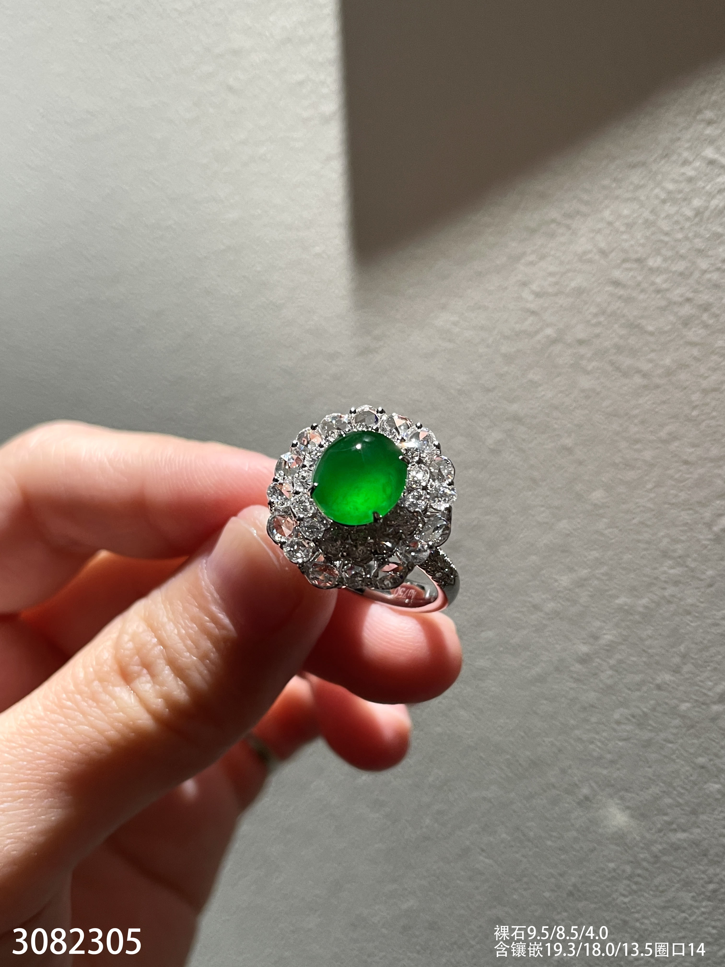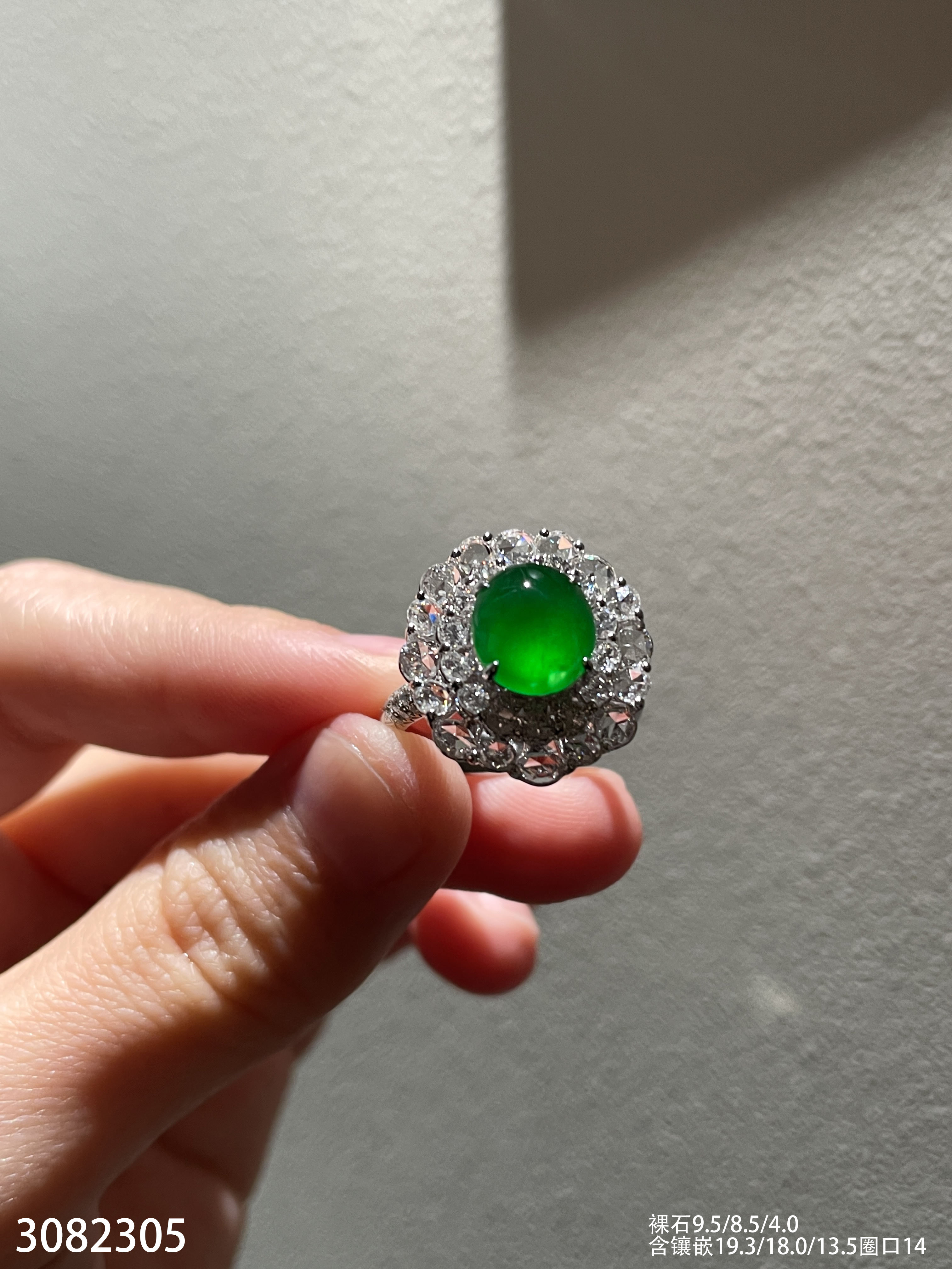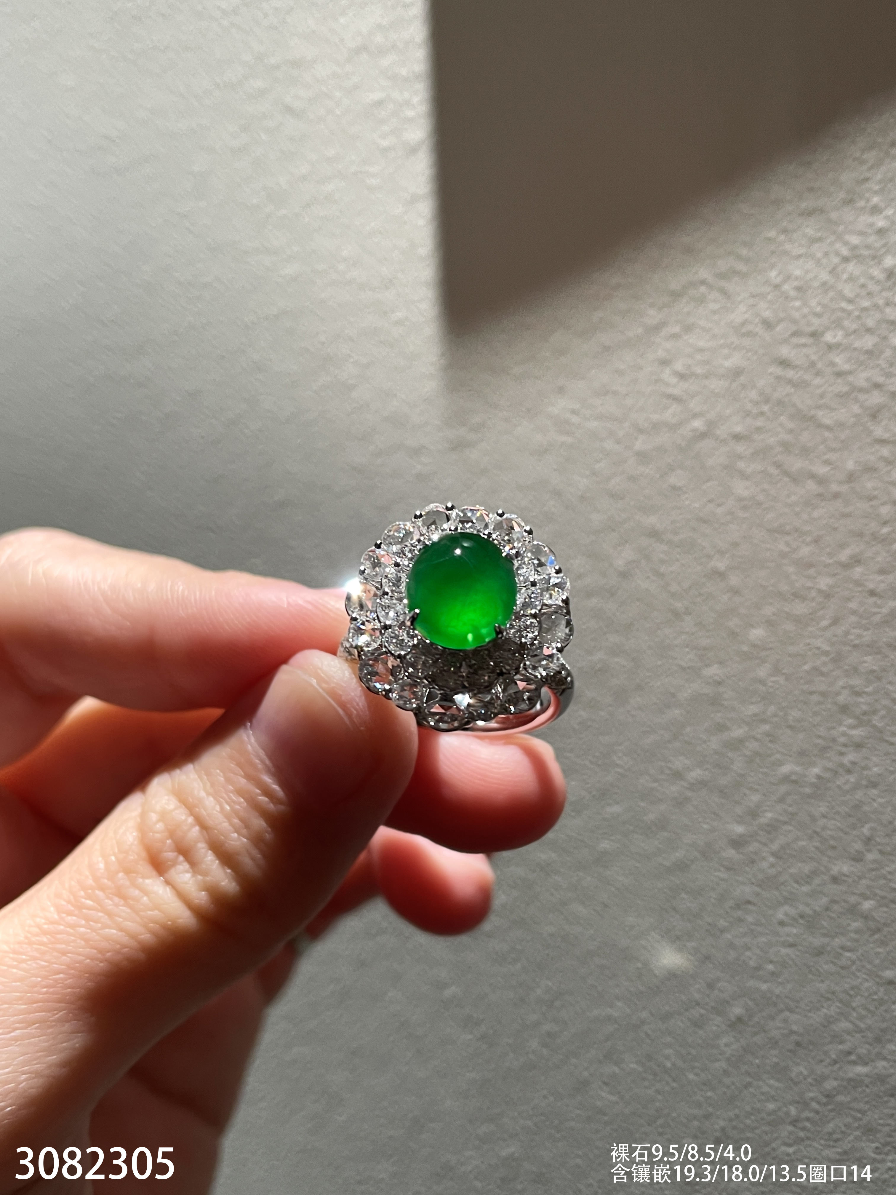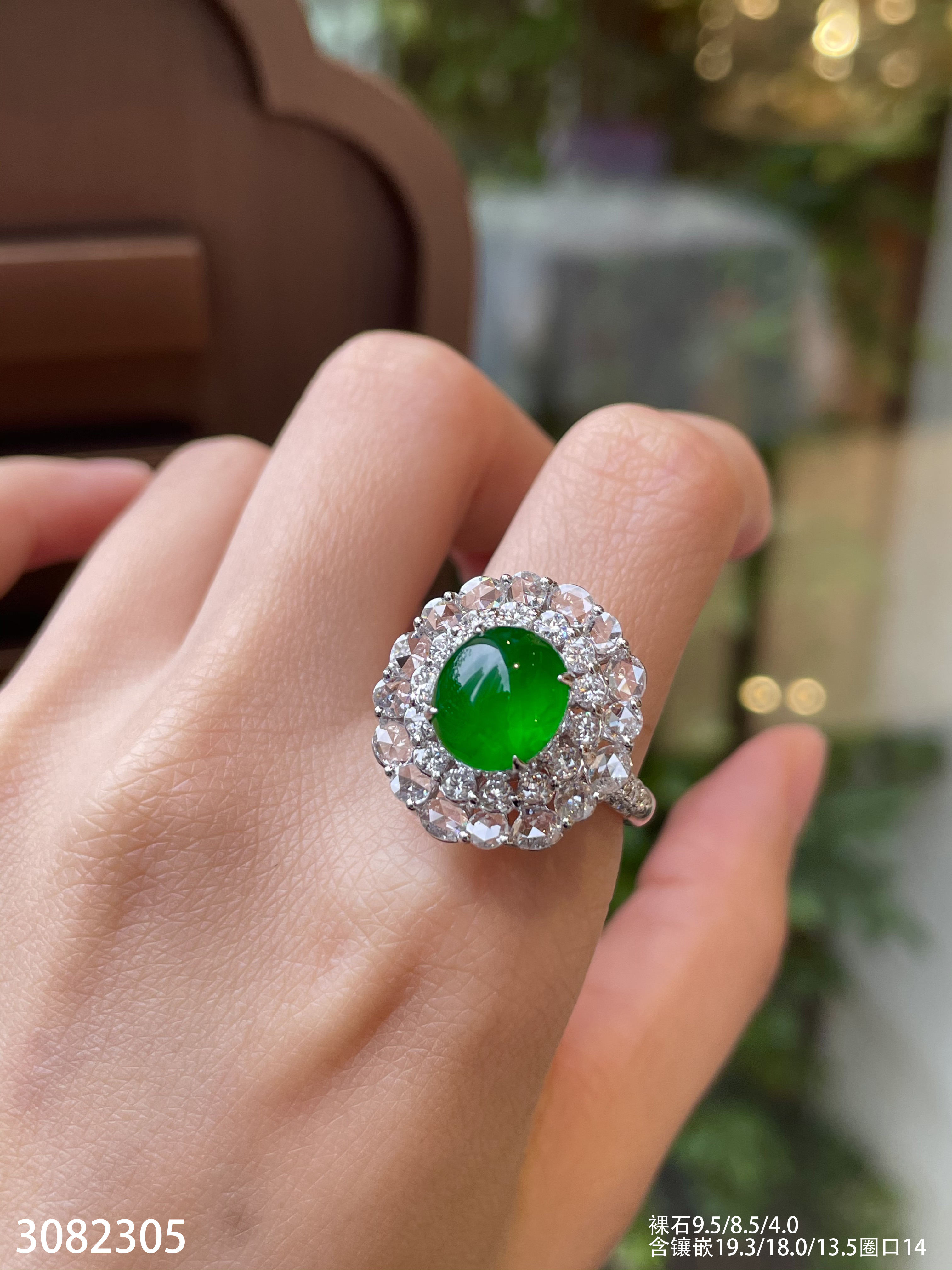 老坑高冰帝王绿蛋面戒指【3082305】具体价格微信咨询