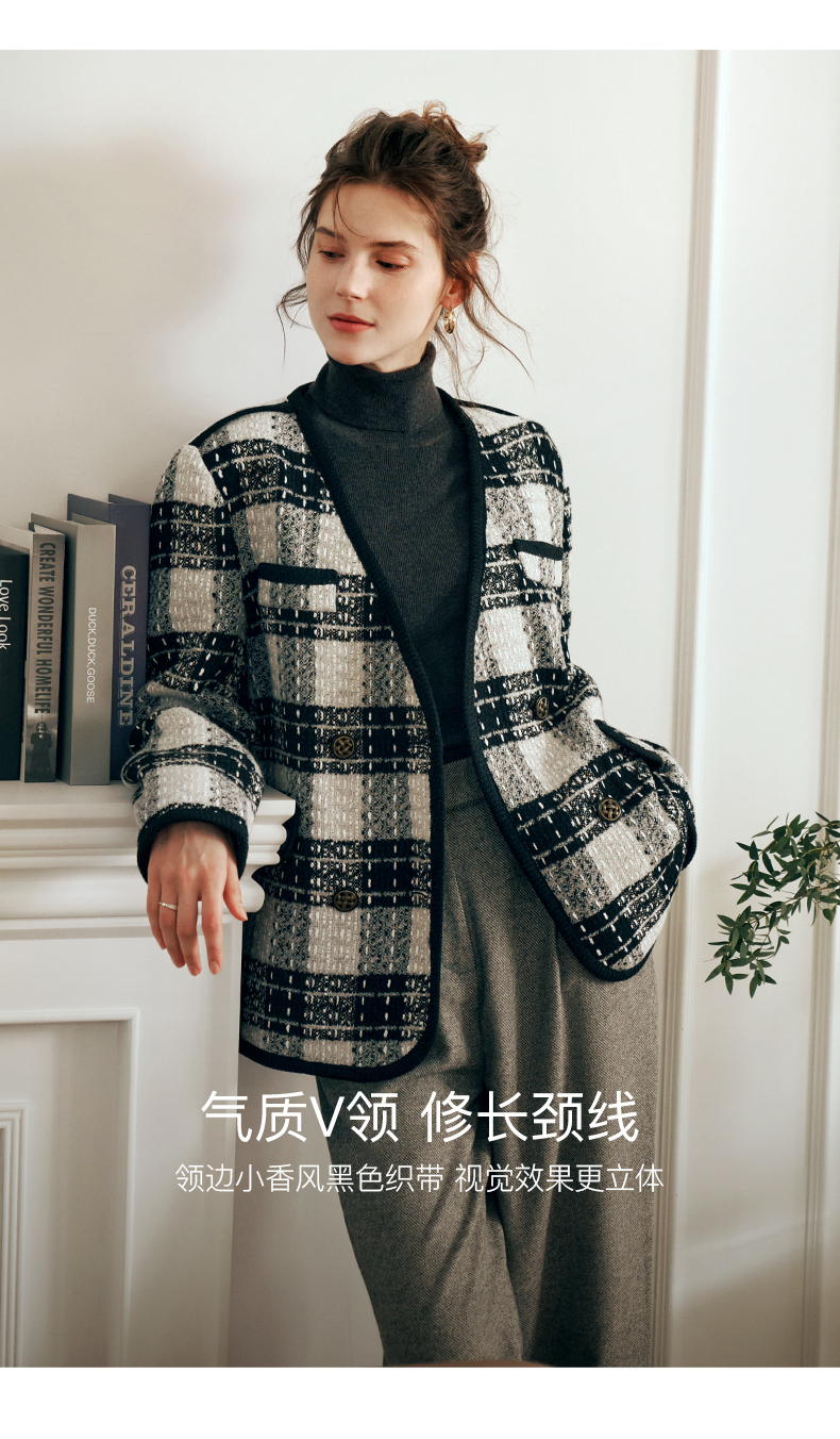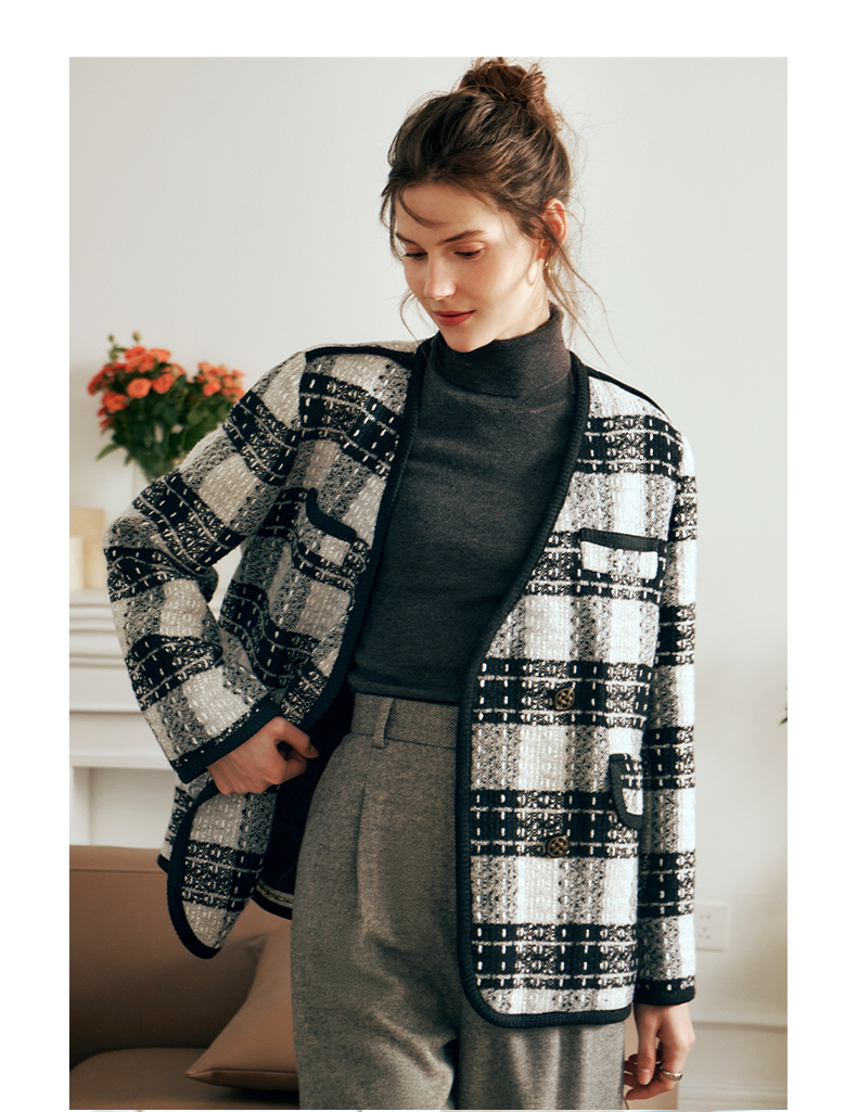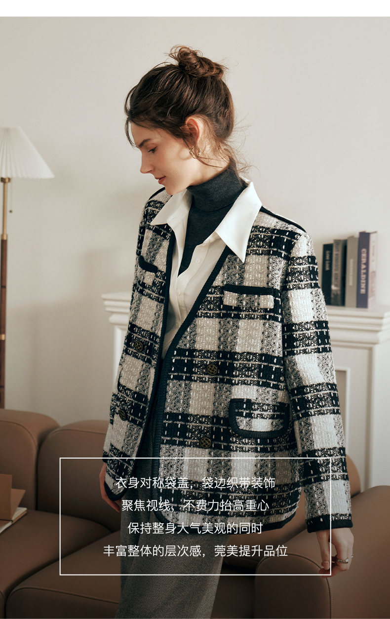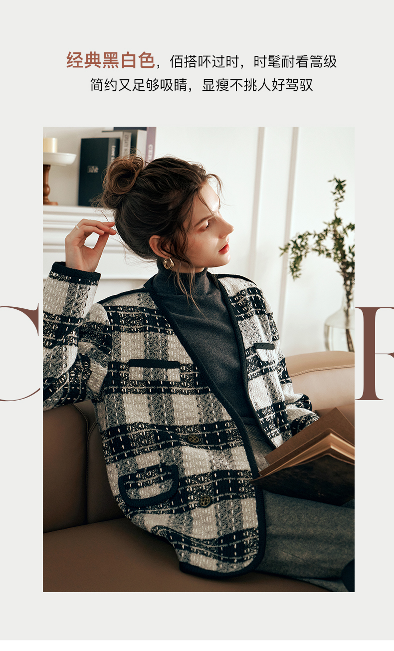 OLrain欧芮儿黑白色小香风短外套女春2025新款气质慵懒毛呢外套